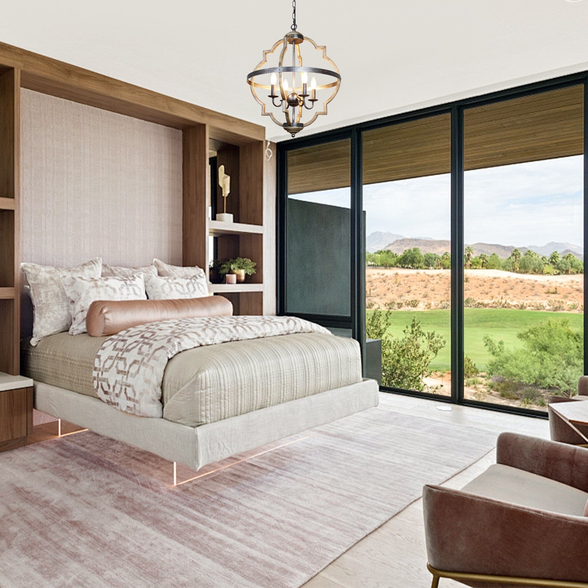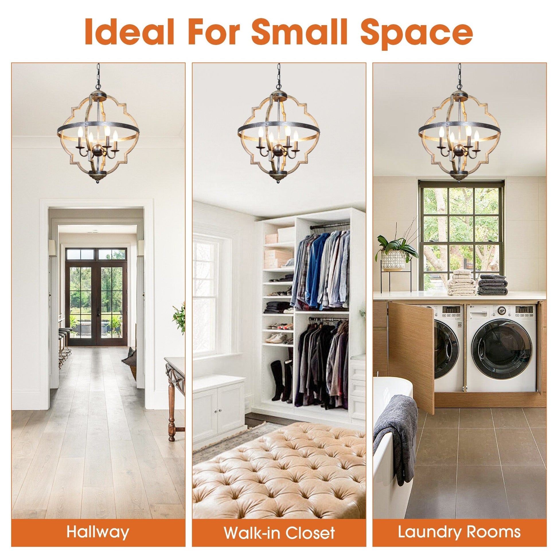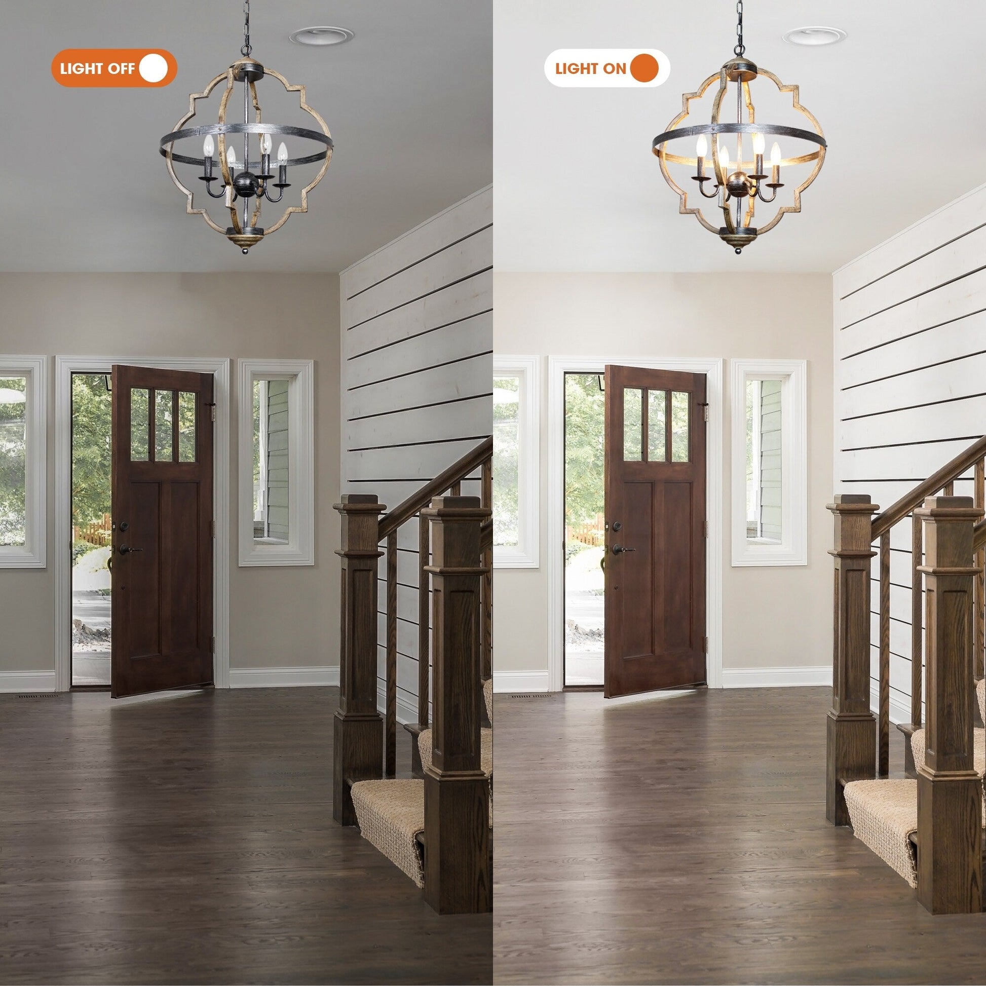 Make a statement in your home with our Farmhouse Distressed Metal 4-light Candle Chandelier Light Fixture. With its modern farmhouse style and distressed metal finish, this chandelier showcases a quatrefoil-inspired open frame with a central circular accent that adds character to any interior design. Inside, four candelabra-style lights direct light upward and create an ambiance that can be adjusted with the use of a dimmer switch. Perfect for living rooms, dining rooms, entryways, and more.