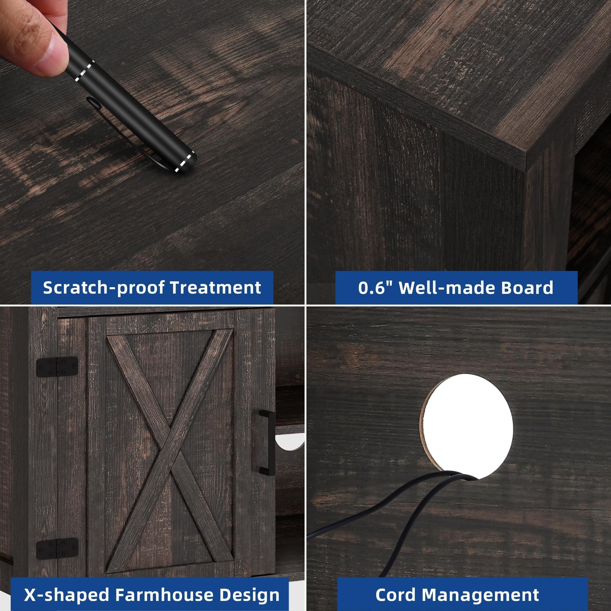 Farmhouse TV Stand for up to 65 TV with Doors and Open Shelves Media Console Power Outlet