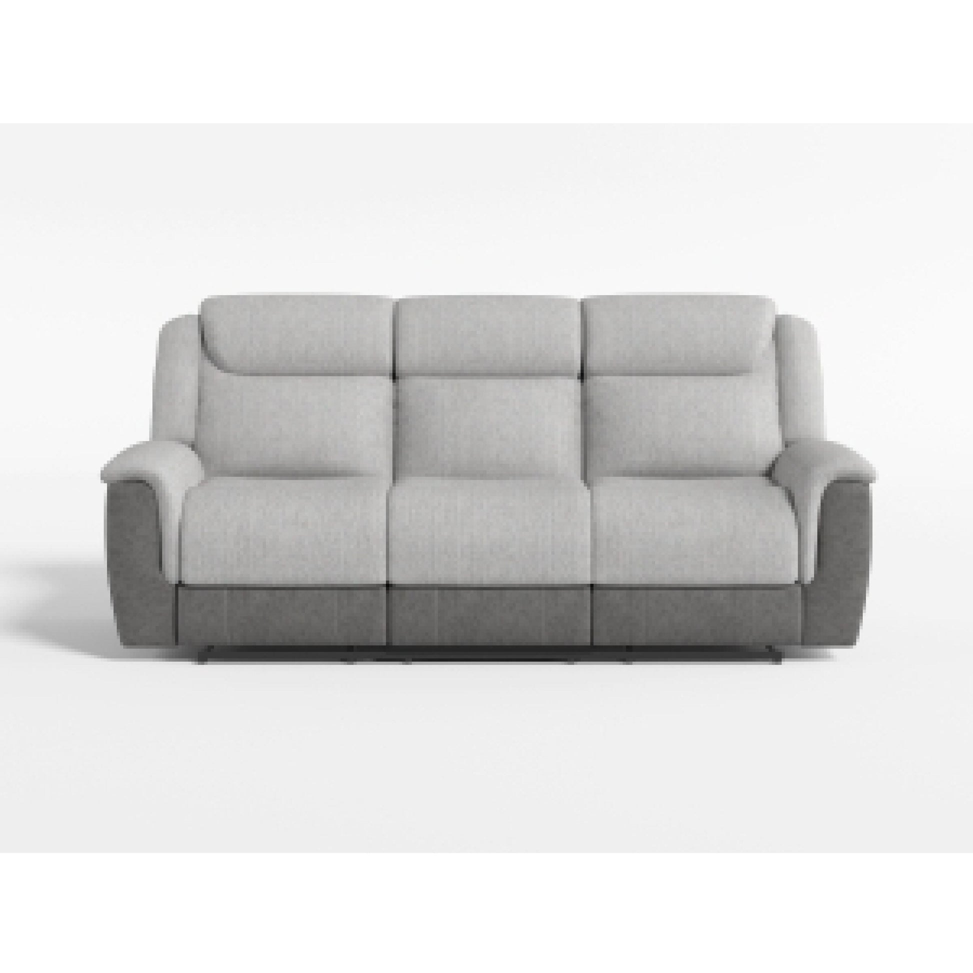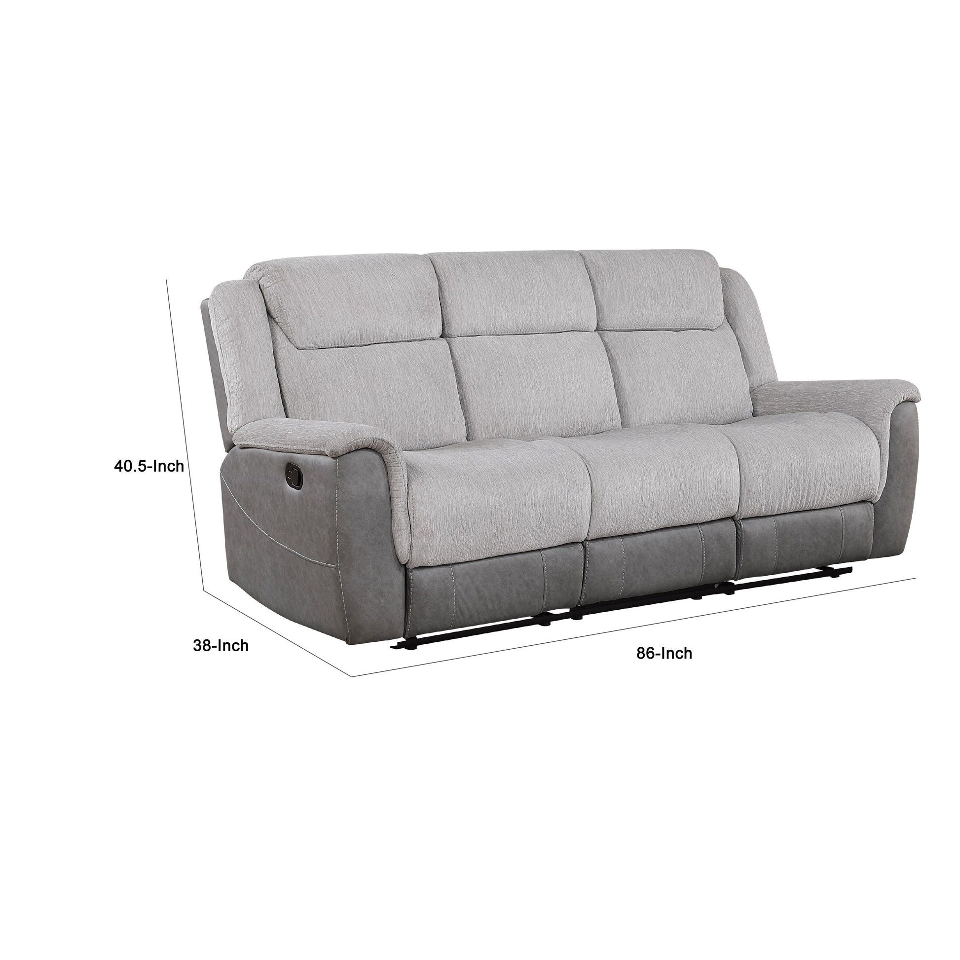 Feo Manual Reclining Sofa w Console, White Gray Microfiber 86 Inch