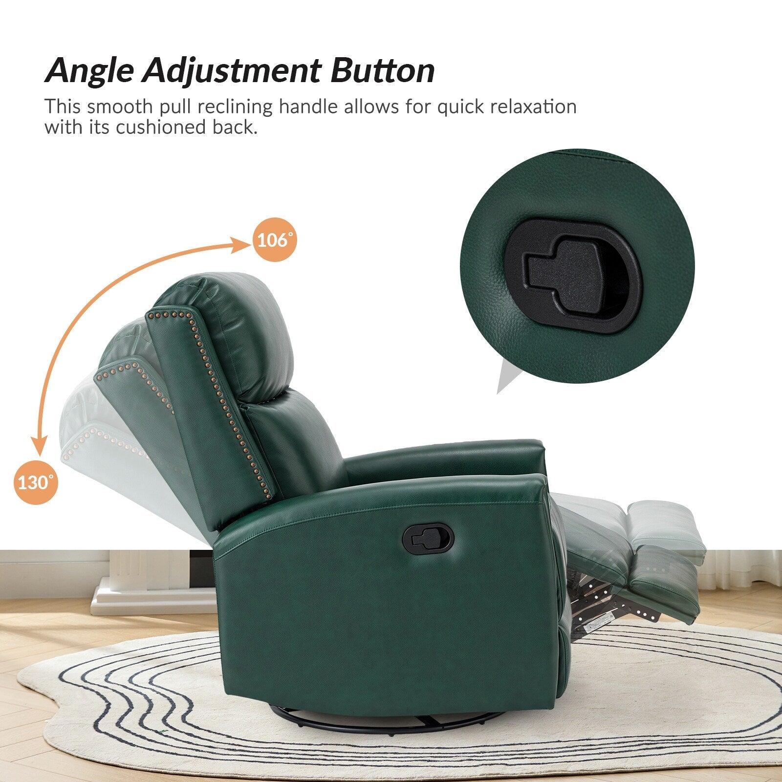 Fiacro 30.31Wide Modern Genuine Leather Wingback Swivel Rocker Recliner with Nailhead Trims, Set of 2