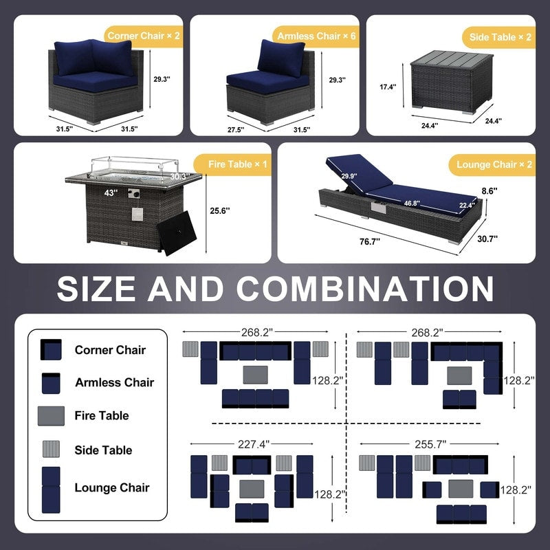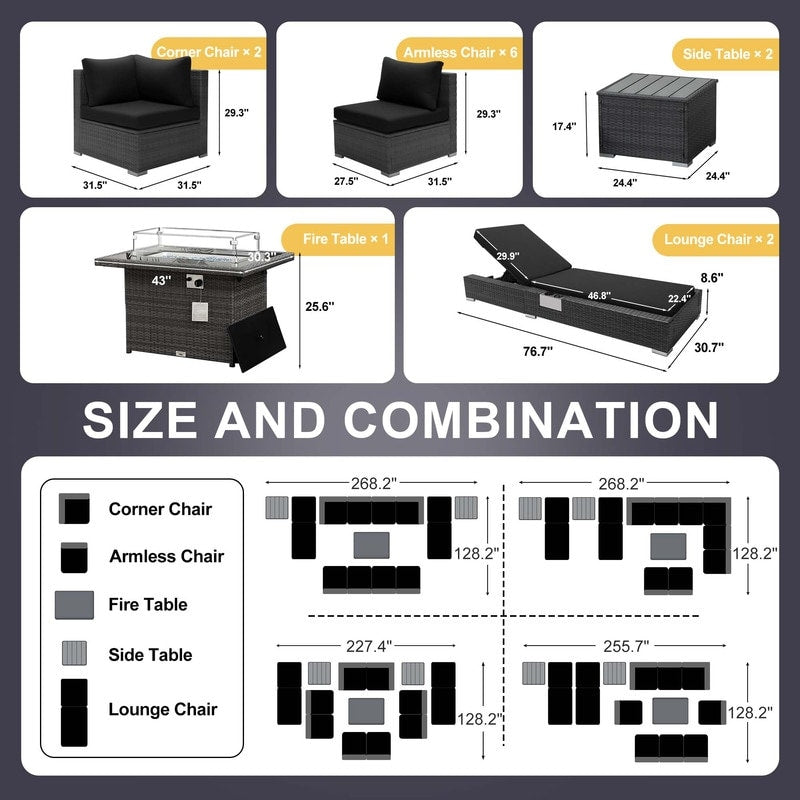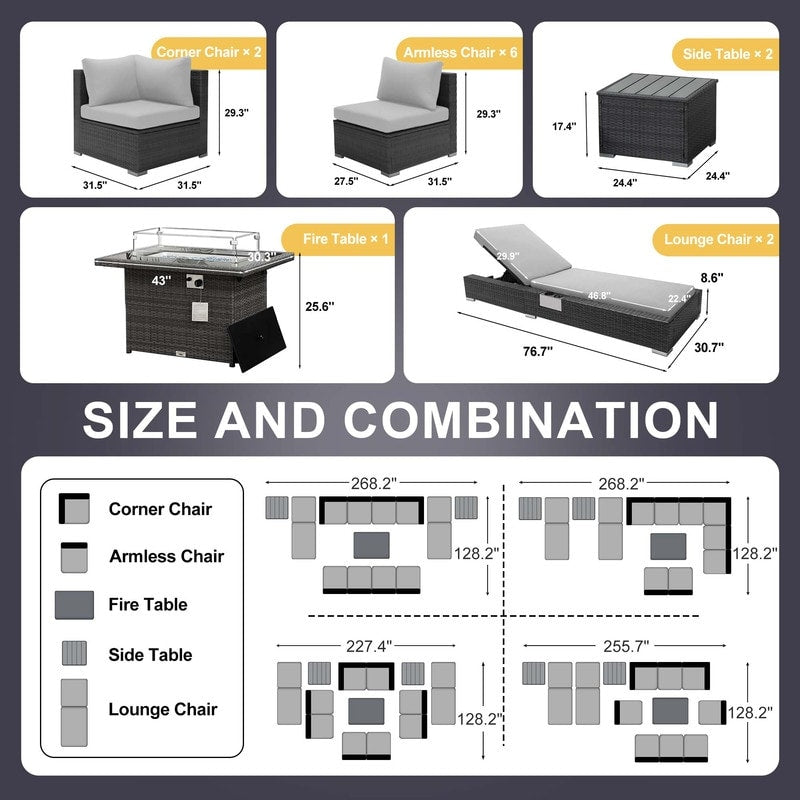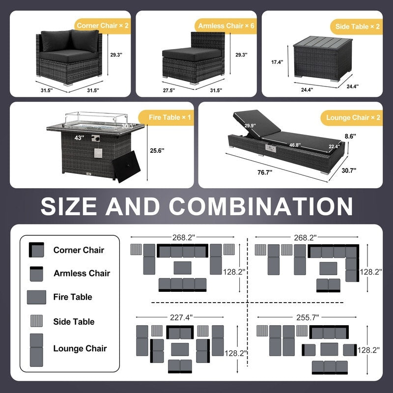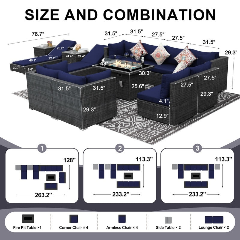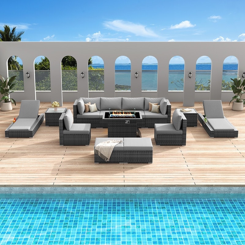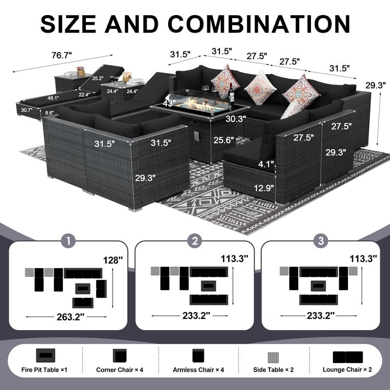 - Extra Large Size Our large size outdoor patio sectional sofa set ?brings together aesthetics and functionality. Fire Pit Table: This fire ?pit is available for both propane and gas.?