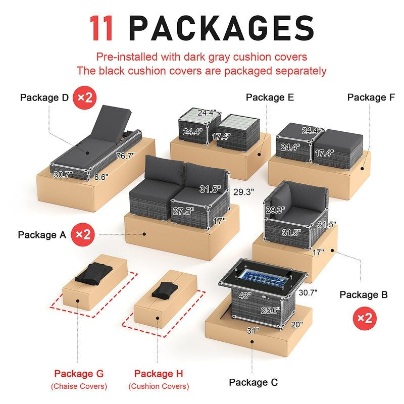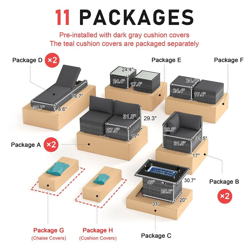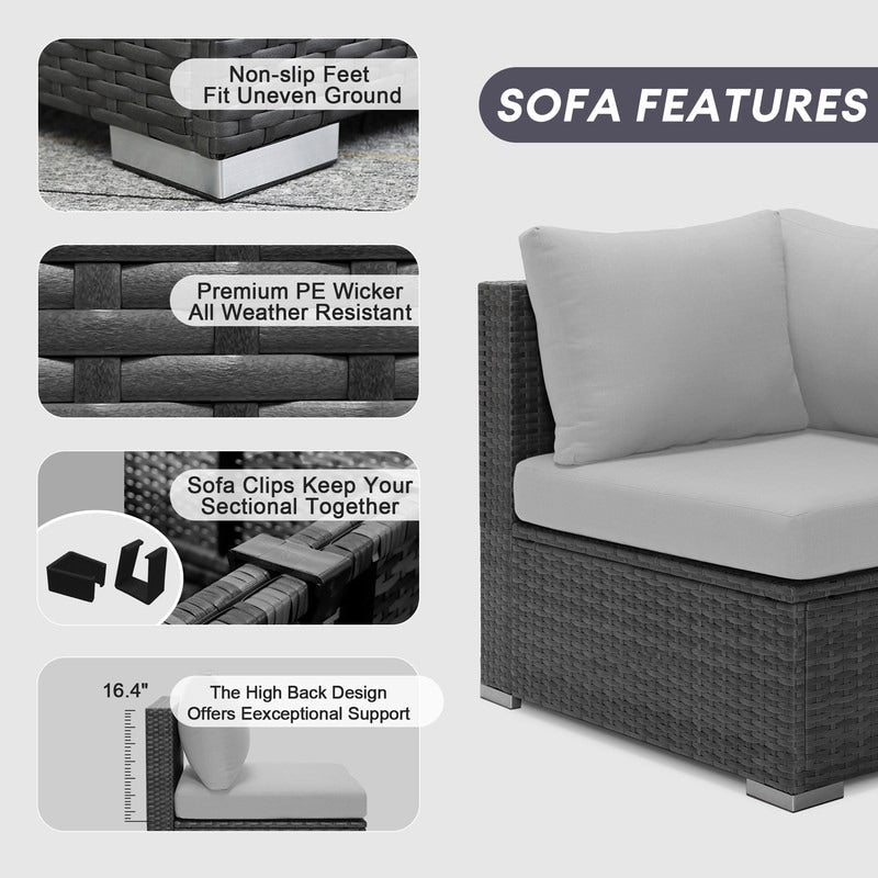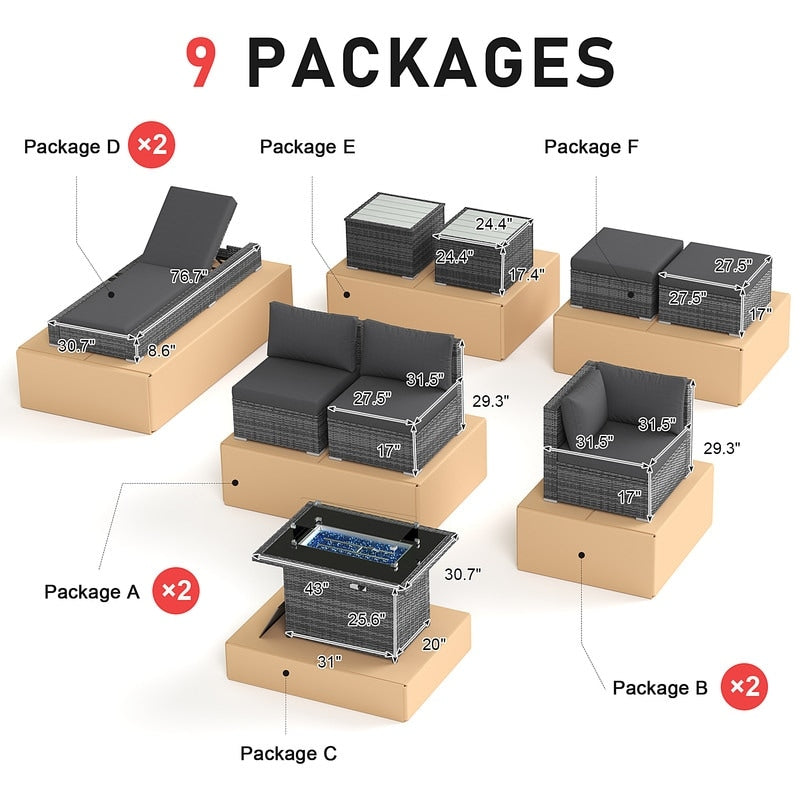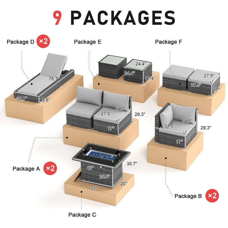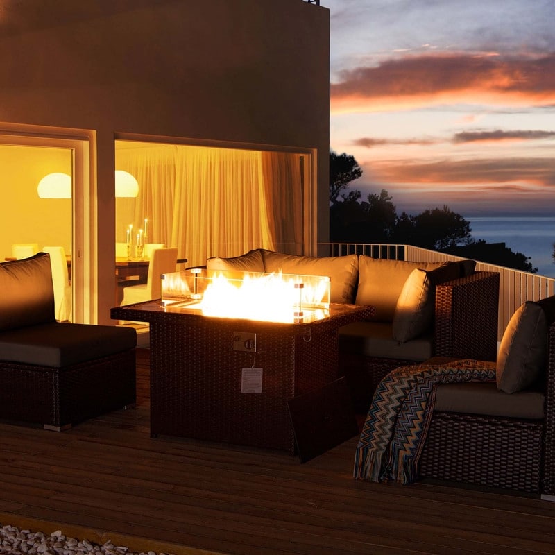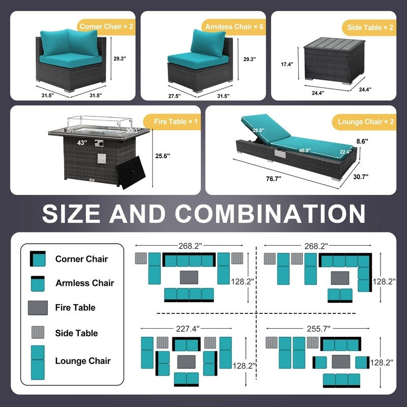 - Extra Large Size Our large size outdoor patio sectional sofa set ?brings together aesthetics and functionality. Fire Pit Table: This fire ?pit is available for both propane and gas.?