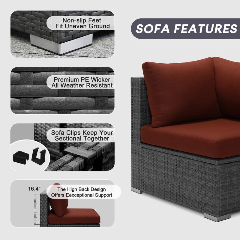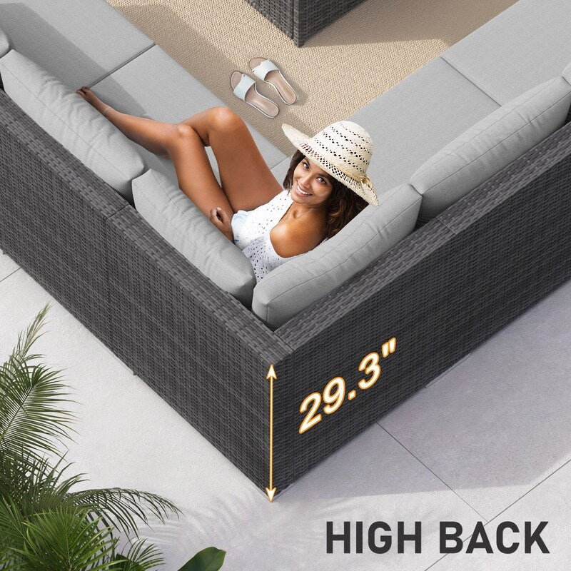 FINCATI 13 Pcs Patio Outdoor Wicker Furniture Sectional Sofa Set with Lounge Chair