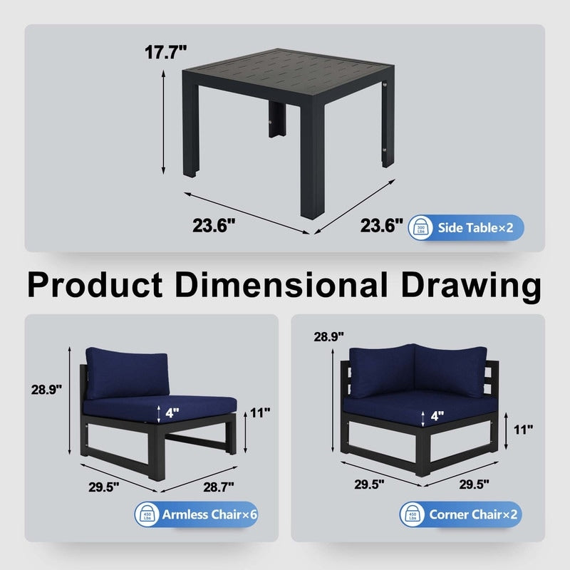 - Quality Construction: Our patio set features a high-quality, ?powder-coated aluminum frame that is sturdy, anti-rust, and capable of ?holding up to 450 lbs.