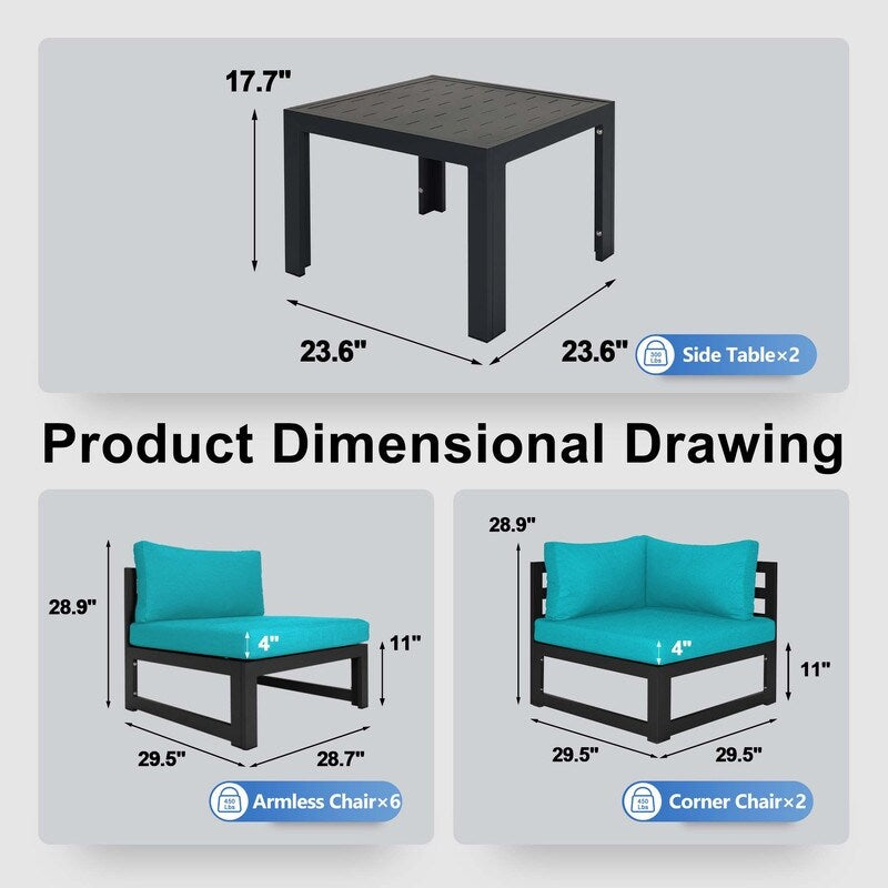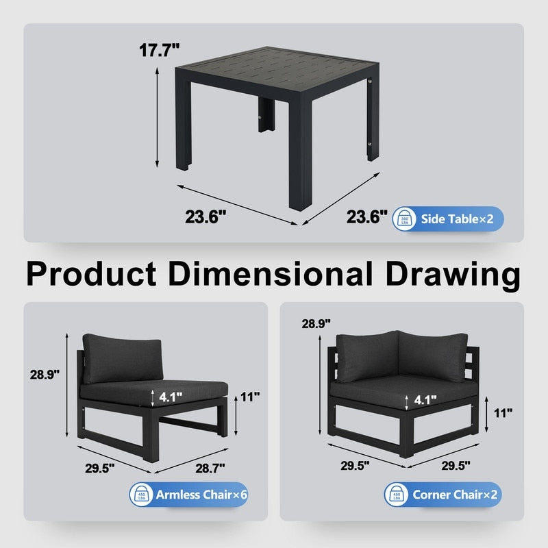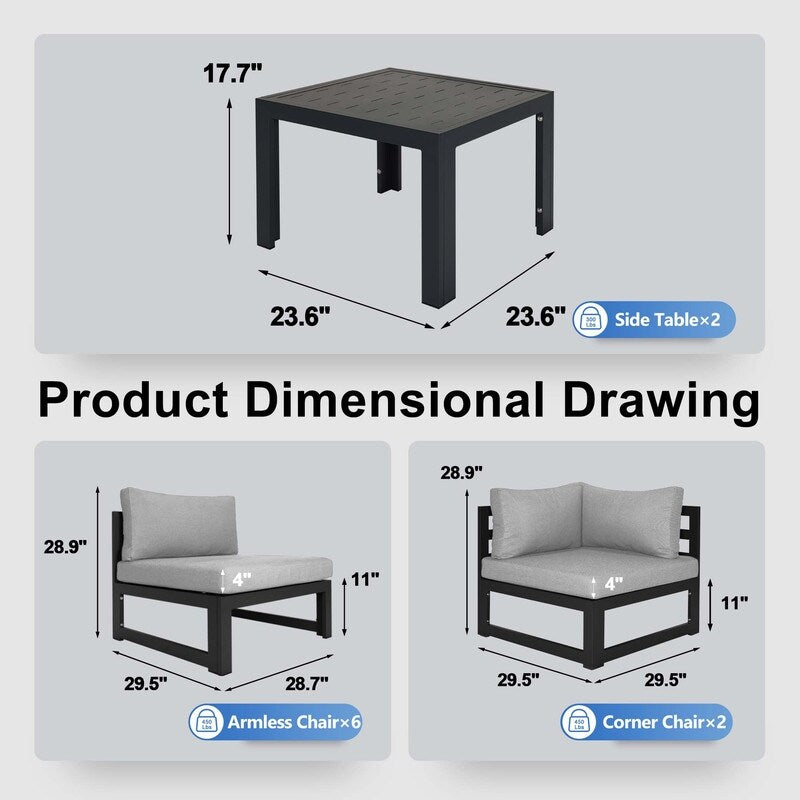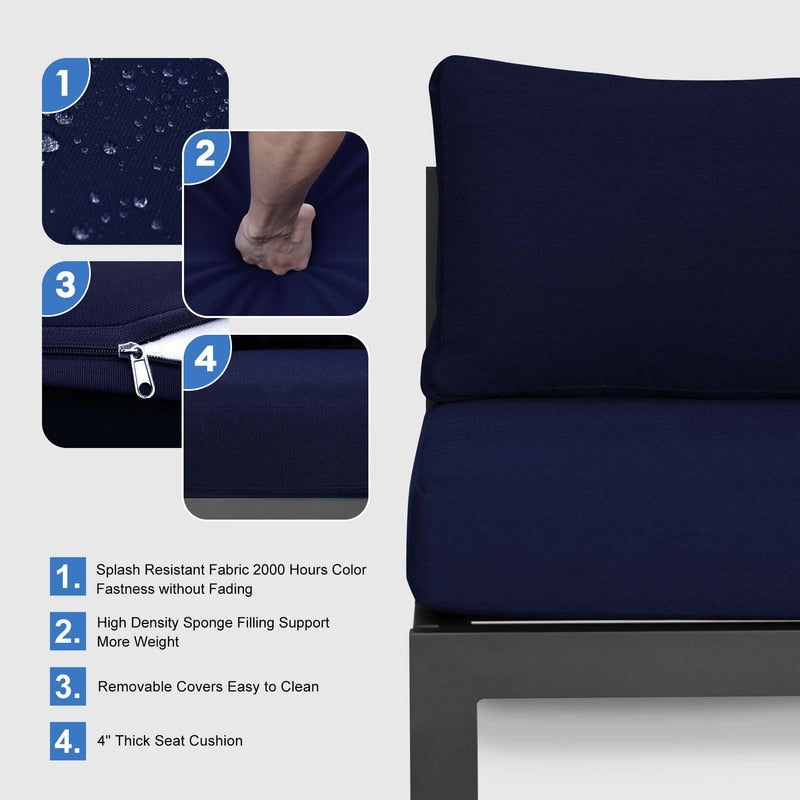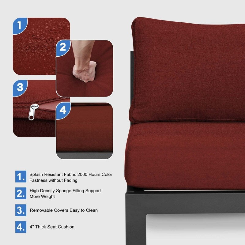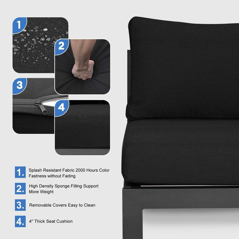 - Complete Patio Furniture Set: Experience outdoor luxury and comfort with our modern aluminum patio furniture set.