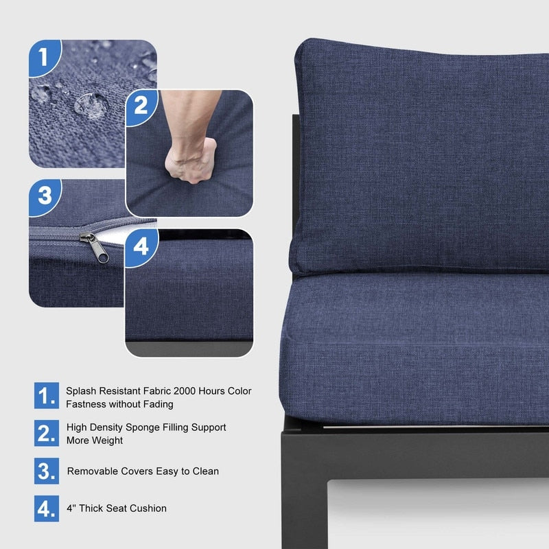 - Enhanced Comfort and Durability: We've thoughtfully upgraded our ?outdoor sofa set with 4.1' thickened seat cushions. These cushions ?provide the perfect balance of flexibility and support.