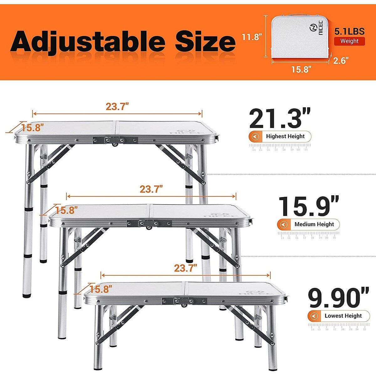 Folding Card Table Adjustable Height, Portable Camping Table Lightweight Aluminum, with Carry Handle for Outdoor, Beach
