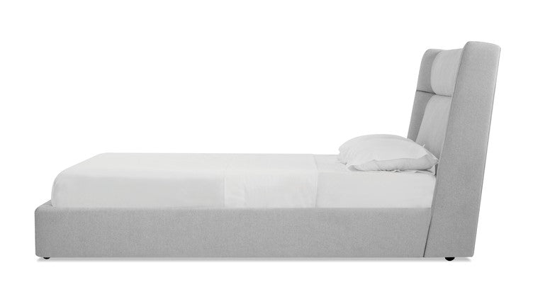 [description] Le lit Foster présente un design élégant et moderne, intemporel. Entièrement recouvert de microsuède fin et de similicuir, il est doté d'une tête de lit haute ornée de délicats rabats de chaque côté, pour un style élégant. Associez-le à des tables d'appoint contemporaines en bois ou laquées pour obtenir le style dont vous rêvez. [/description]