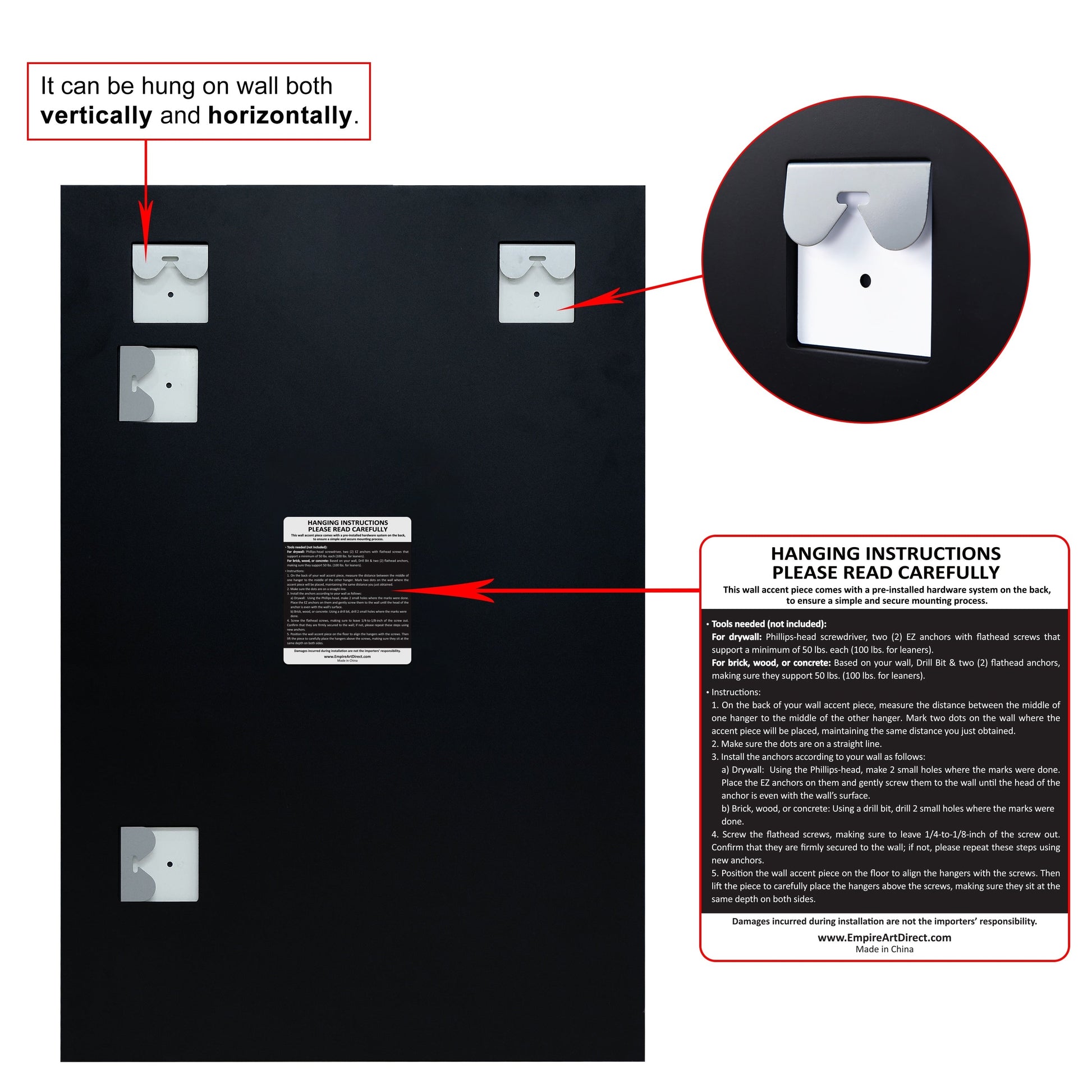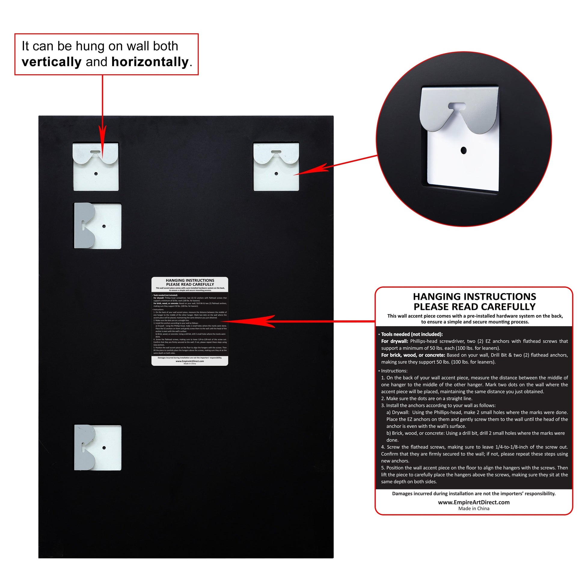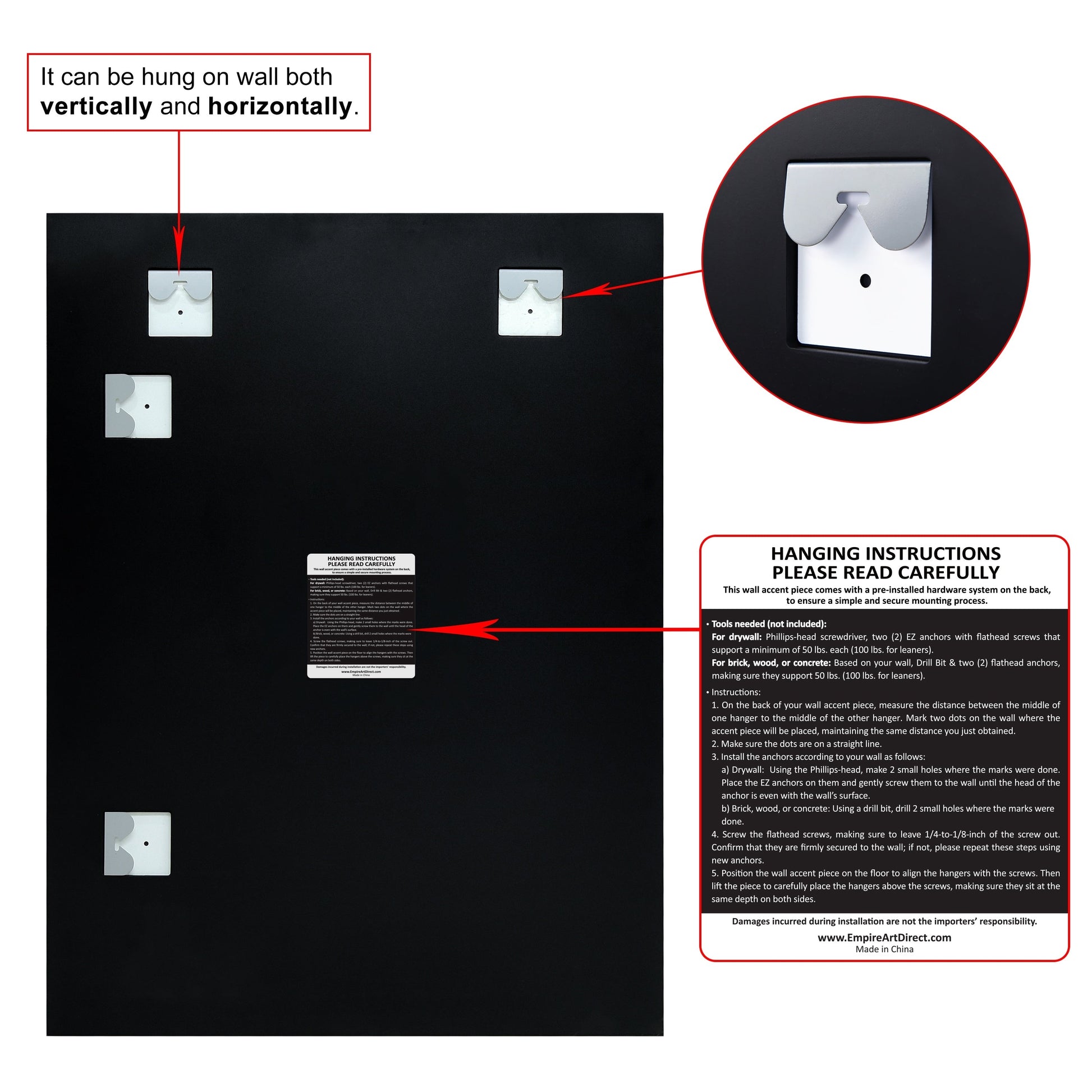 - Can be hung vertically or horizontally