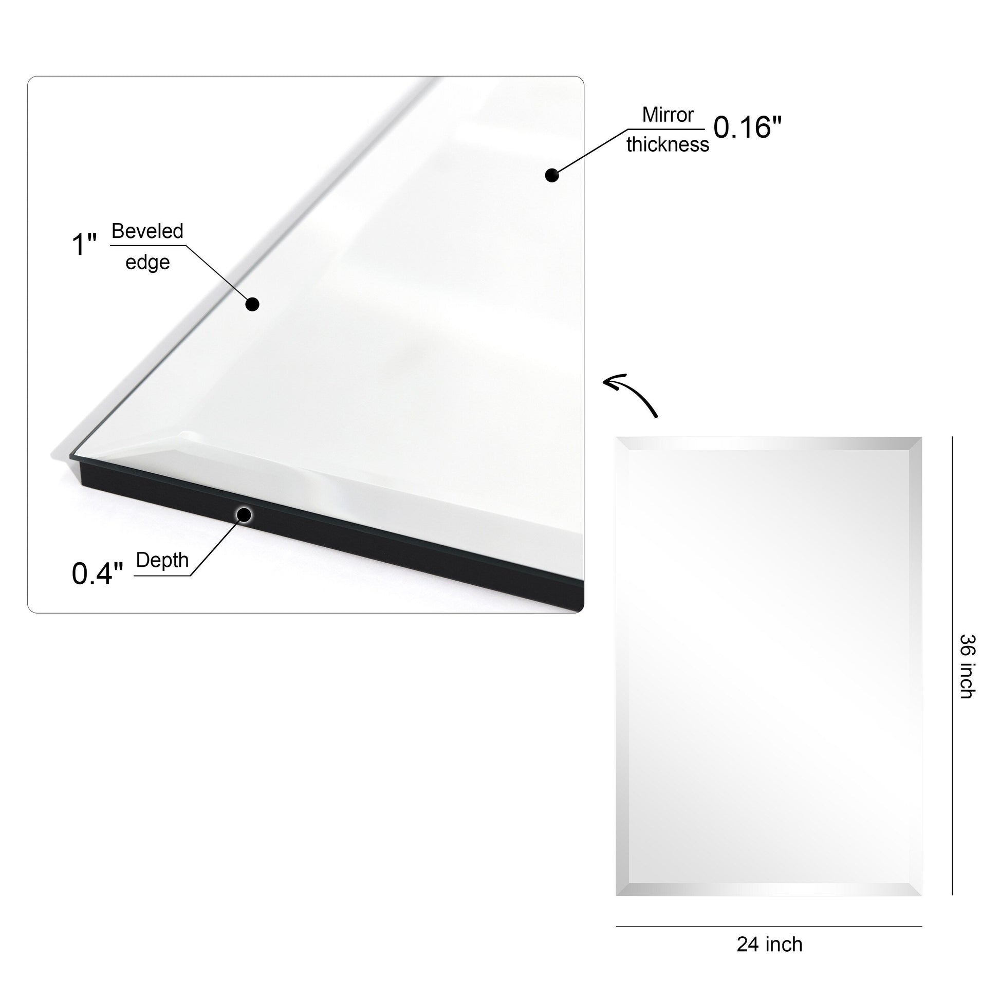 - Beveled edge adds a touch of sophistication