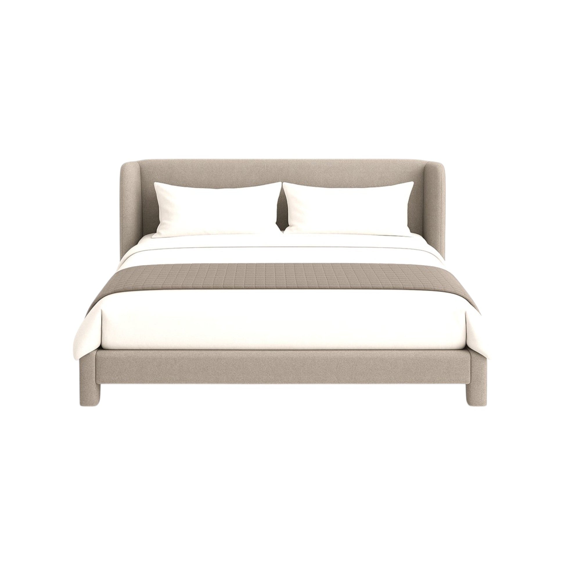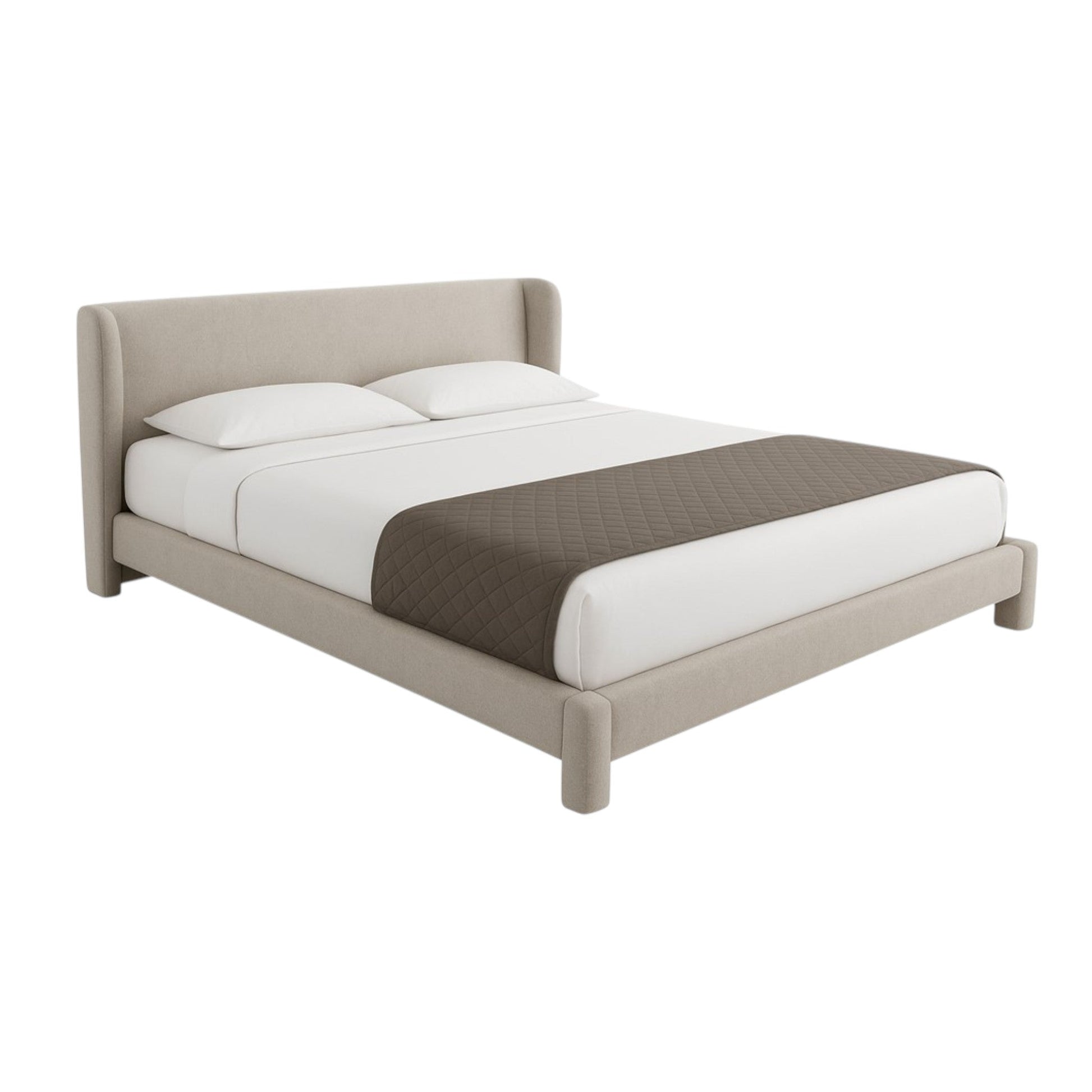 contemporain et sinueux tête de lit courbée cadre et pieds rembourrés confort et design polyvalent et adaptable à tout espace de chambre moderne entièrement recouvert de tissu idéal pour les chambres |