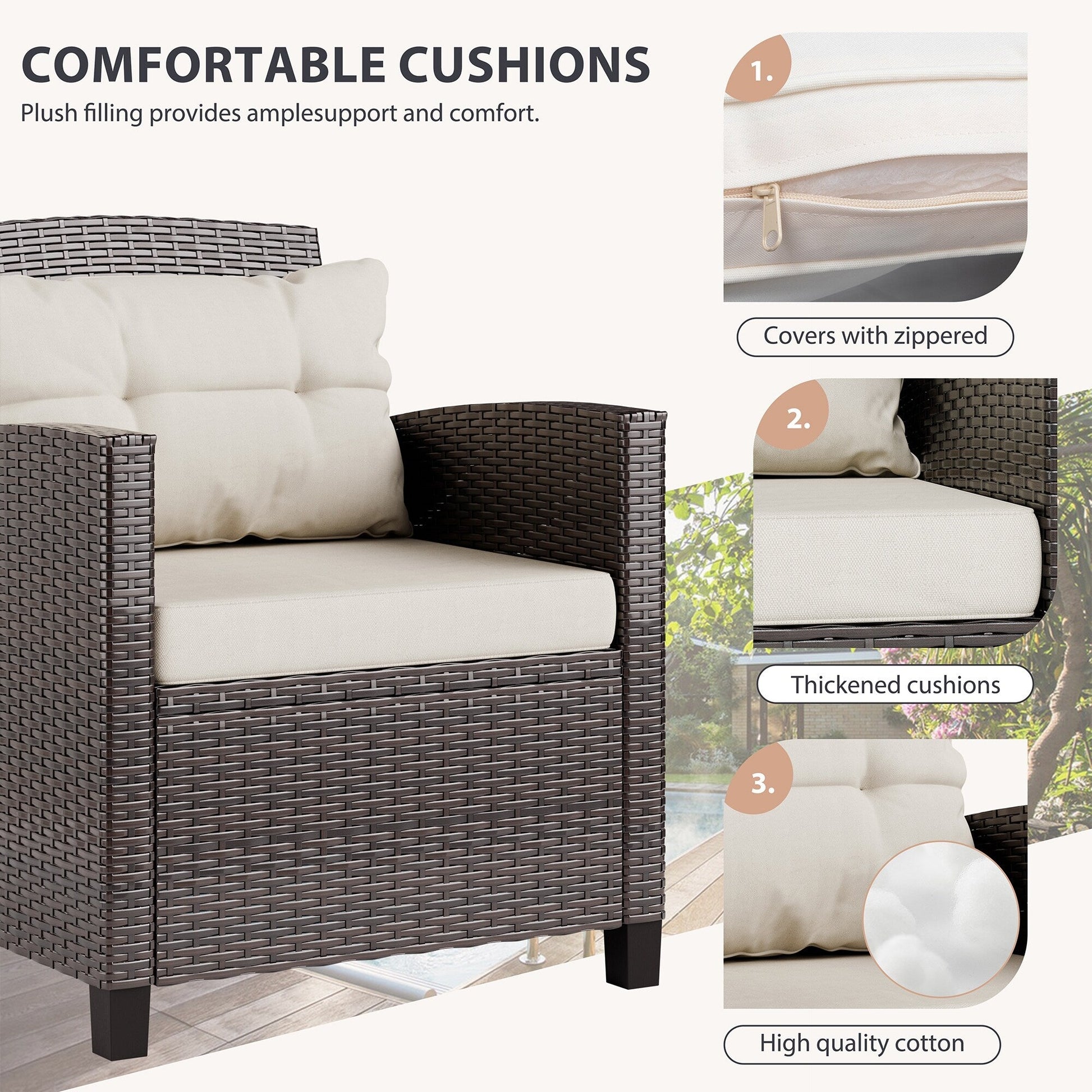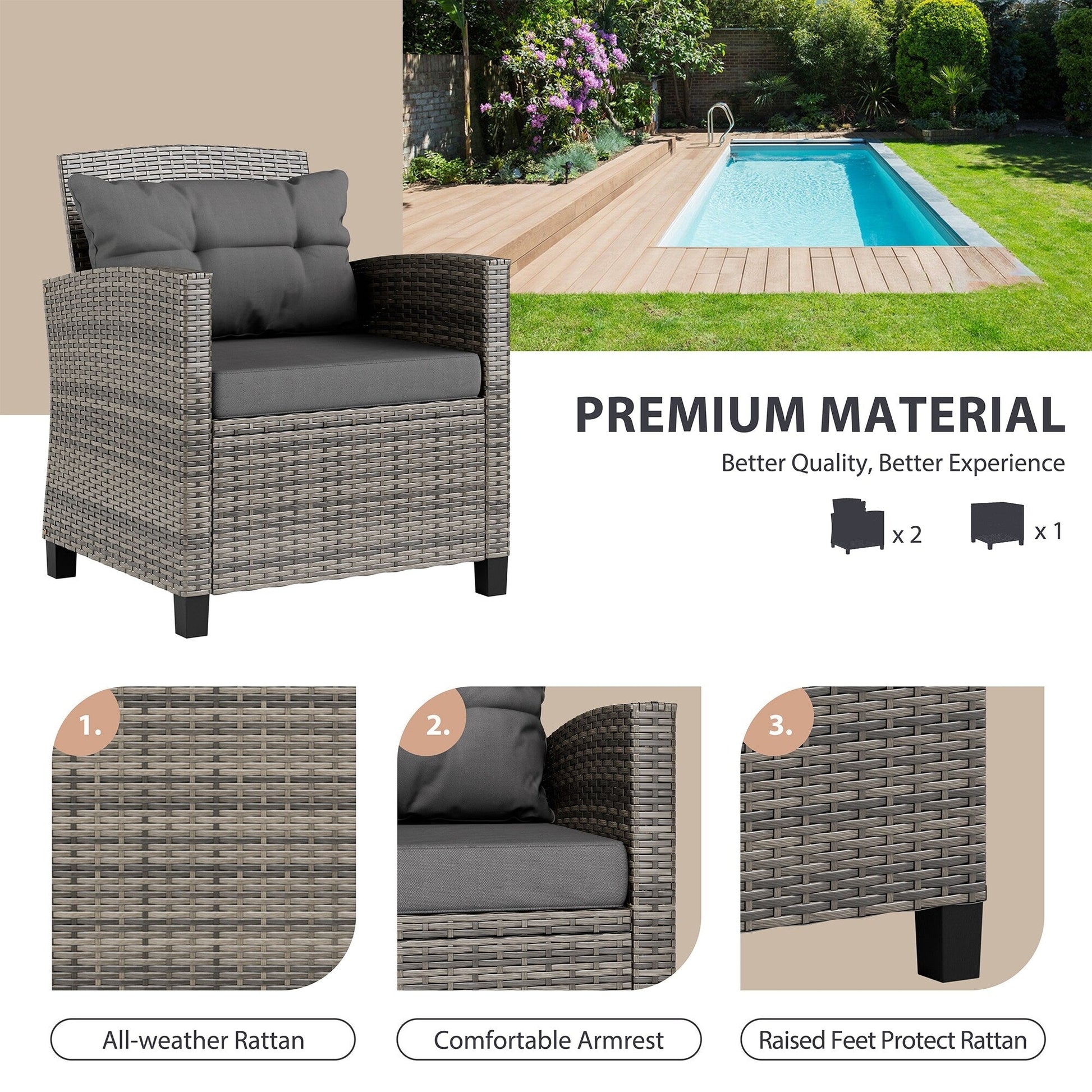 Advanced Rattan and Frame: Made of commercial-grade hand woven PE wicker and strong powder-coated steel frame, this 3-piece patio set is sturdy and durable; ?Rust-proof, UV-resistant and waterproof feature also guarantee long lasting use.