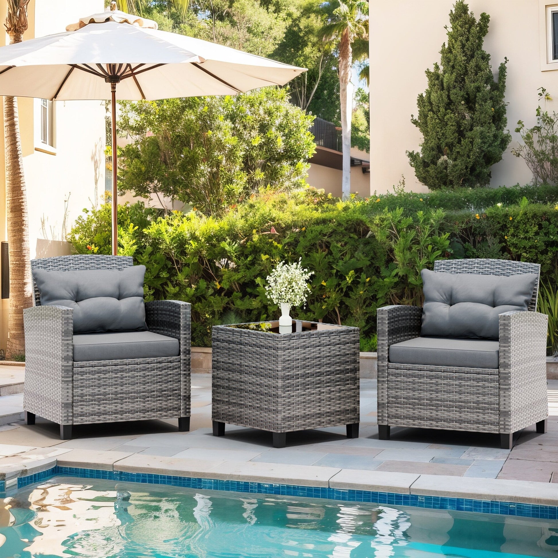 Futzca 3 Piece Patio Furniture Set with Glass Table