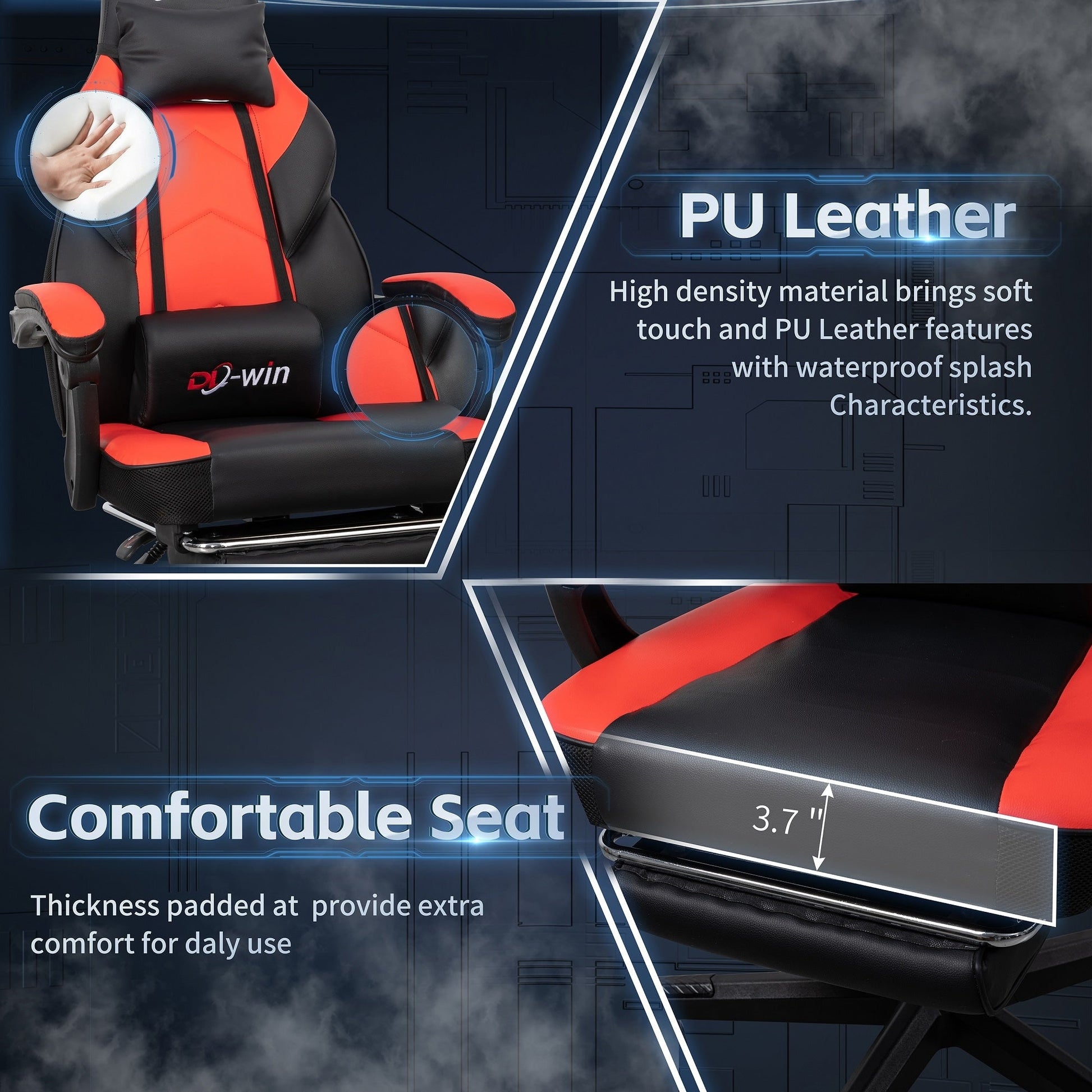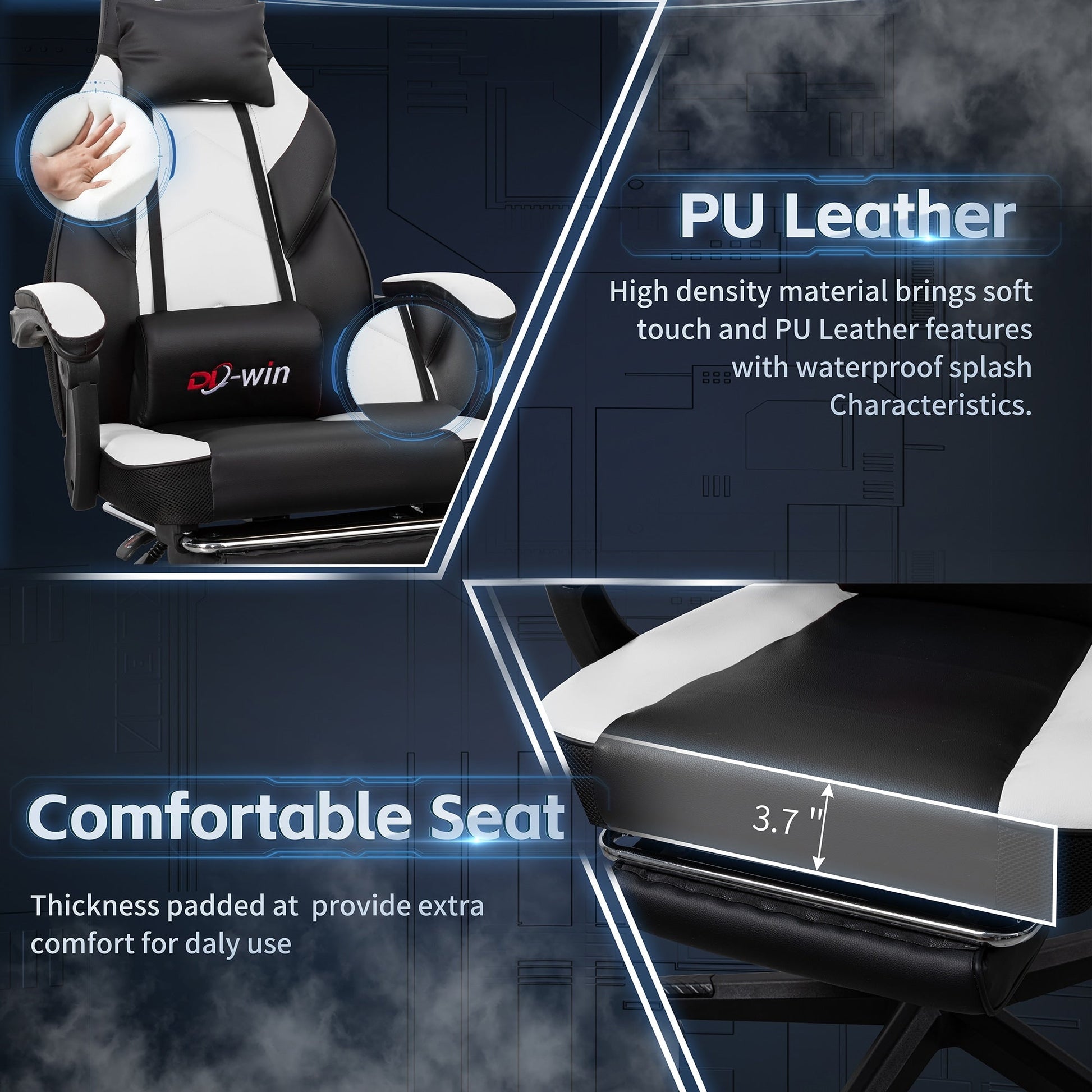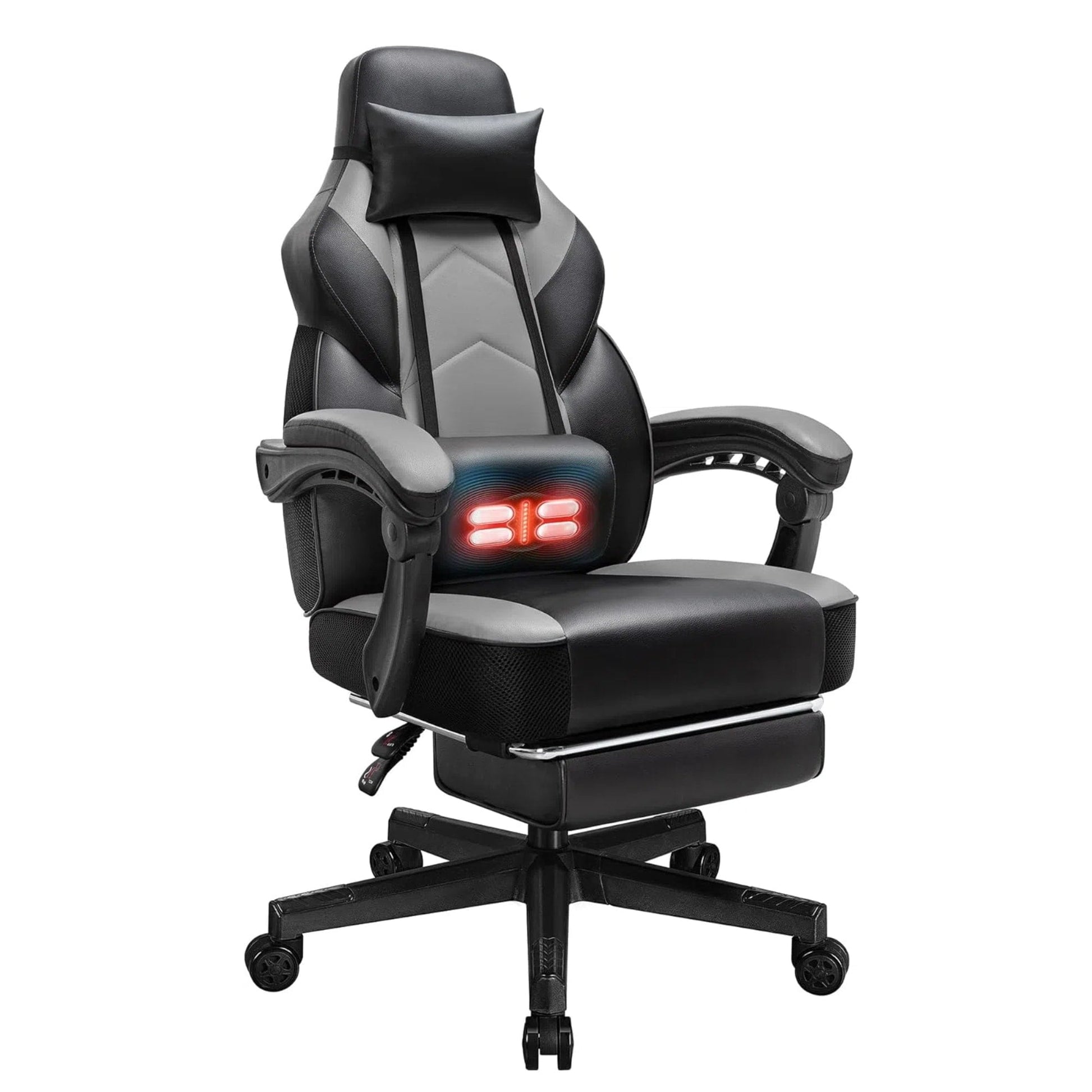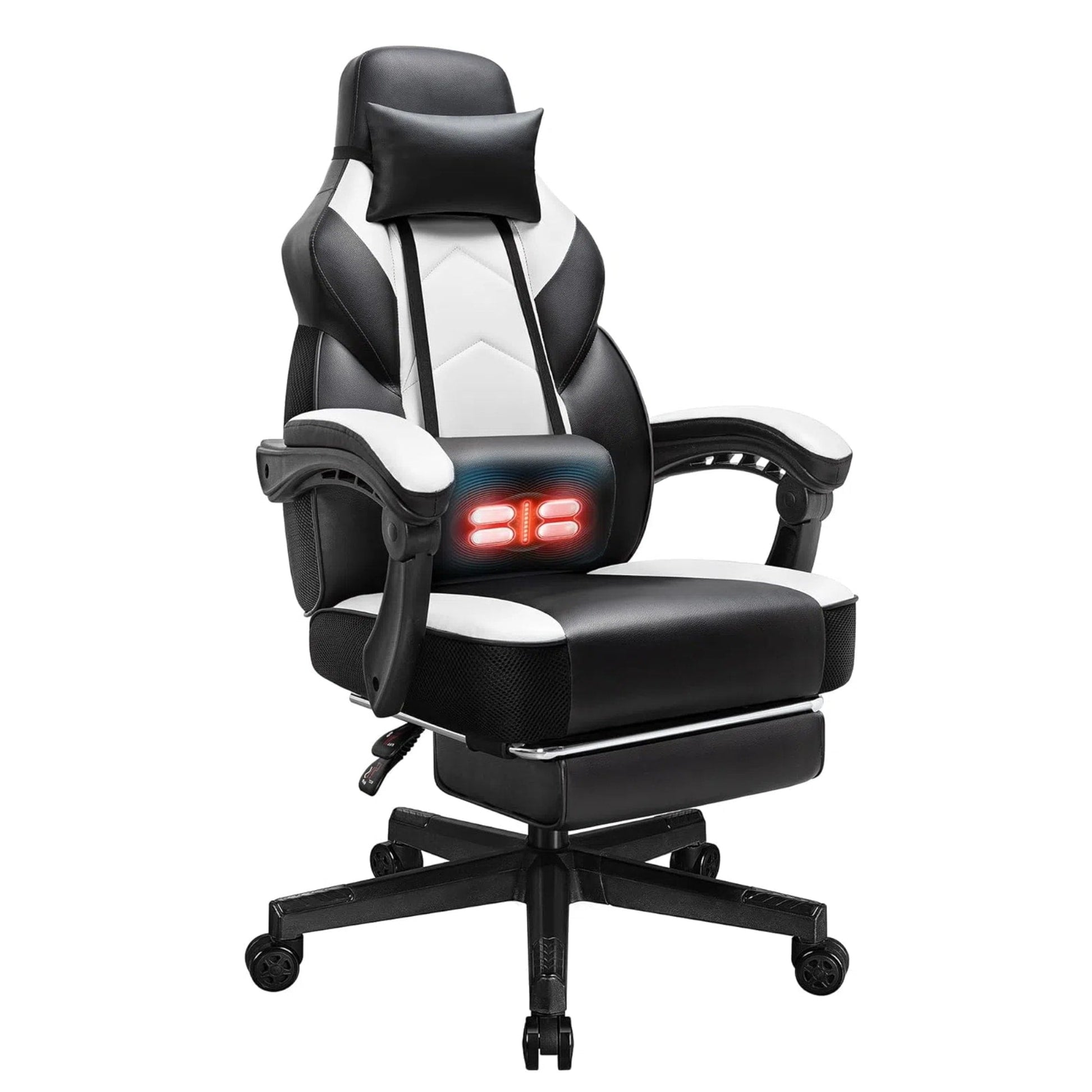 Futzca Gaming Chair PU Leather Office Chair with Headrest, Footrest & Massage Lumbar Support