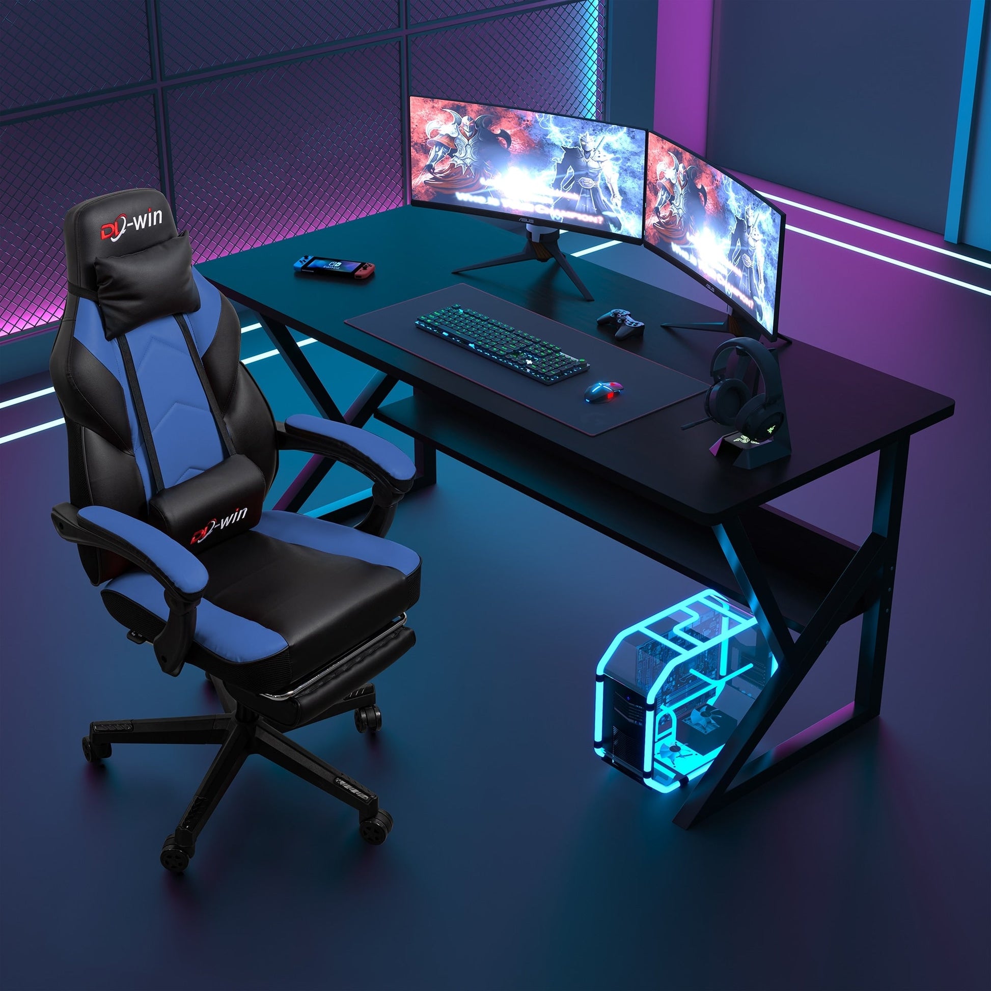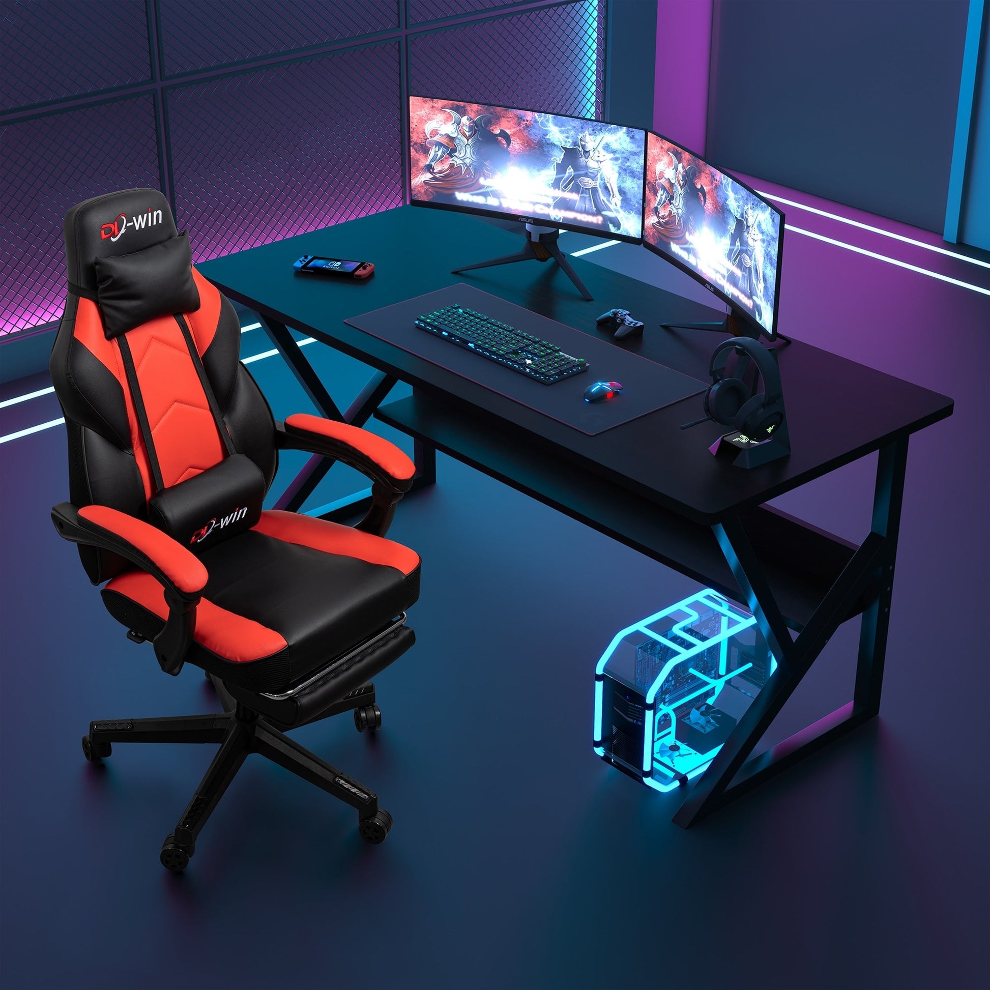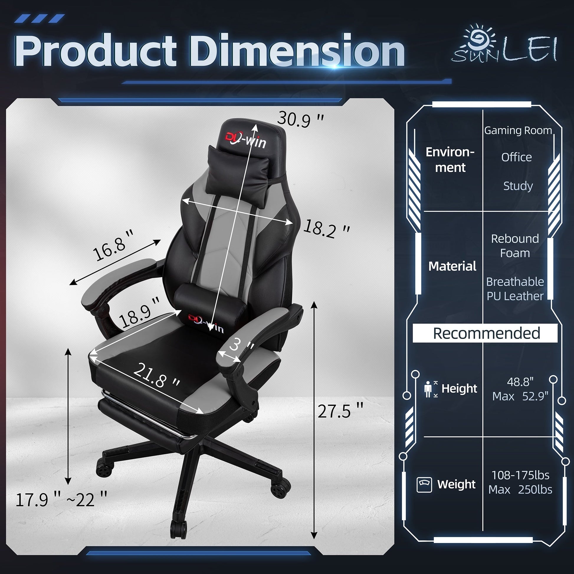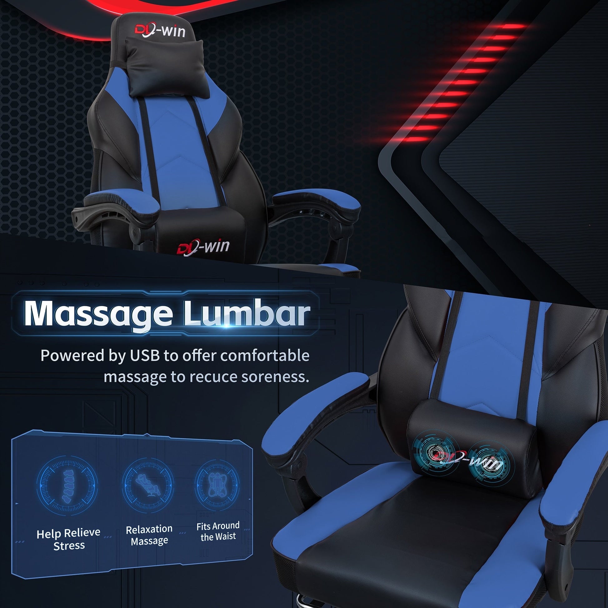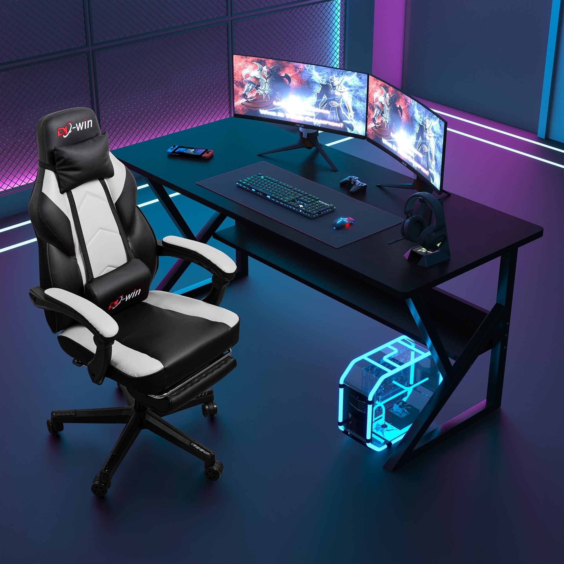 Futzca Gaming Chair PU Leather Office Chair with Headrest, Footrest & Massage Lumbar Support