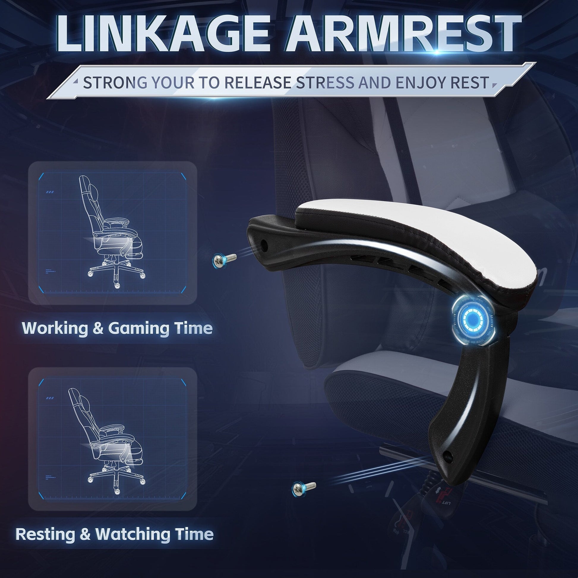 【Versatile & Ultimate Comfort】Our gaming chairs offer customized comfort to your preferences. njoy the flexibility of 360° swivel, height adjustment and seat back that can be locked in any position up to 135°. In addition, the linkage armrests provide optimal comfort by better supporting your arms and relieving wrist stress and muscle strain.