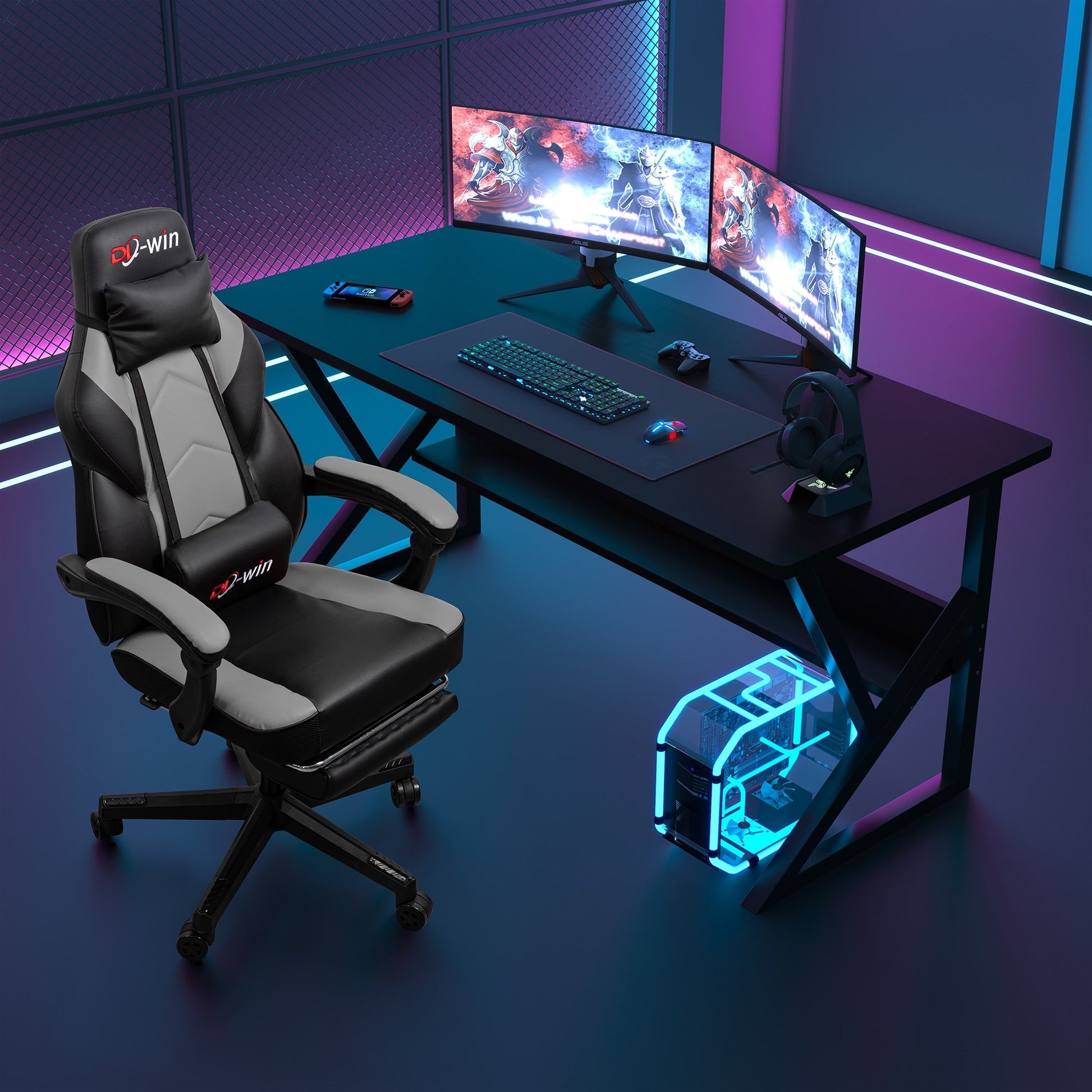 【High-Quality Material】The video gaming chair is made from breathable leather seat cushions, the leather is crafted to be wrinkle-resistant and the bonding features sturdy double stitching. it ensures softness and comfort while allowing you to enjoy breathable freely during long gaming sessions.