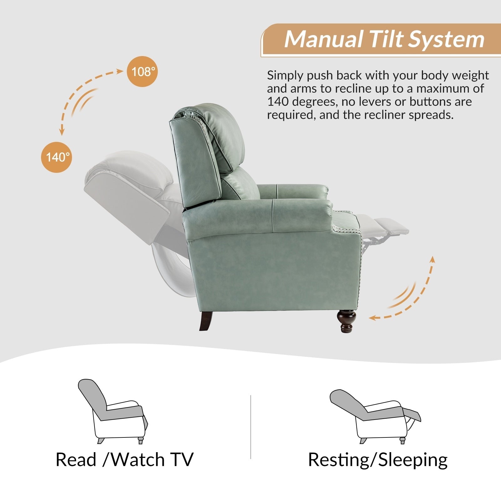 This Multifunctional Recliner is designed to provide ultimate relaxation while adding a touch of sophistication to any room. This set of recliners exudes luxury and comfort when both upright and in the reclining position while the smooth leather adds sophistication. This set of two recliners is crafted from solid and manufactured wood, plus solid wood legs with a mid-century modern appearance. This Recliner is a must-have for anyone who values comfort, style, and durability. With its exquisite design and premium materials, this chair is sure to become the centerpiece of any room it is placed in.