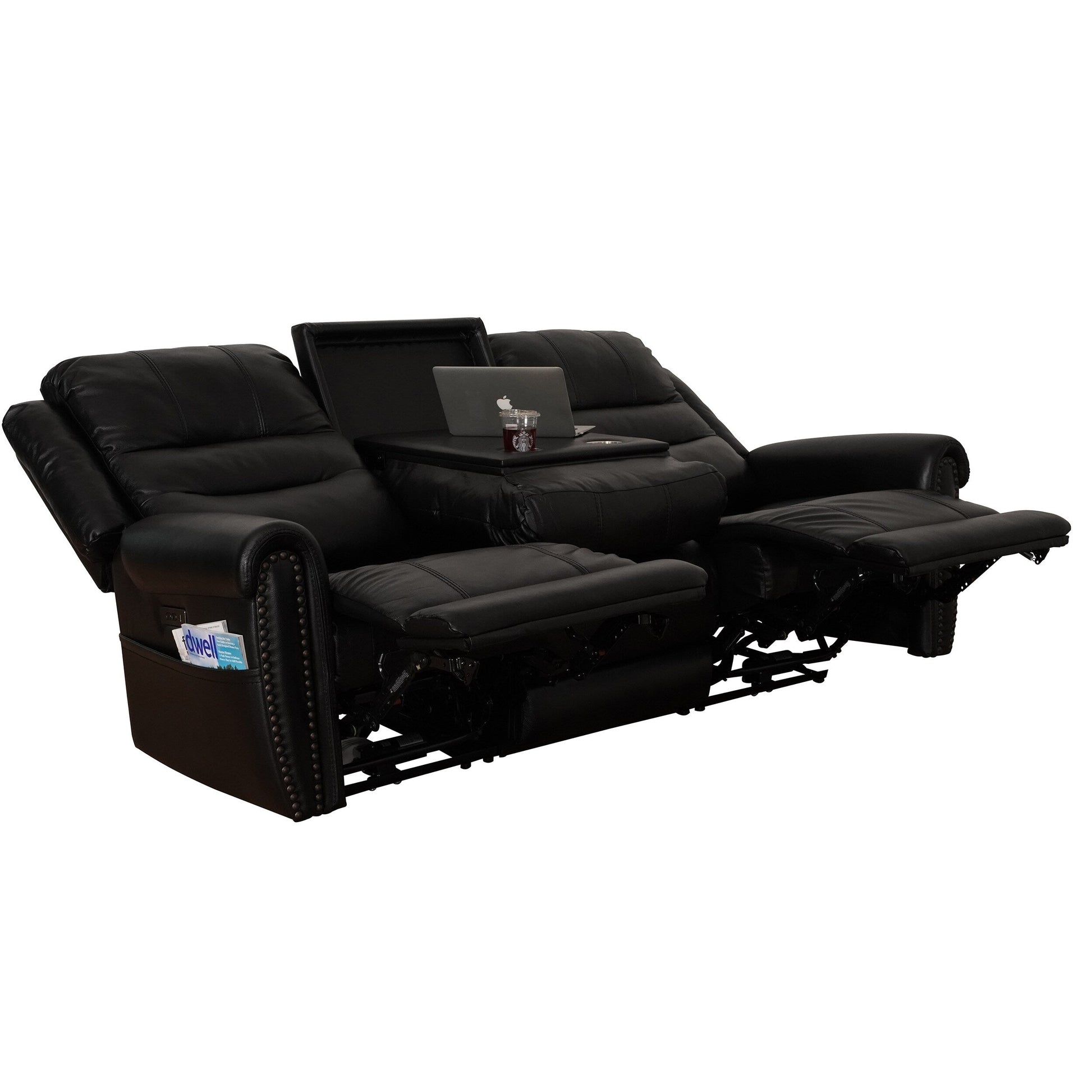 Genuine Leather Black Power Recliner Sofa, Loveseat, Recliner With Adjustable Headrest and Extendable Footrest