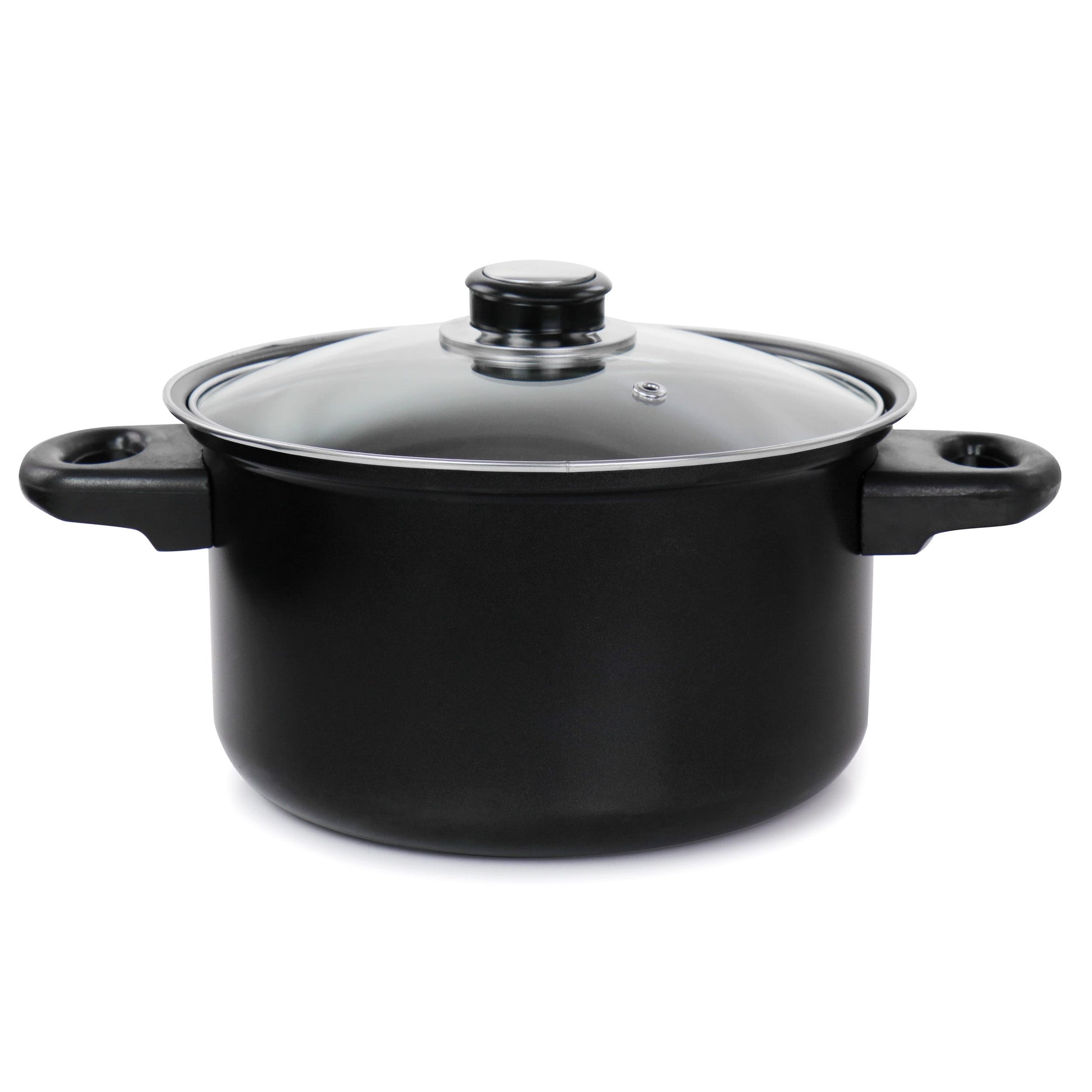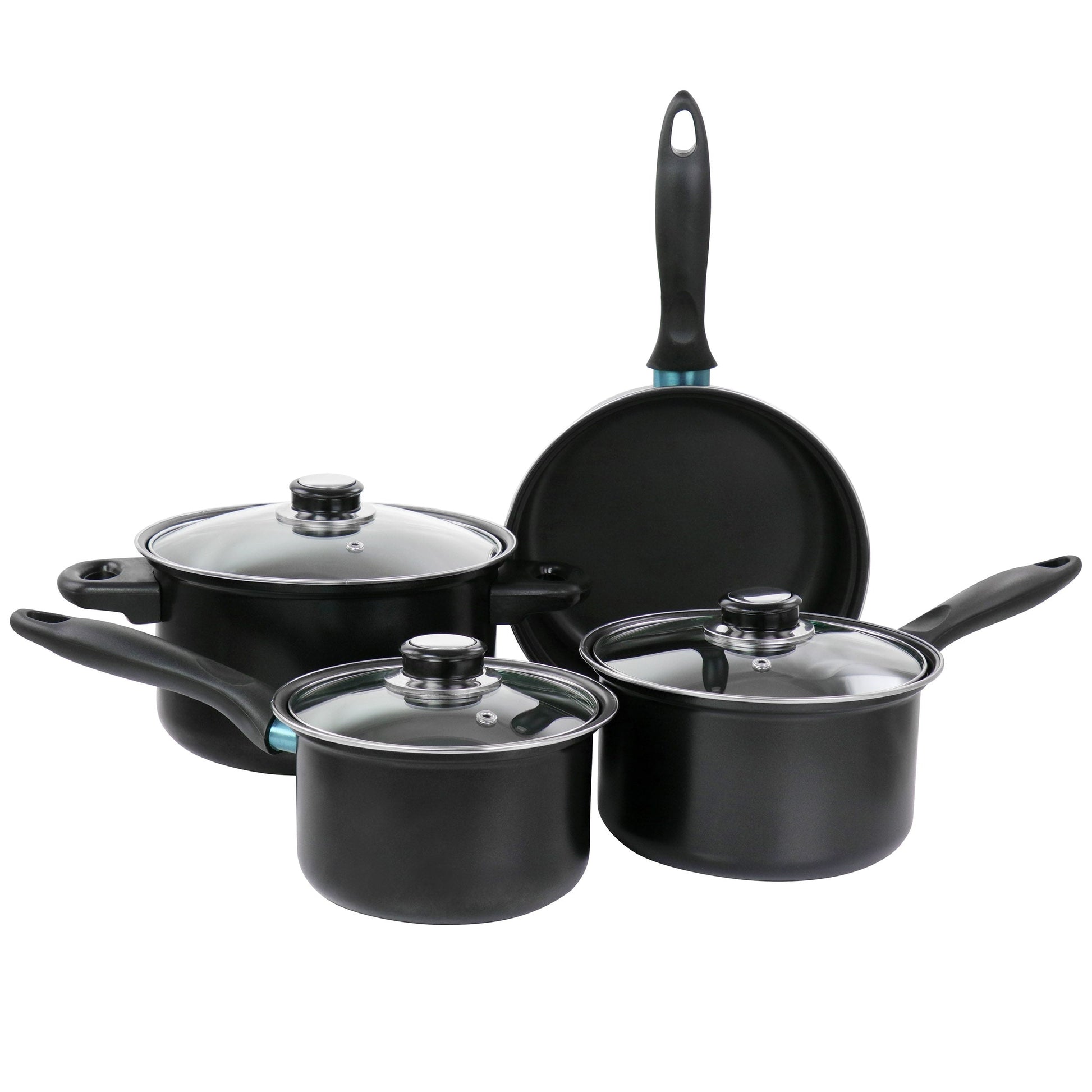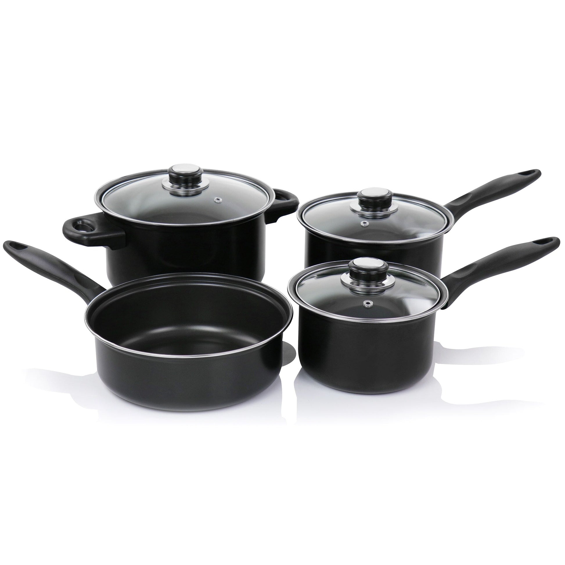 The Gibson Home Newton 7 Piece Carbon Steel Cookware Set comes with all your cookware pot and pan essentials. All pots and pans have a nonstick coating that requires less oil for healthier meals and an easy clean up once meal time is over. Bakelite handles are cool to the touch for easy movability while cooking. This set comes with one 3.25qt dutch oven and lid, one 1.25qt saucepan with lid, one 1.75qt saucepan with lid, and one 8.5in frying pan. All items in this set are gas, halogen, electric, and induction safe.Material: Carbon Steel and Tempered GlassColor: BlackNonstick CoatingHand Wash OnlyBakelite HandlesSet Includes:One 3.25qt Dutch Oven with glass lidOne 1.75qt Saucepan with glass lidOne 1.25qt Saucepan with glass lidOne 8.5in Frying PanPer Item Measurements:Dutch Oven: 8.5in diameter, 12.75in length, 4.5in height, 8in diameter glass lid, 3.25qt capacityFrying Pan: 8.5in diameter, 15in length, 3in heightLarge Saucepan: 7.25in diameter, 14in length, 4in height, 1.75qt capacity, 7in diameter glass lidSmall Saucepan:6.75in diameter, 13.5in length, 3.75in height, 1.25qt capacity, 6in diameter glass lid