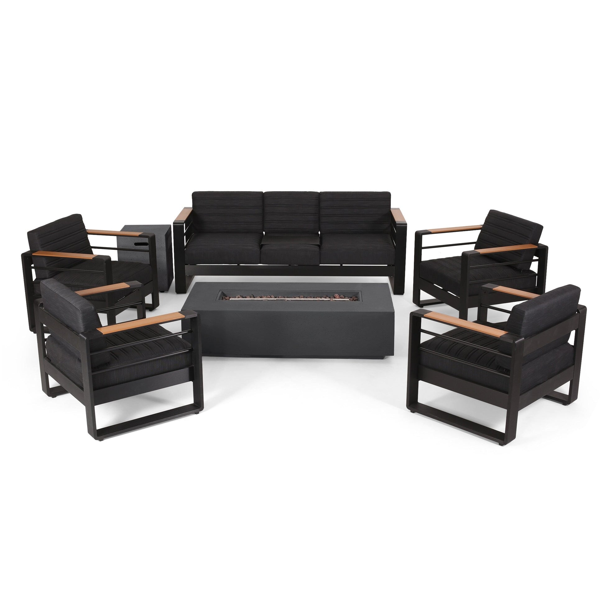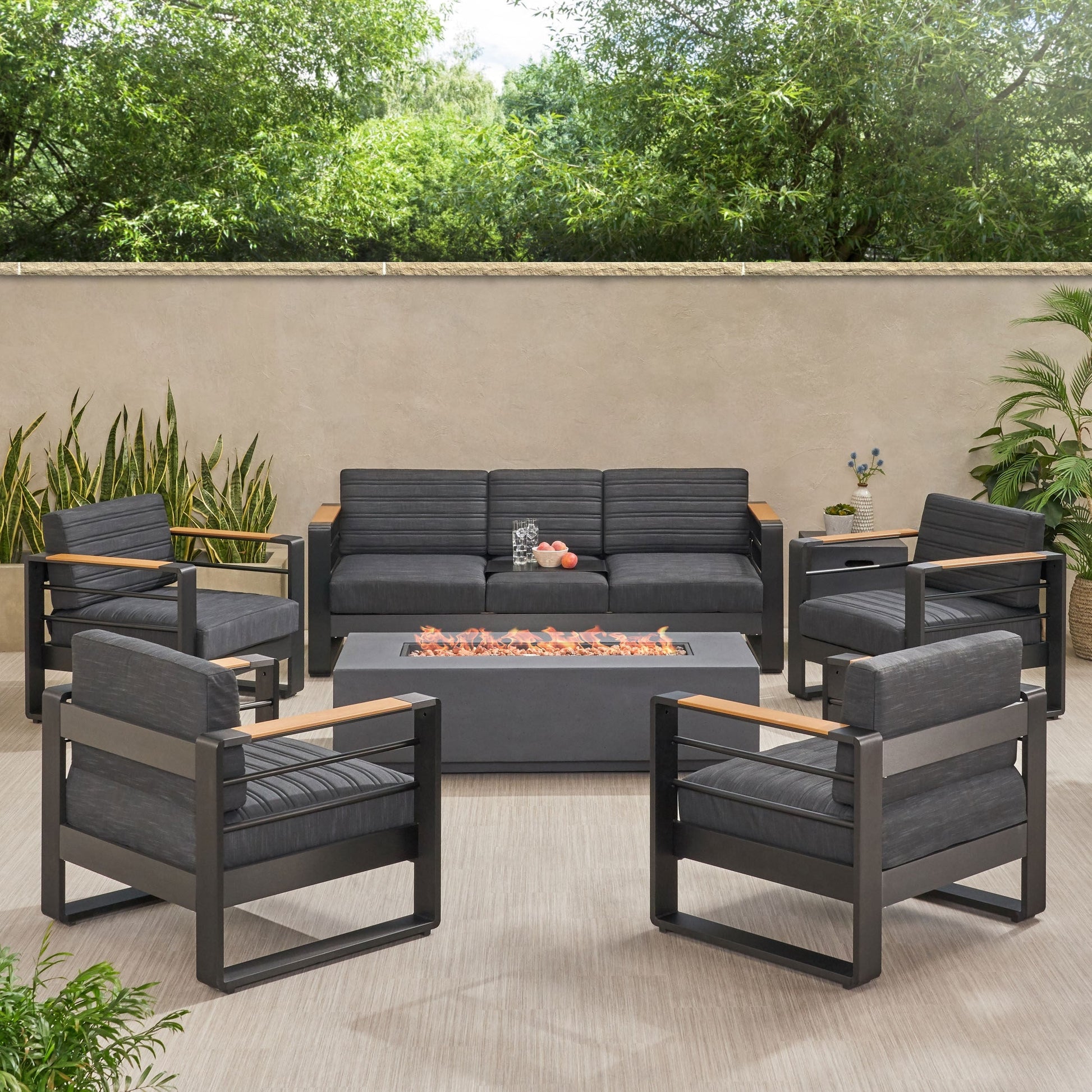 Giovanna Outdoor Aluminum 7 Seater Chat Set with Fire Pit by Christopher Knight Home
