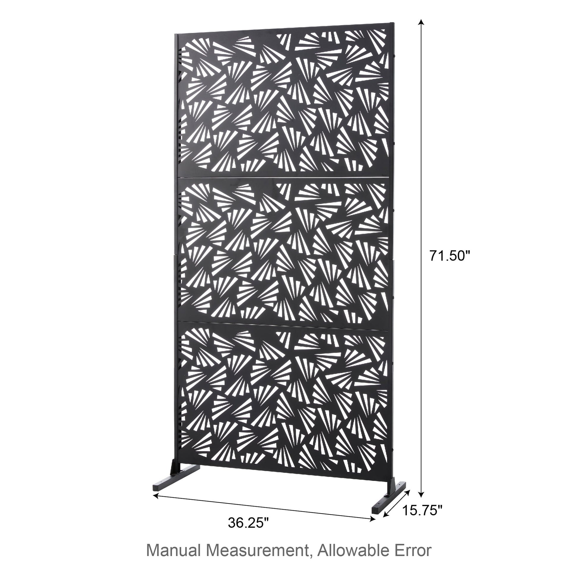 Glitzhome 6ft Galvanized Floral Patterned 3-Panel Privacy Screen Room Divider Fences