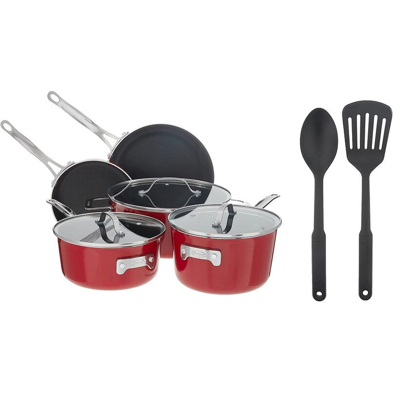 Gotham Steel Nonstick Pots and Pans 10 Pc Cookware Set, Red