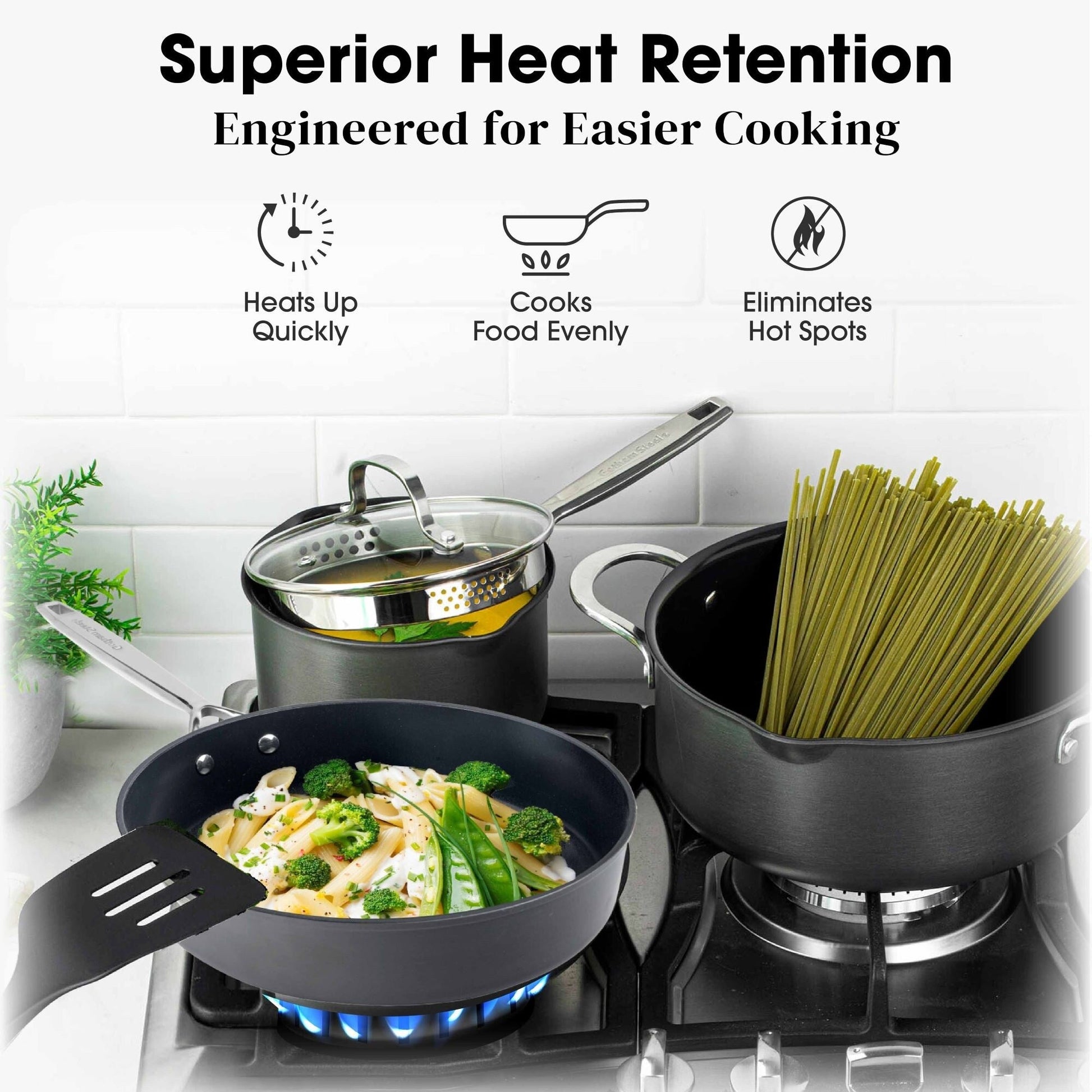 - Durable Hard Anodized Construction: The heavy-duty exterior offers superior durability and heat retention, ensuring even cooking across the entire pan with no hot spots.