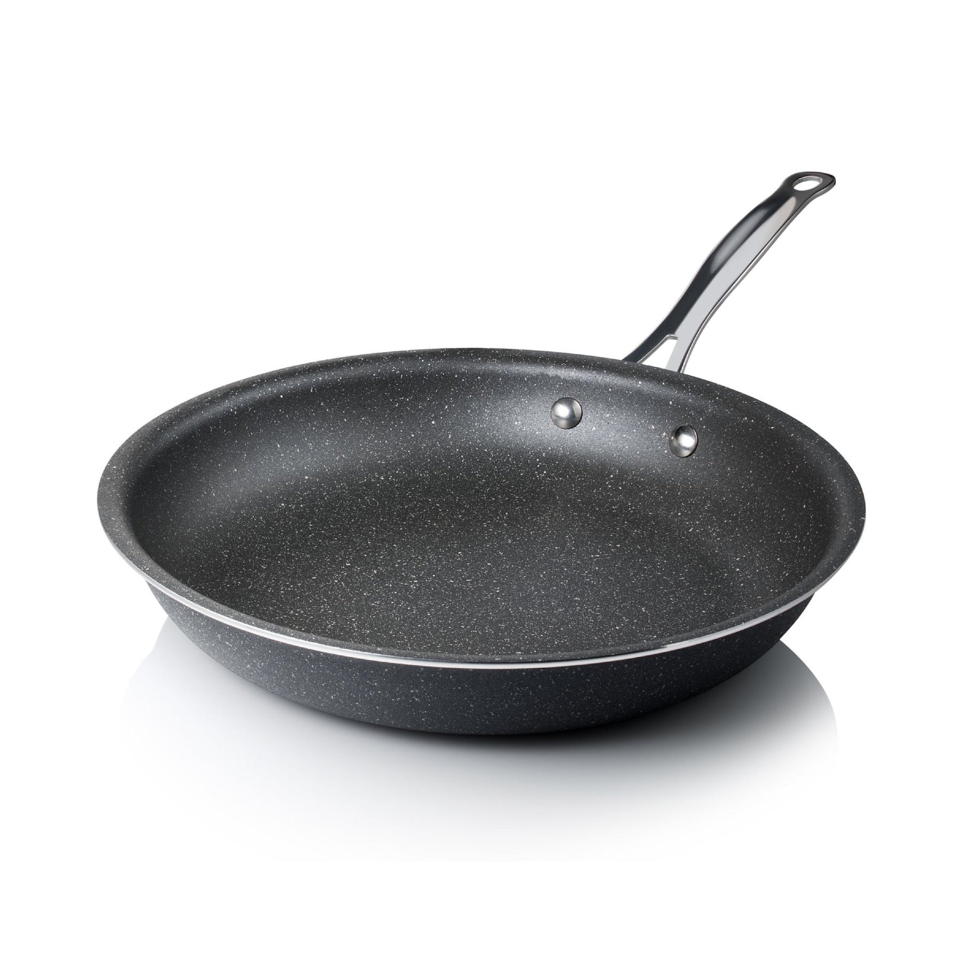 Granitestone 8'' Nonstick Fry Pan is the ideal everyday skillet for home chefs seeking durability, style, and convenience. Featuring a classic black speckled finish and triple-coated nonstick interior, this high-performance pan allows you to cook eggs, potatoes, as well as reheating leftover and more with little oil. The cool touch handle ensures safe handling, while its aluminum construction guarantees fast, even heating. Oven safe up to 500°F and compatible with most stovetops, this scratch-resistant pan is dishwasher and metal utensil safe—perfect for busy kitchens and healthier meals. Made without PFOA and PFOS, it’s a nontoxic option that delivers professional-quality results.