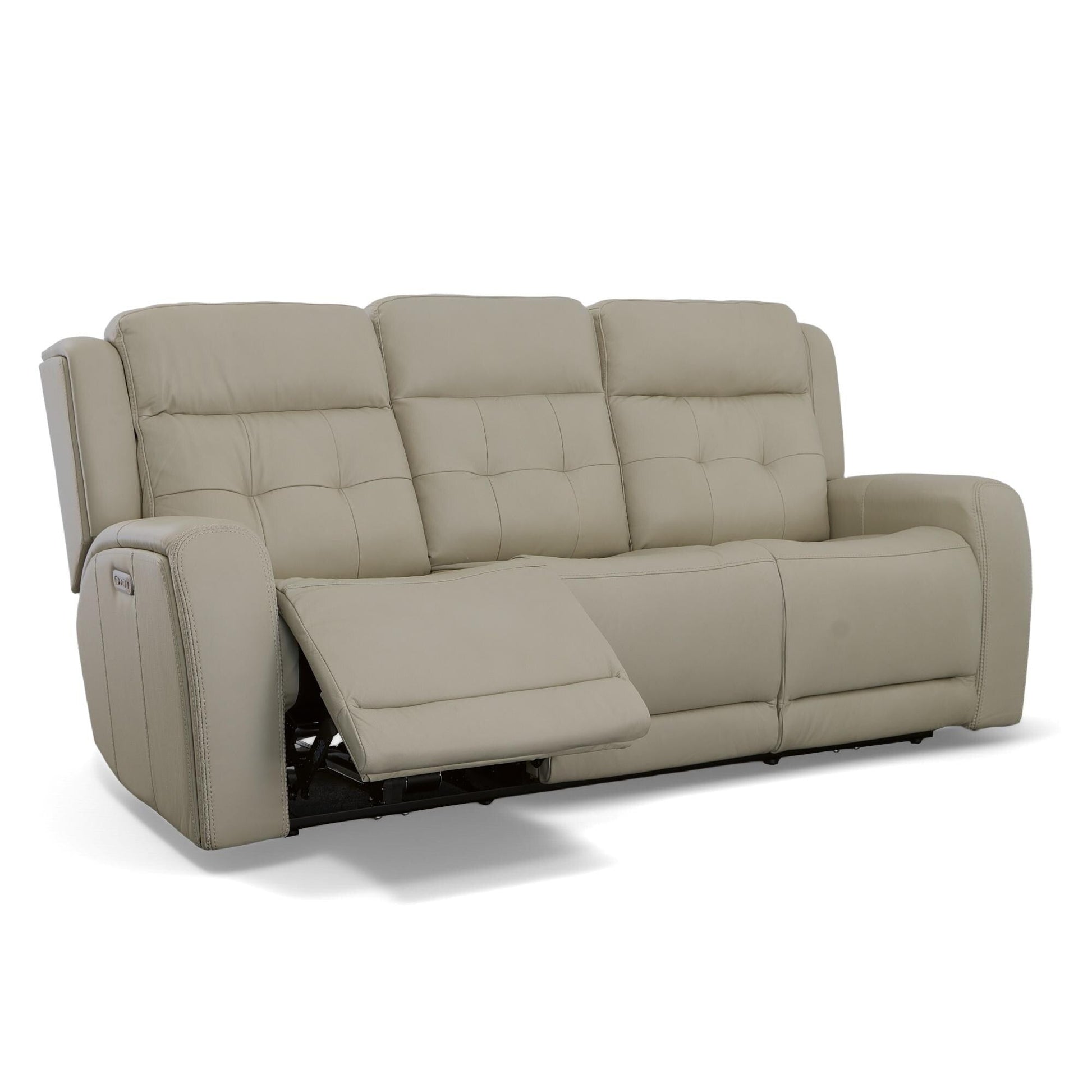 Get a sofa that effortlessly serves as both a centerpiece for your home and a place for relaxing with the Grant Power Reclining Sofa with Power Headrests. Striking design elements, including a tailored tufted back cushion and distinctive sloped arms, elevate the look of this reclining sofa. Ergo-friendly features, like plush back cushions, contoured seats and footrests with ample padding, keep your body supported and your mind at ease. Sitters can independently control the recline and headrestsâdialing in the right angle for their bodiesâwith convenient power controls on both sides of the sofa. The power controls also house USB ports for charging devices, so you donât have to worry about your phone going dead. Premium leather ensures an elegant look that will last, even in active family environments.