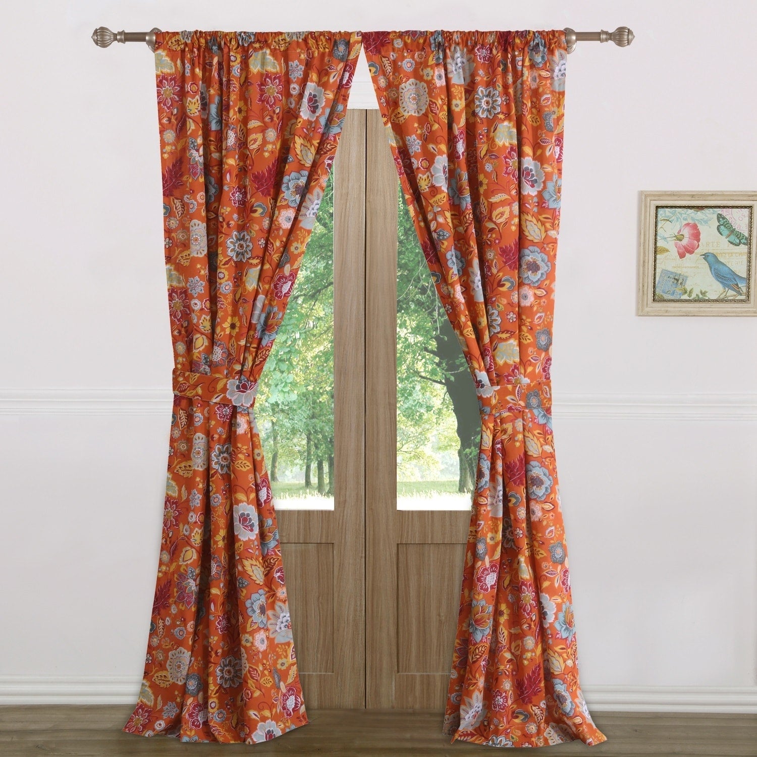 Bring a touch of nature to your space with the Astoria curtain panel pair from Greenland Home Fashions. The beautiful floral print and a choice of white or spice colors provide an instant pop of interest. These polyester panels are lined to filter light and keep your room cool, while the included tie-backs let you control how much sunlight you want. The 3-inch rod pockets make them easy to hang and maintain.