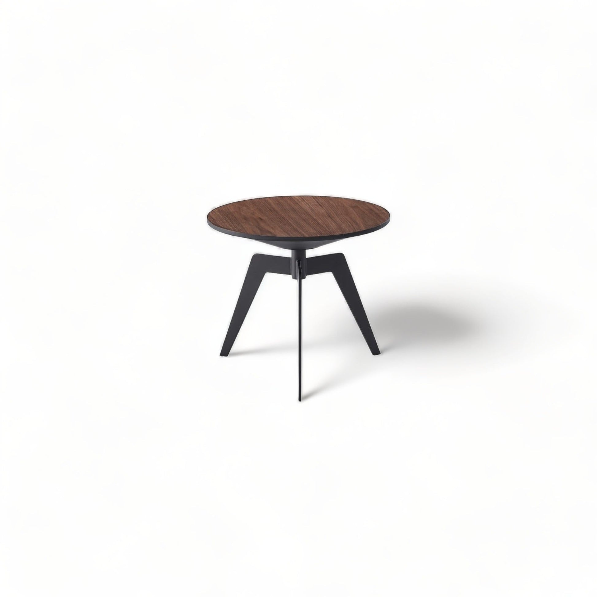 moderne et élégant fonctionnel et polyvalent plateau en bois de noyer base conique en métal avec revêtement en poudre noire |