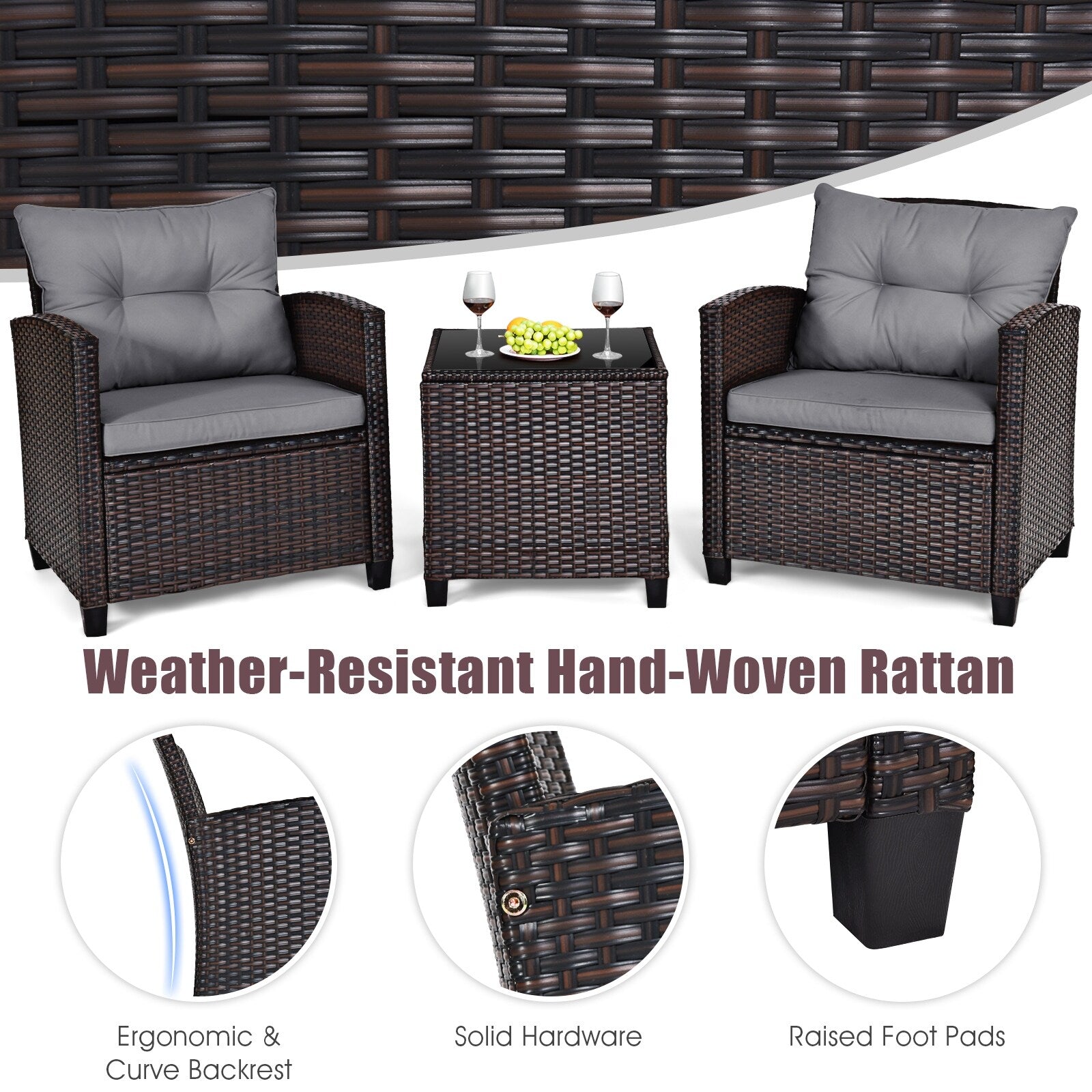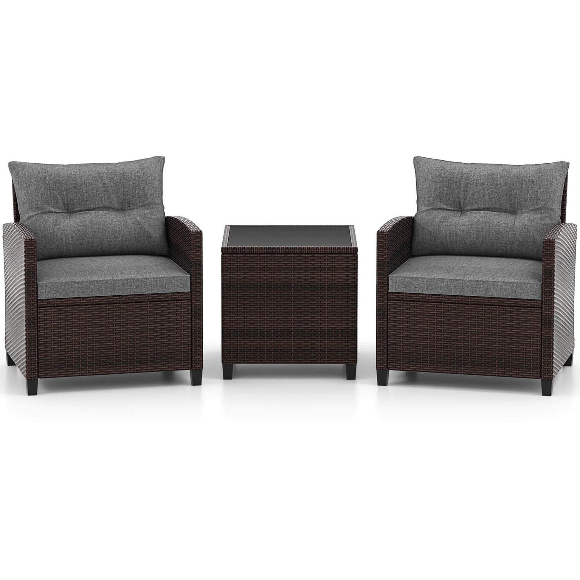 Gymax Set of 3 Rattan Furniture Set Patio Cushioned Conversation Set