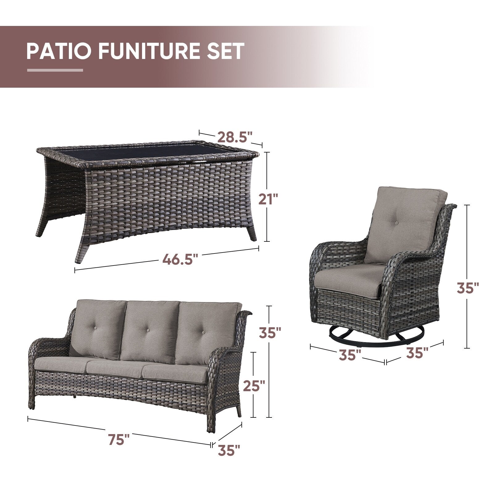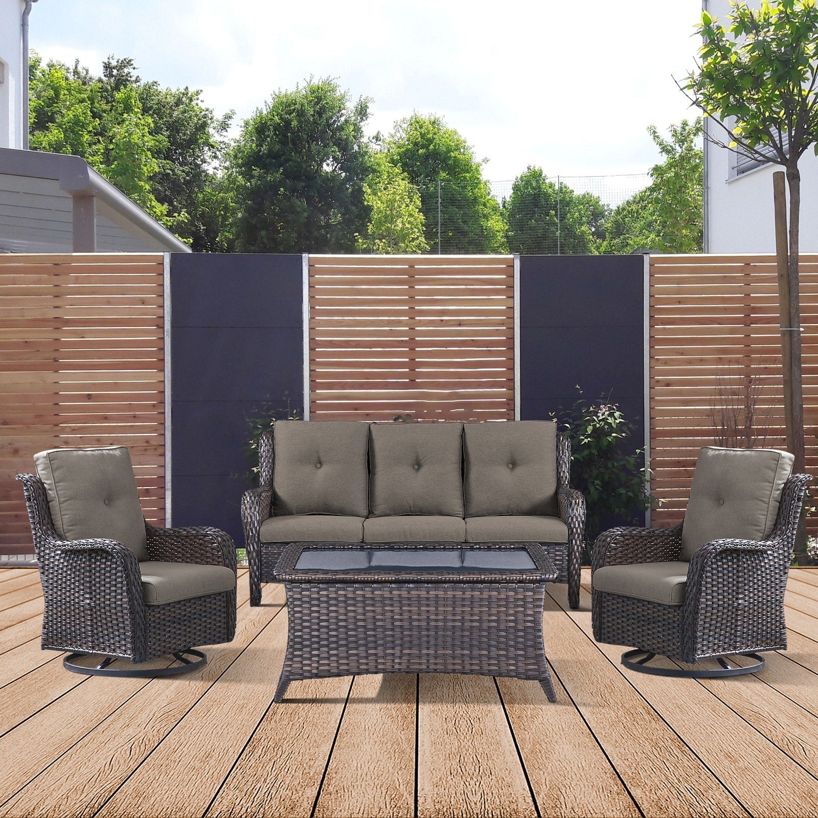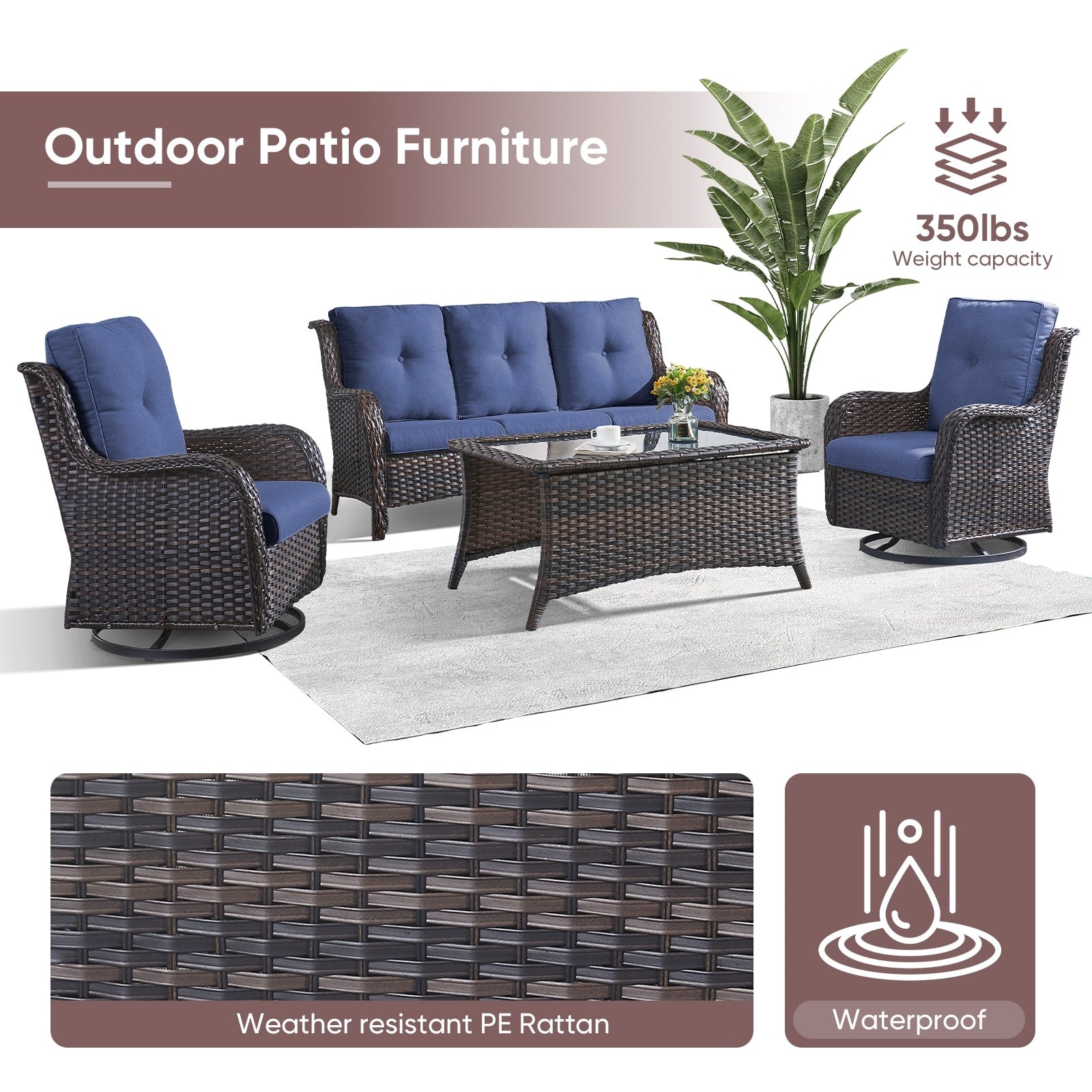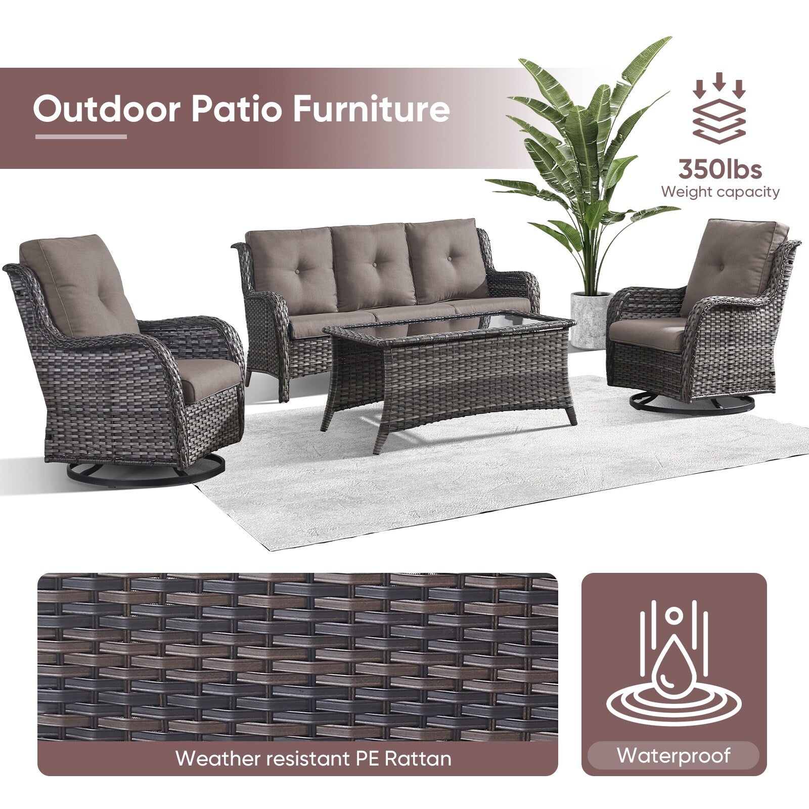 Gymojoy 4-Piece Patio Sofa with Swivel Glider Chair Set