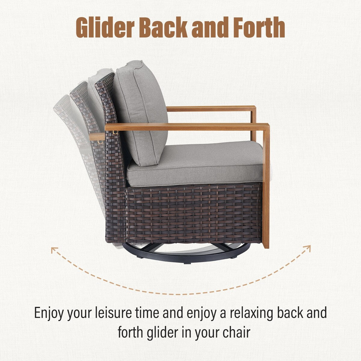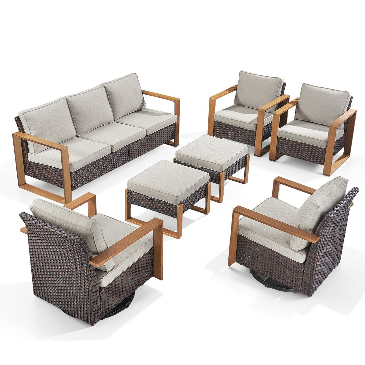 Gymojoy Outdoor Swivel Chair with Sofa, Club Chair and Ottomans - Brown