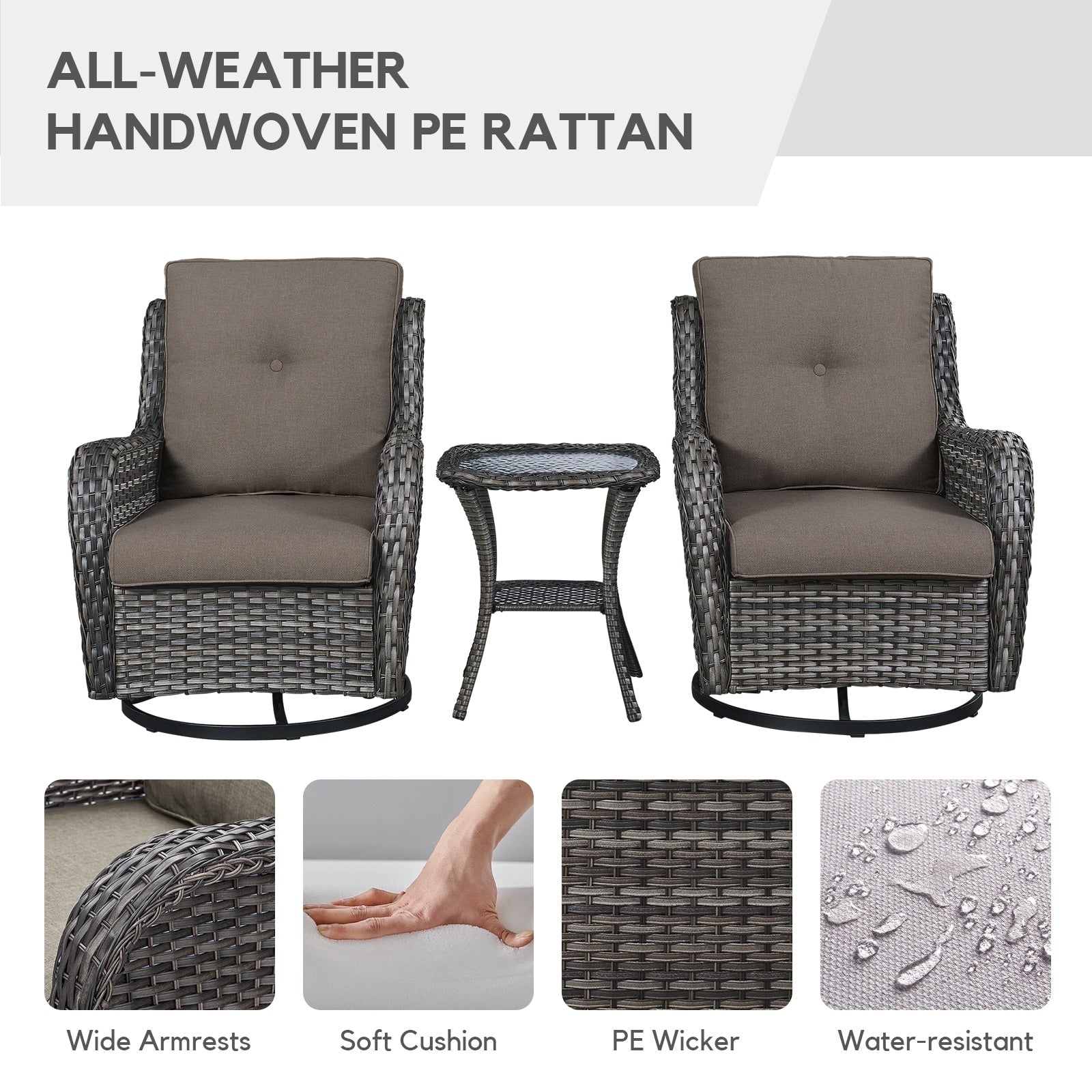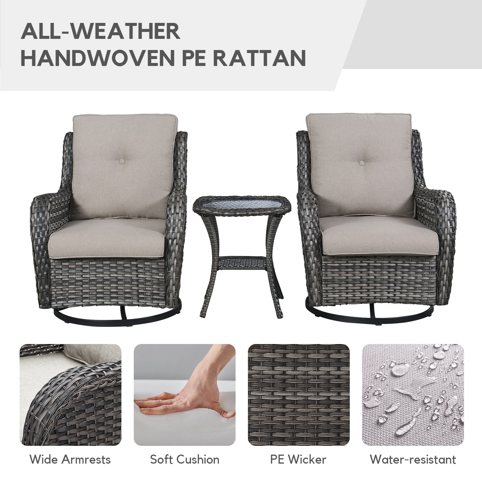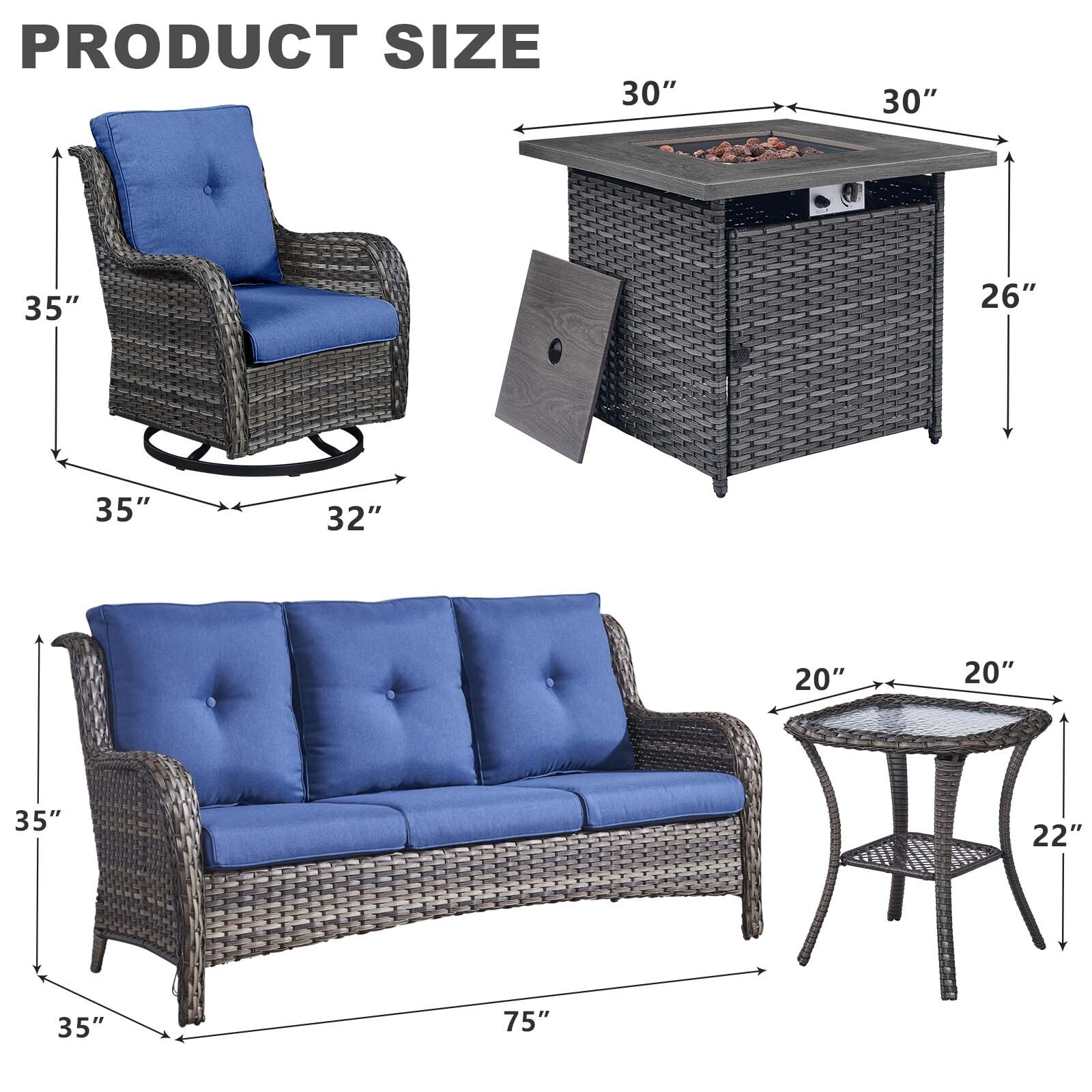 Gymojoy Outdoor Wicker 3-Seat Sofa with Fire Pit Table Swivel Chiar Table