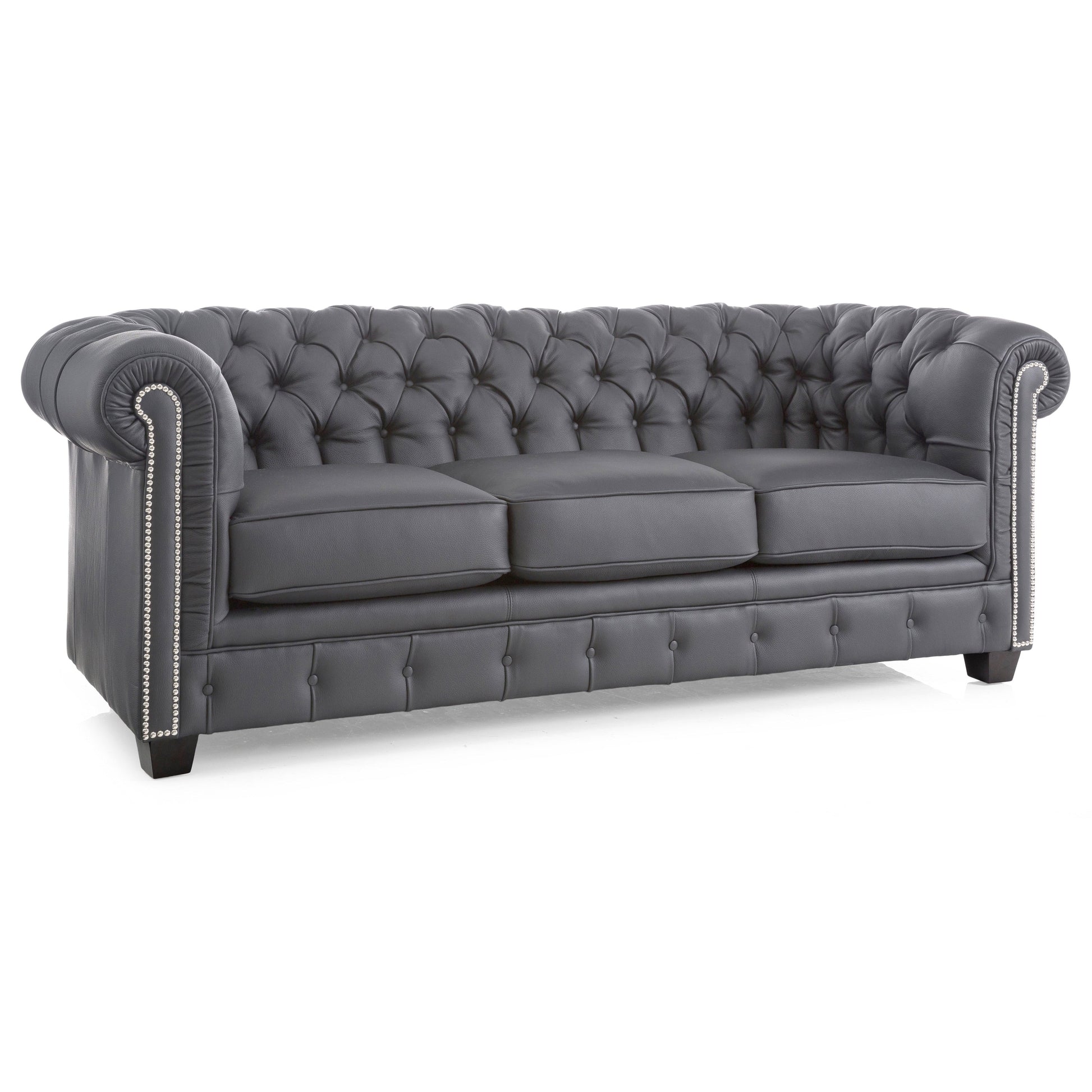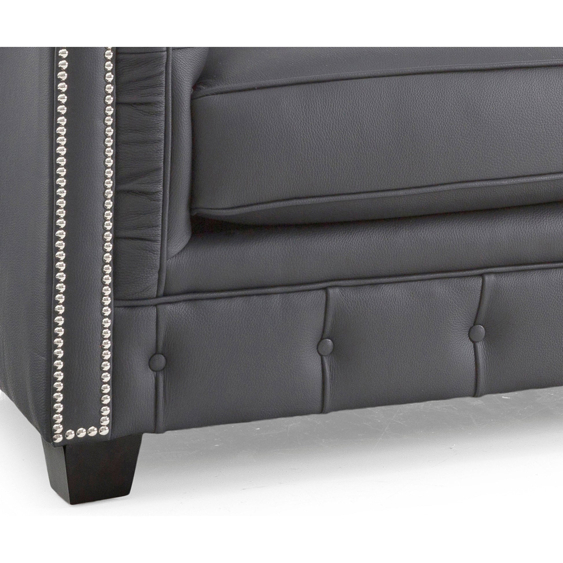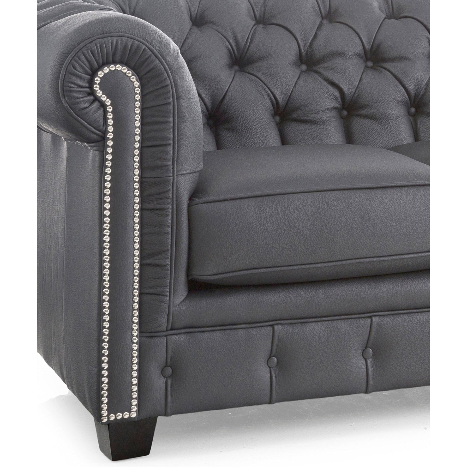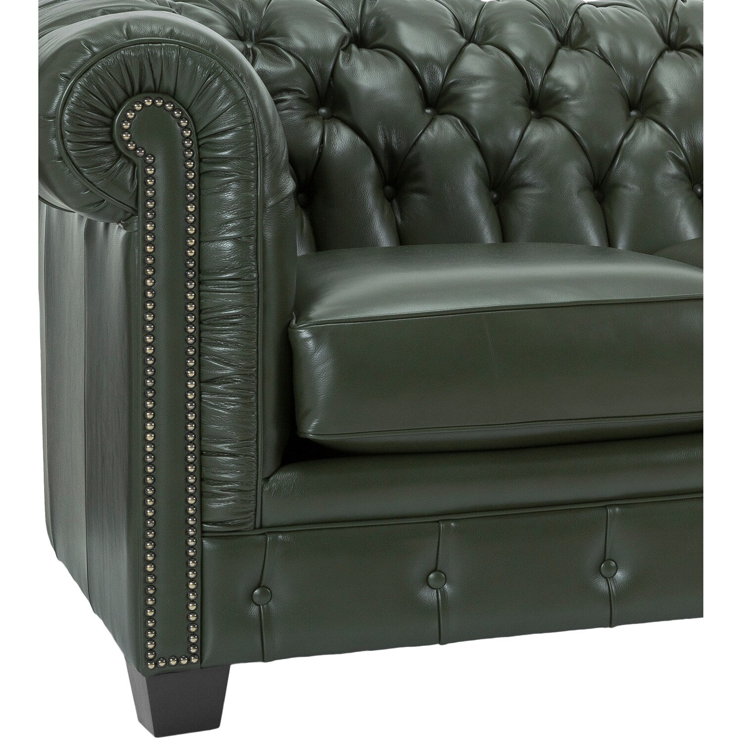 Upgrade your living space with the Hancock Tufted Top Grain Italian Leather Chesterfield Sofa. Upholstered with top grain, aniline-dyed, Italian leather, this sofa boasts a luxurious appearance. Its kiln-dried hardwood frame and sinuous 9-gauge steel springs provide durability and comfort. With a tufted back and individually applied studs on the arm facings, this sofa adds a touch of homey charm to any room. The set includes one sofa with removable seat cushions featuring welt detailing. Choose from a variety of color options to match your style.