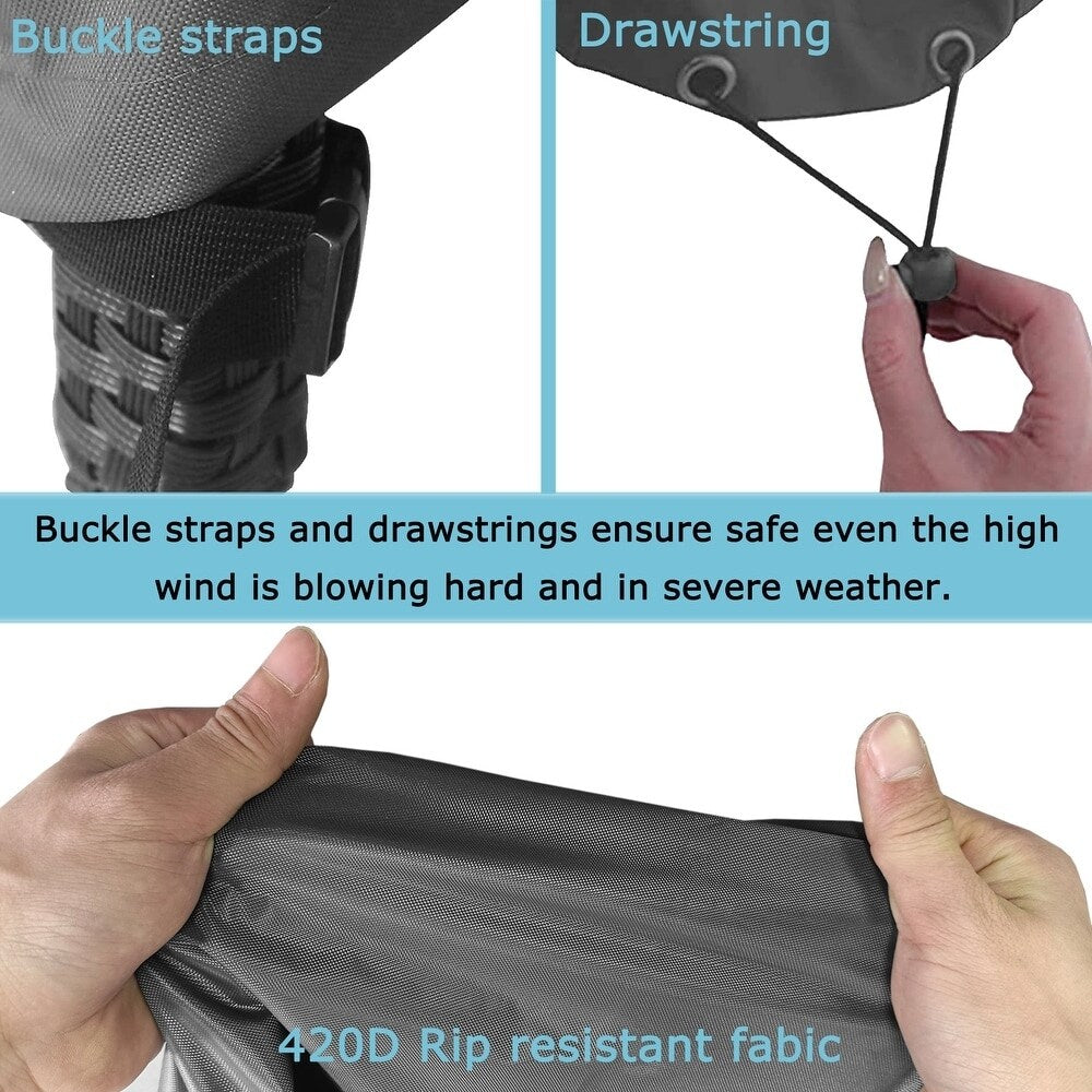- Windproof Security: Comes with 4 buckle straps and adjustable hem cord to ensure the cover stays put even during gusty days.