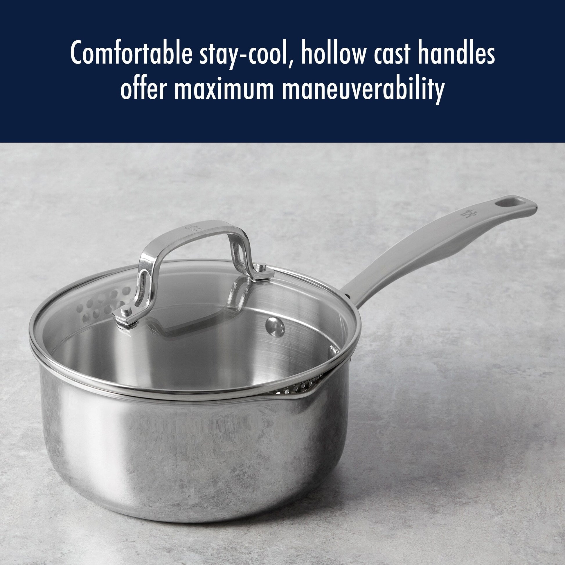 The tempered glass lids lock in moisture and let you monitor the cooking process while the flared pouring rim offers seamless, mess-free pouring. Thanks to the stay-cool, hollow cast handles with hanging loop, you can easily store your cookware. Clad H3 is compatible with all stovetops, including induction, and is oven safe to 500°F. Dishwasher safe, HENCKELS Clad H3 is also simple to clean, making this easy-to-use cookware a pleasure to cook with.