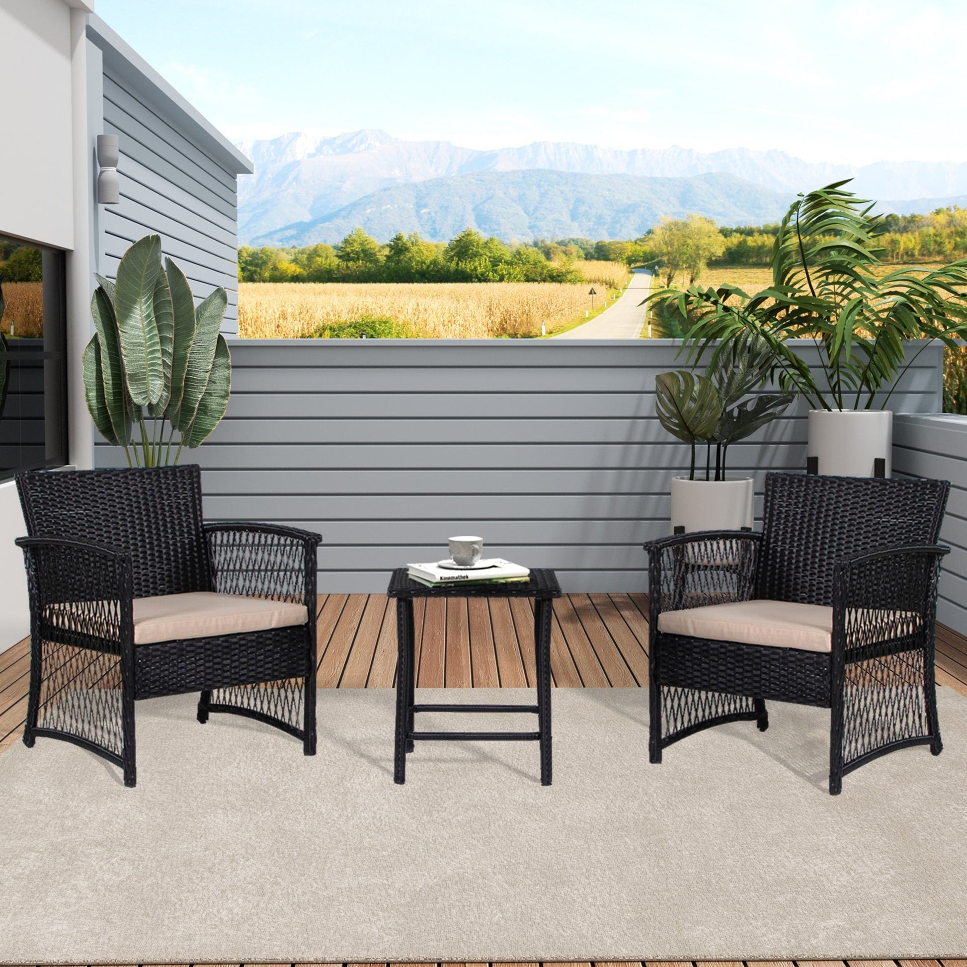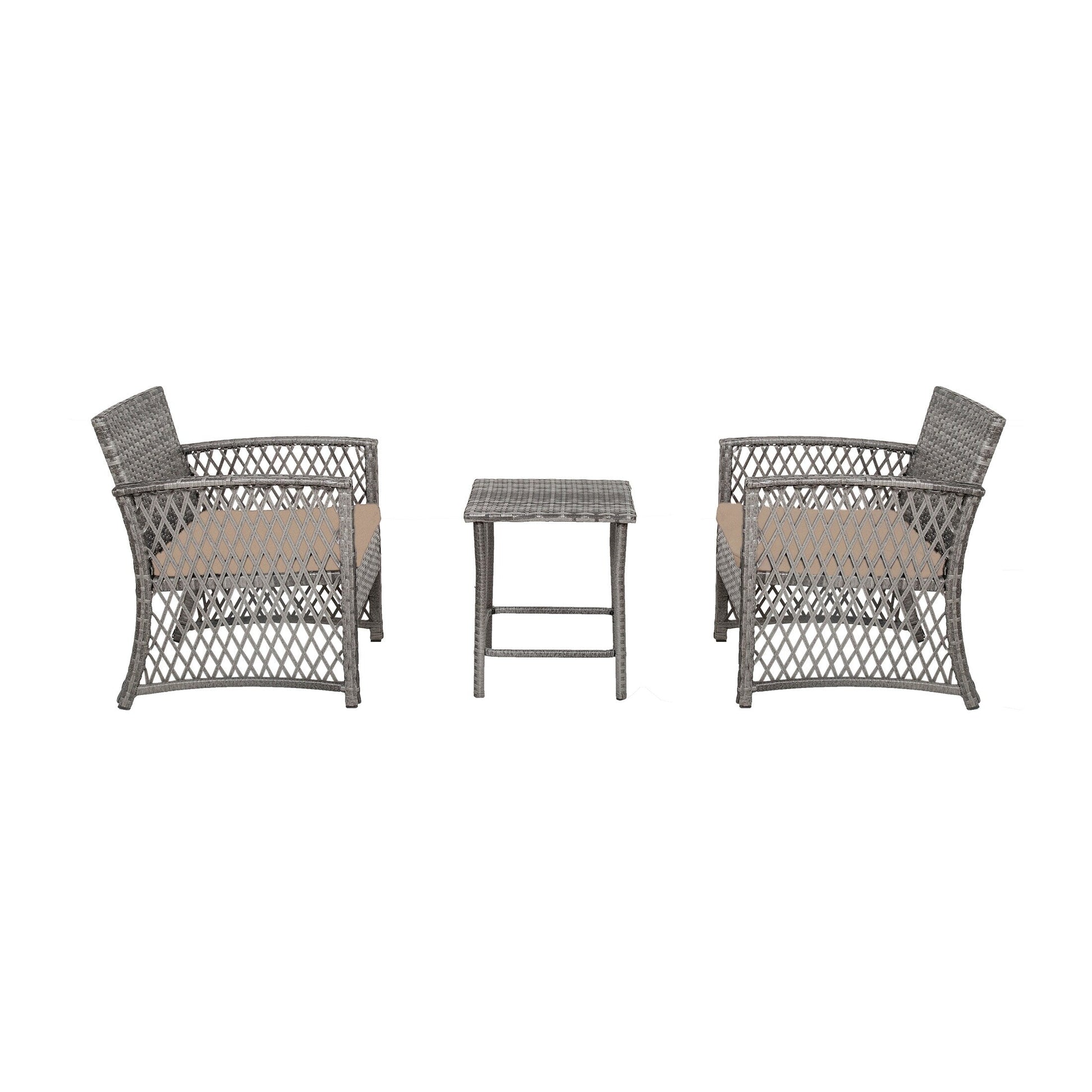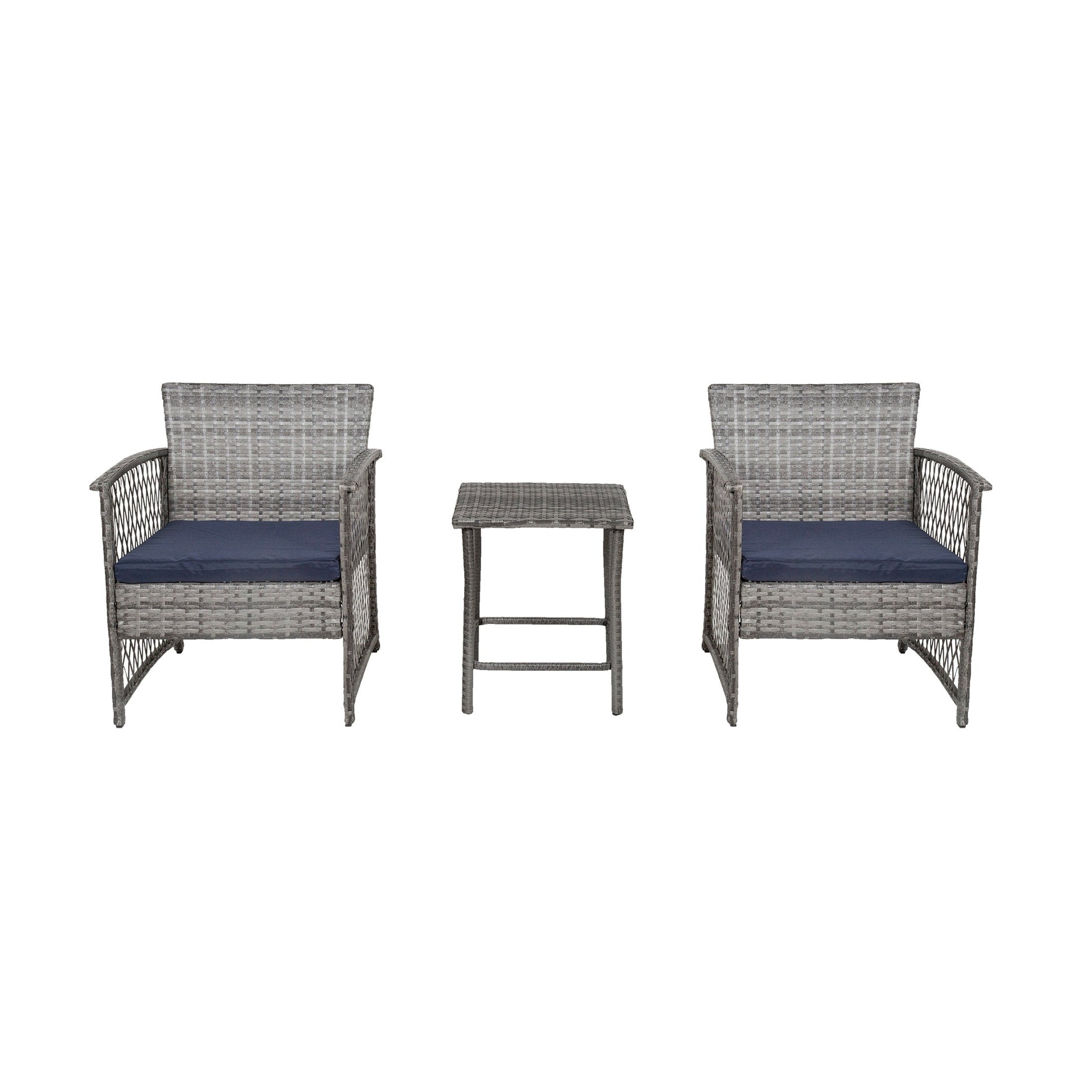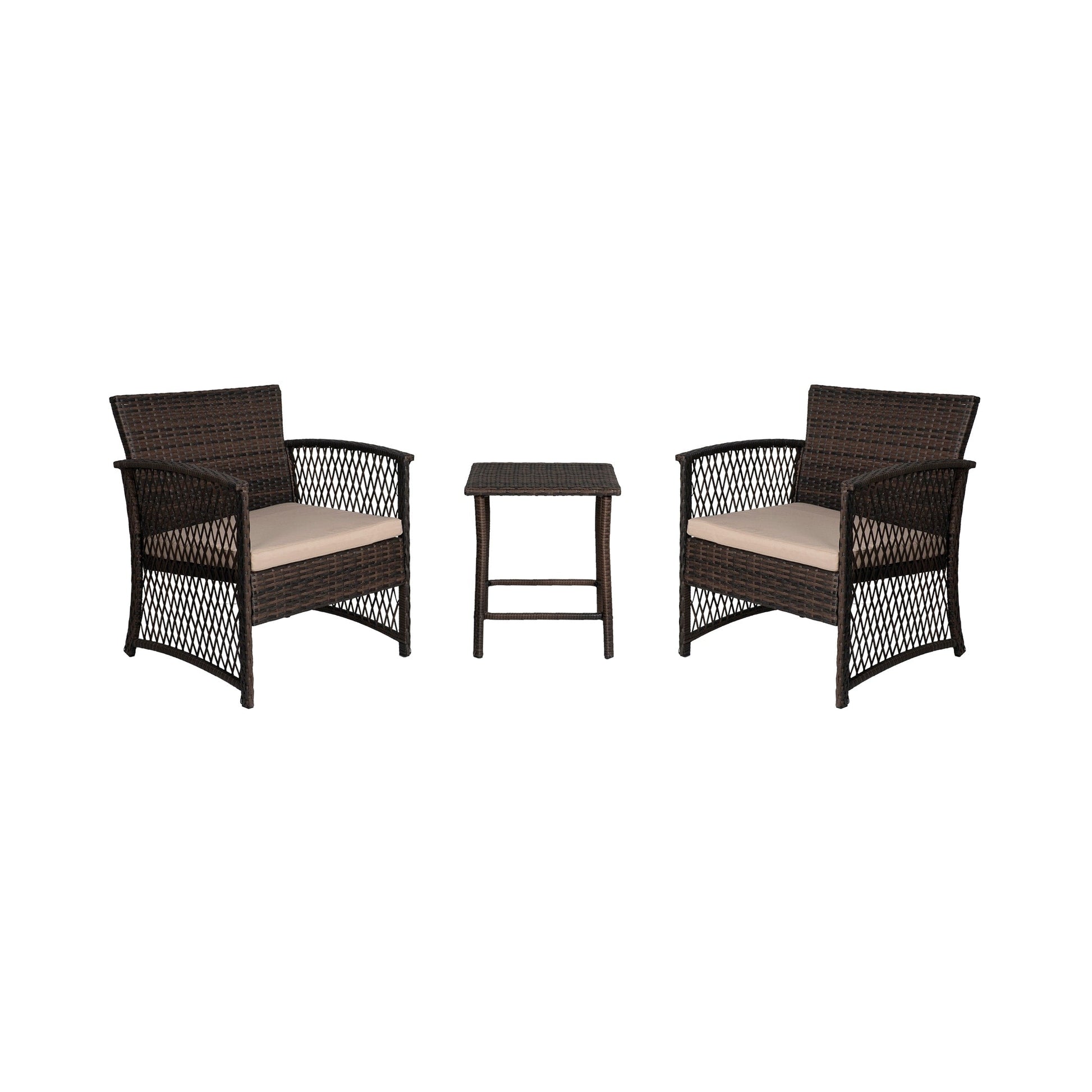 Create a cozy and stylish outdoor living space with this 3-piece wicker bistro patio set. The breathable wicker seating and matching table offer both comfort and style, while the durable iron frame provides reliable support. Perfect for relaxing with loved ones, this bistro set is a must-have addition to any patio.