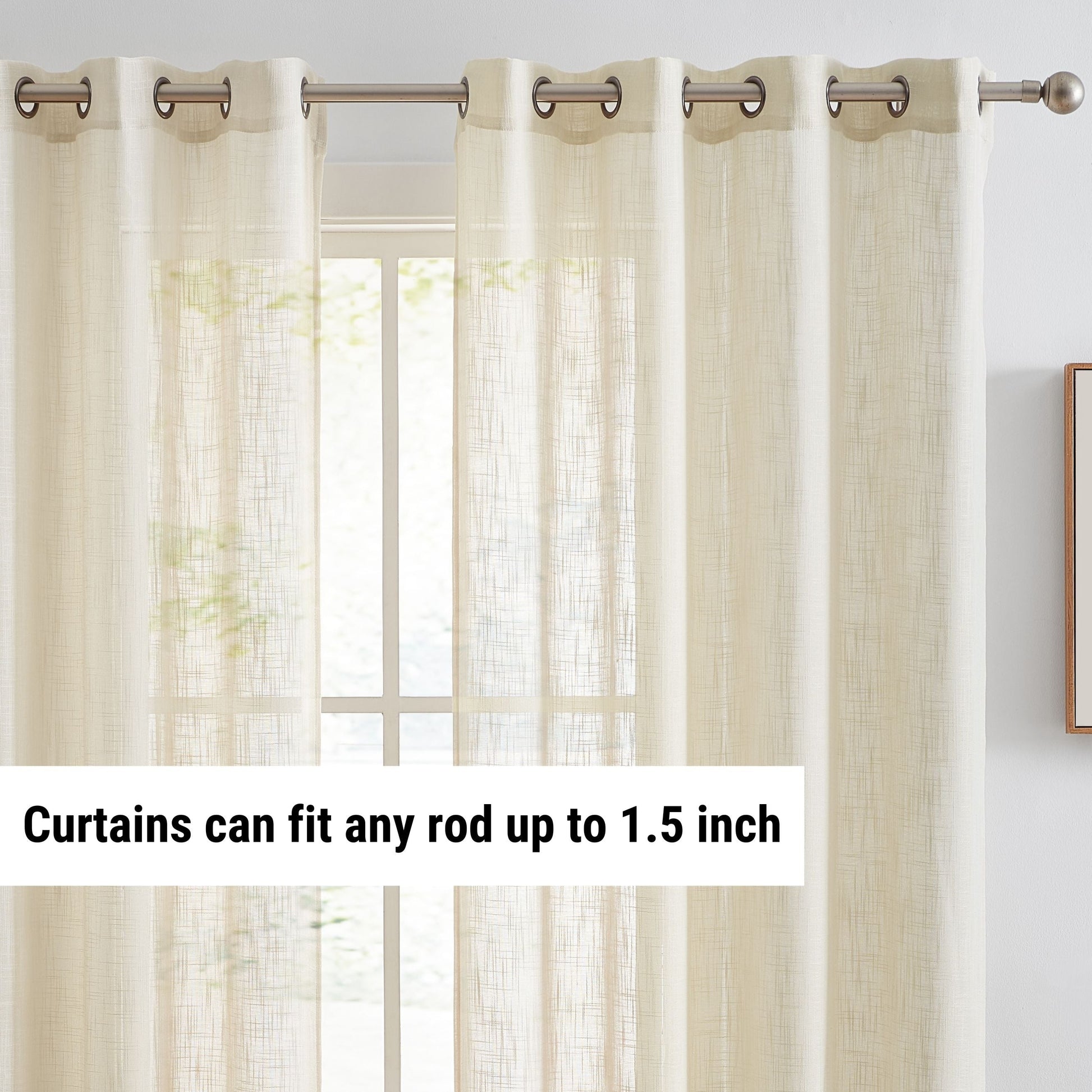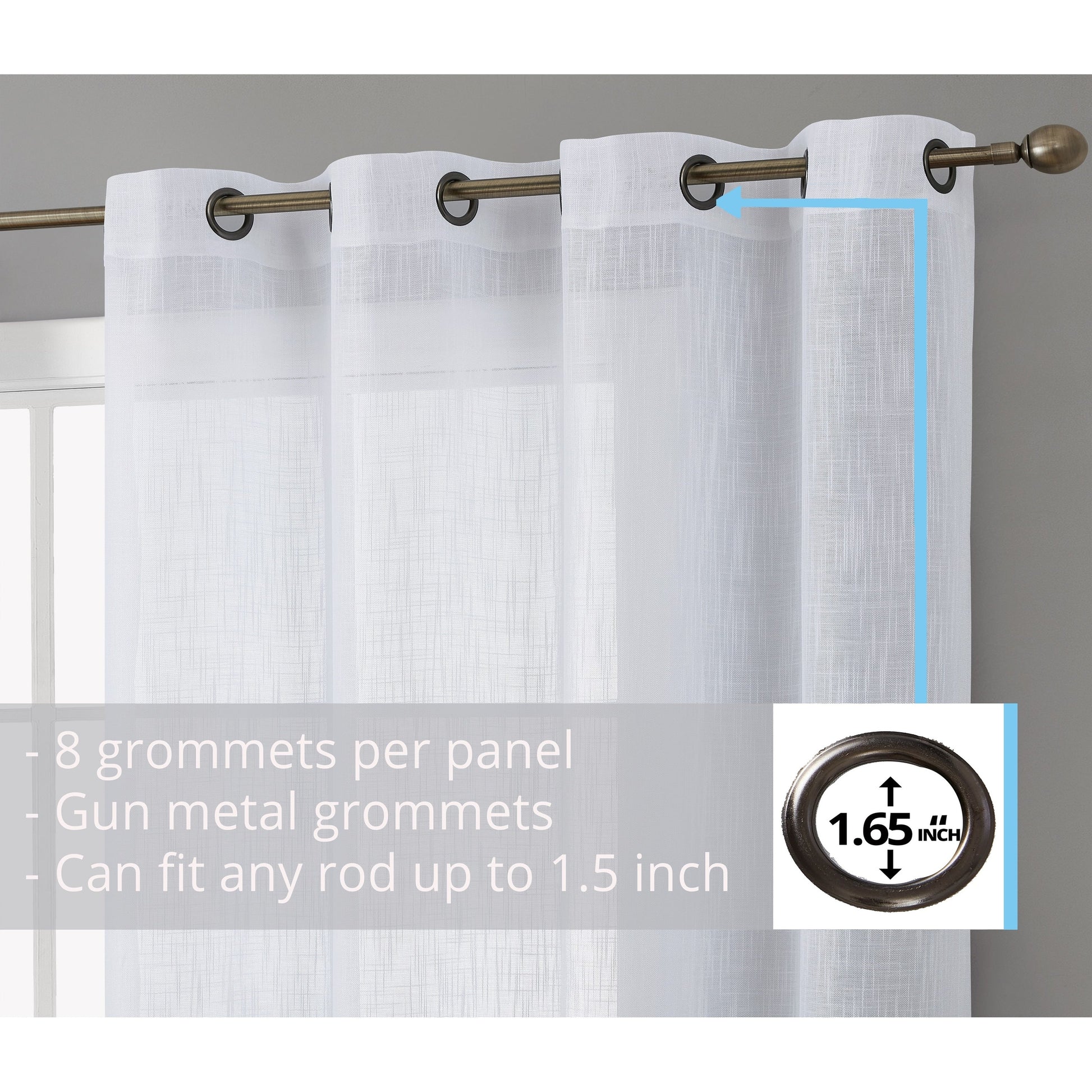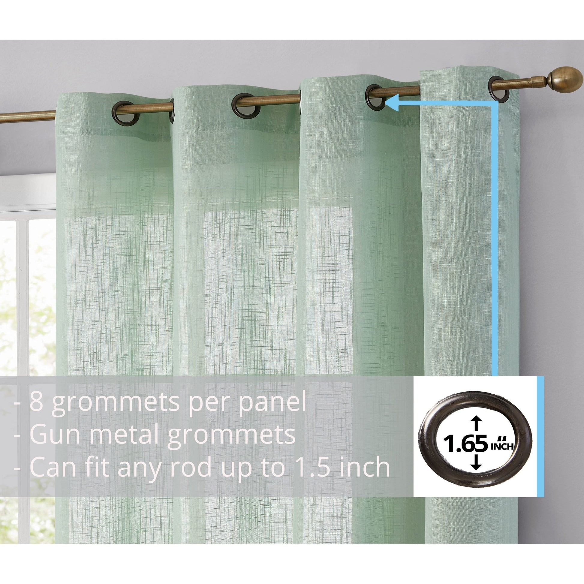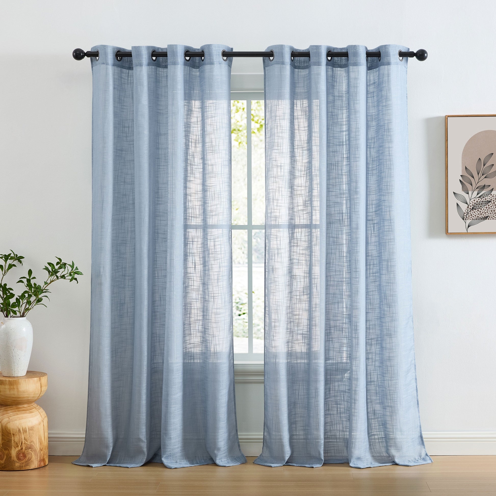 HLC.me Abbey Faux Linen Textured Semi Sheer Privacy Light Filtering Transparent Window Grommet Curtain Panels, Pair