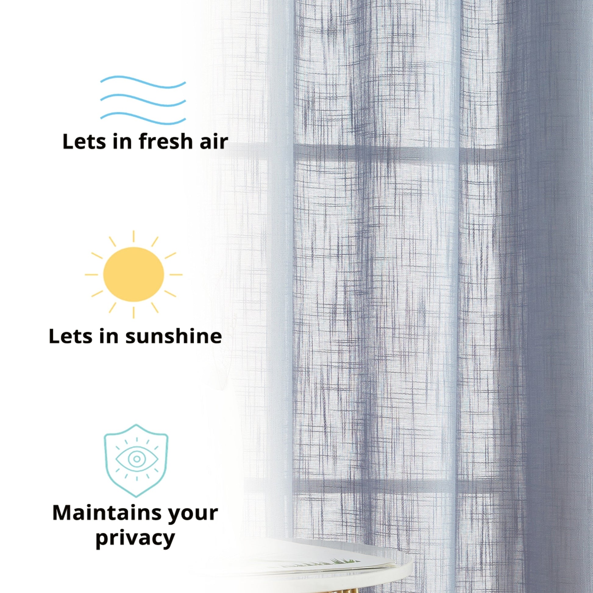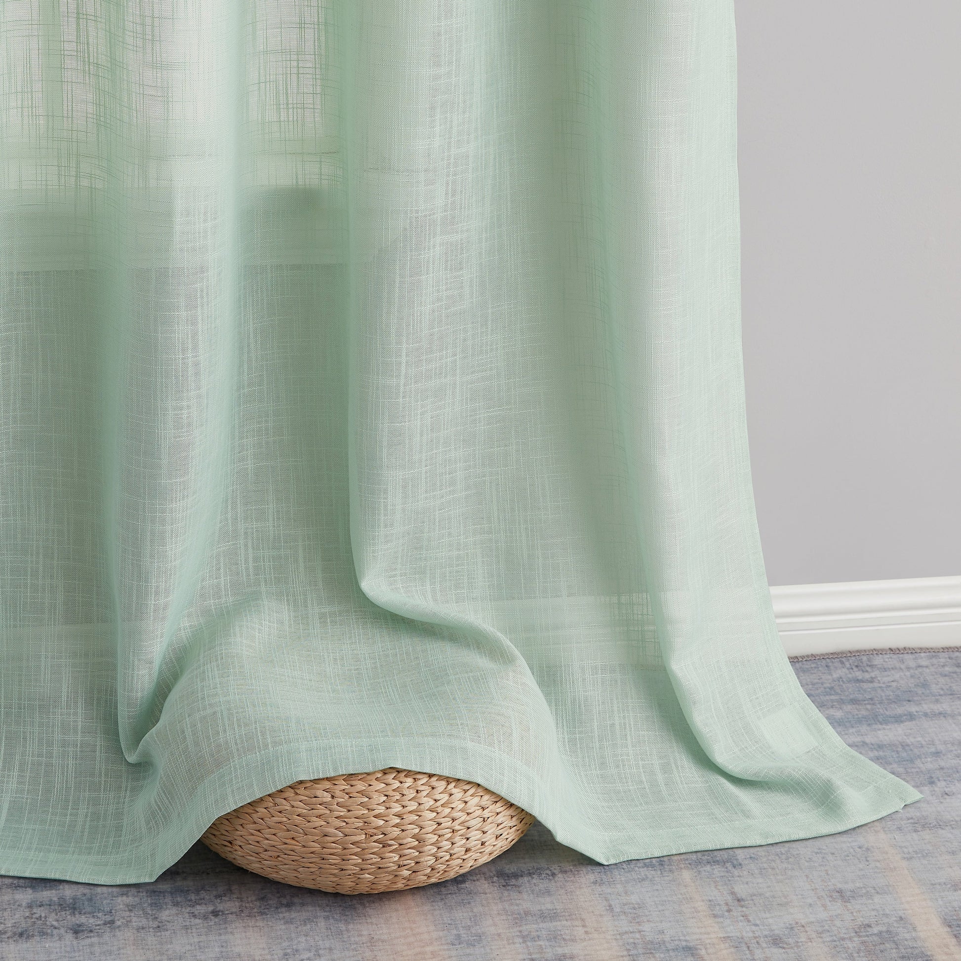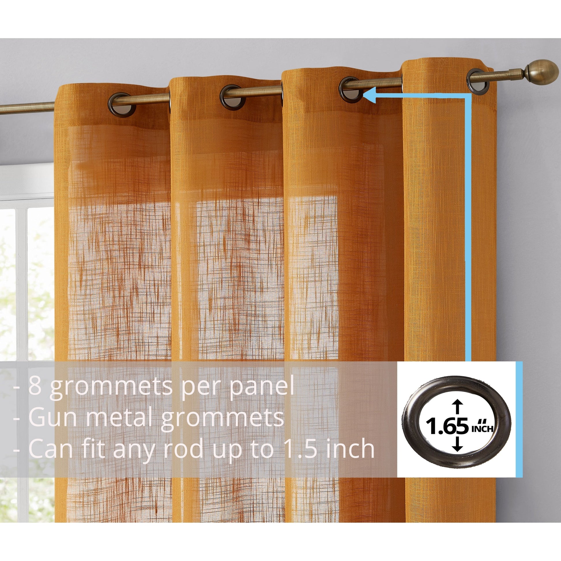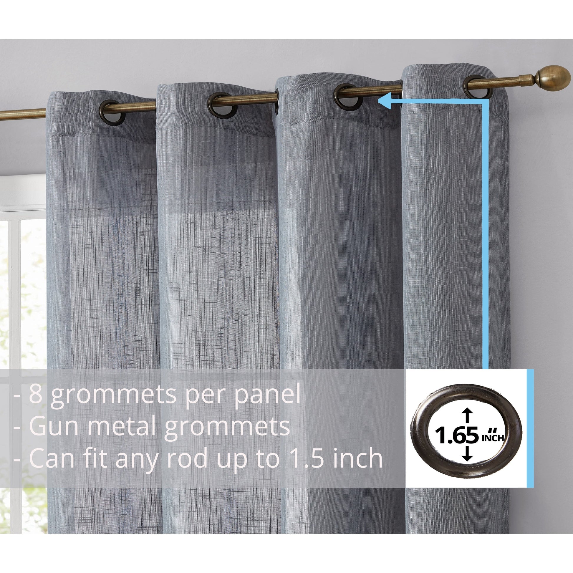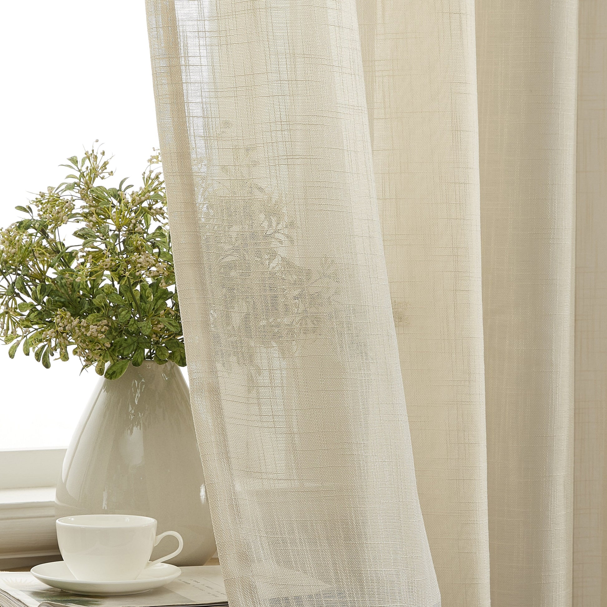 HLC.me Abbey Faux Linen Textured Semi Sheer Privacy Light Filtering Transparent Window Grommet Curtain Panels, Pair