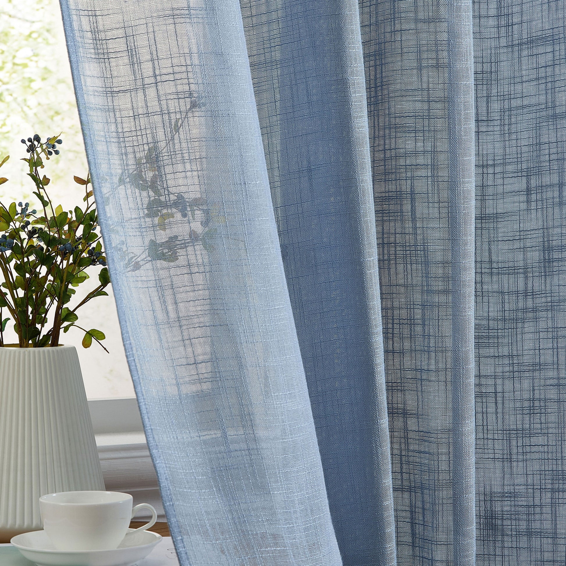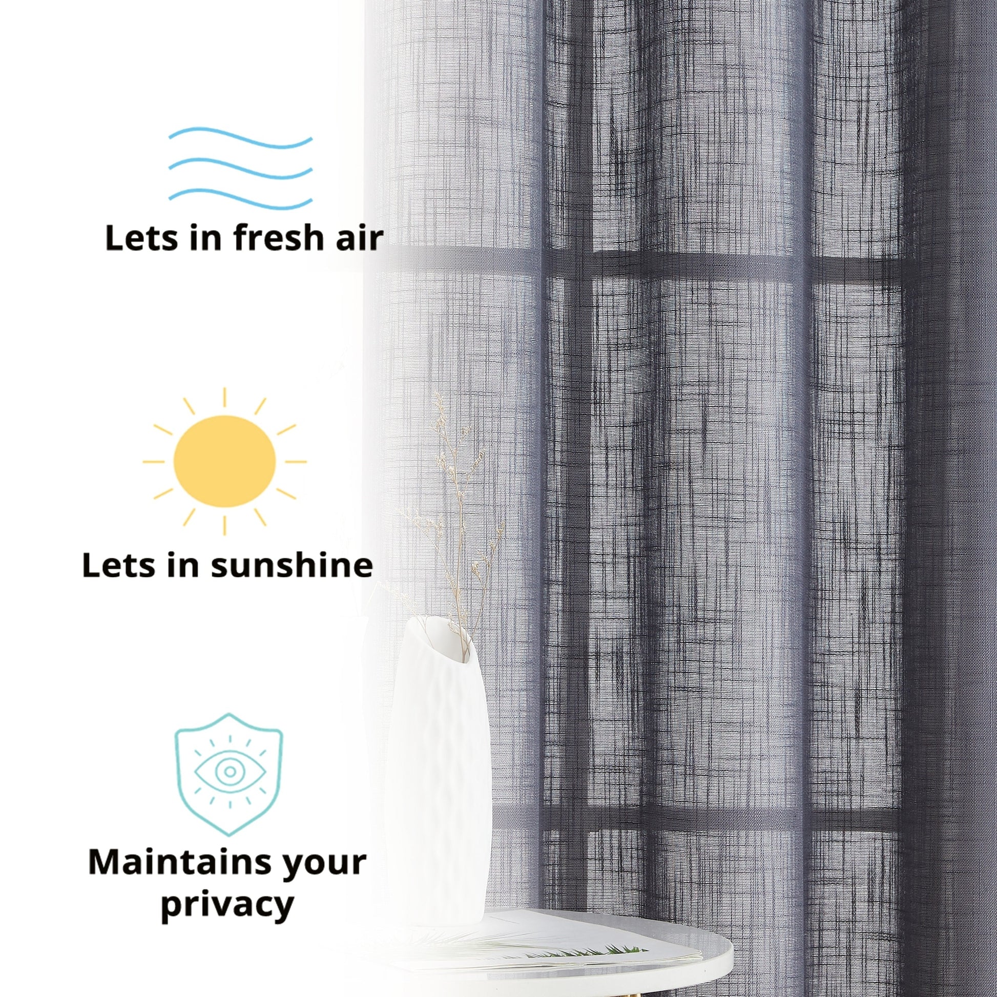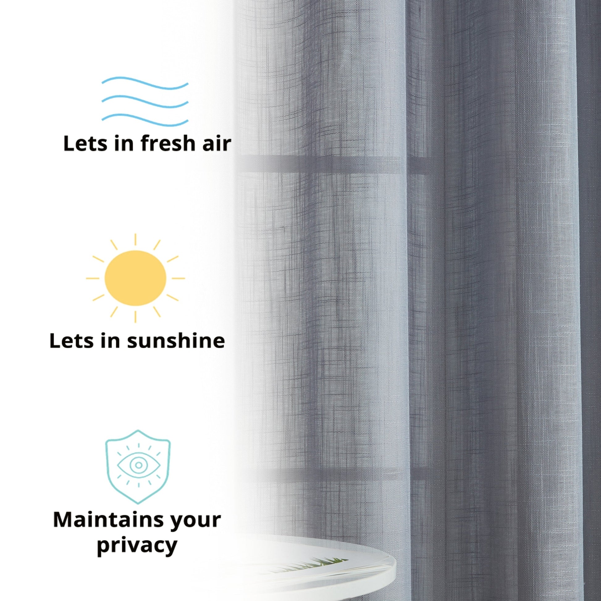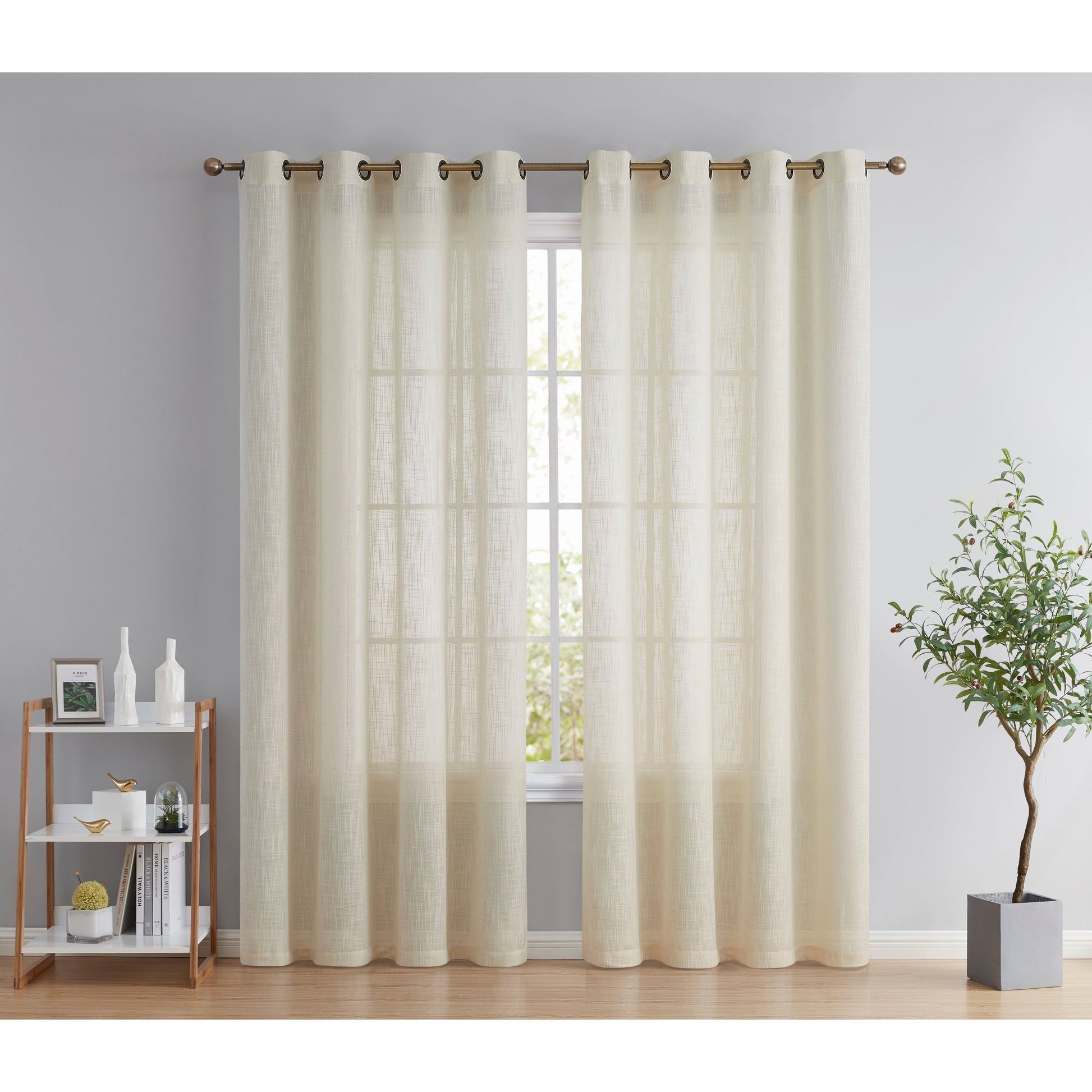 HLC.me Abbey Faux Linen Textured Semi Sheer Privacy Light Filtering Transparent Window Grommet Curtain Panels, Pair