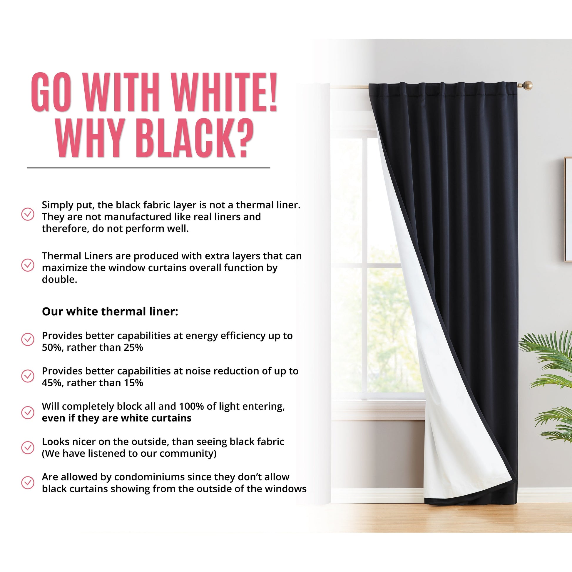 Looking to add a dash of elegance to your living spaces while improving comfort? With these extreme Blackout Curtains from HLC.me, the beauty is much more than skin deep. Beyond the stunning drapery look and array of fashionable colors, our thermal, insulated curtain panels block out disruptive light and help maintain a comfortable temperature in your home.