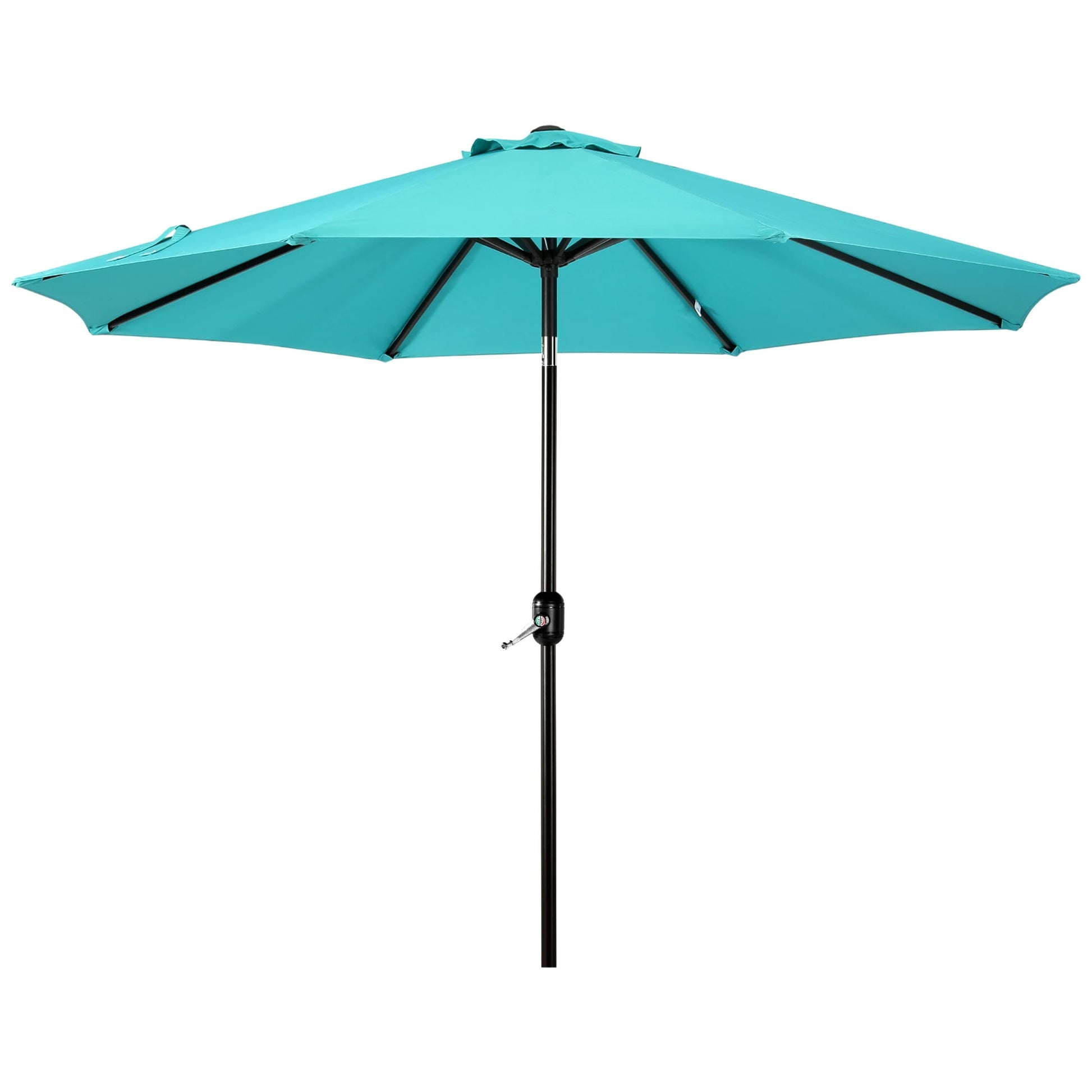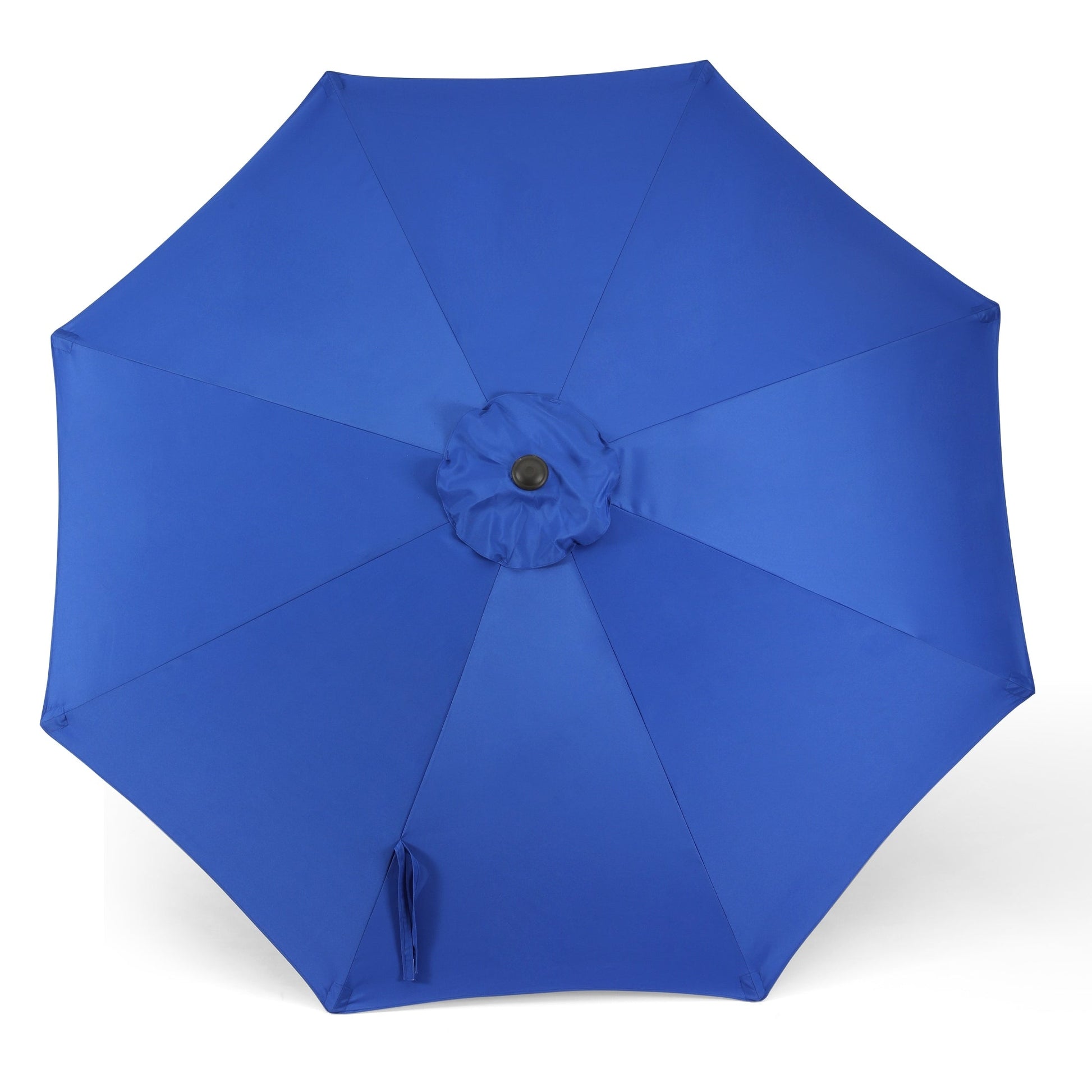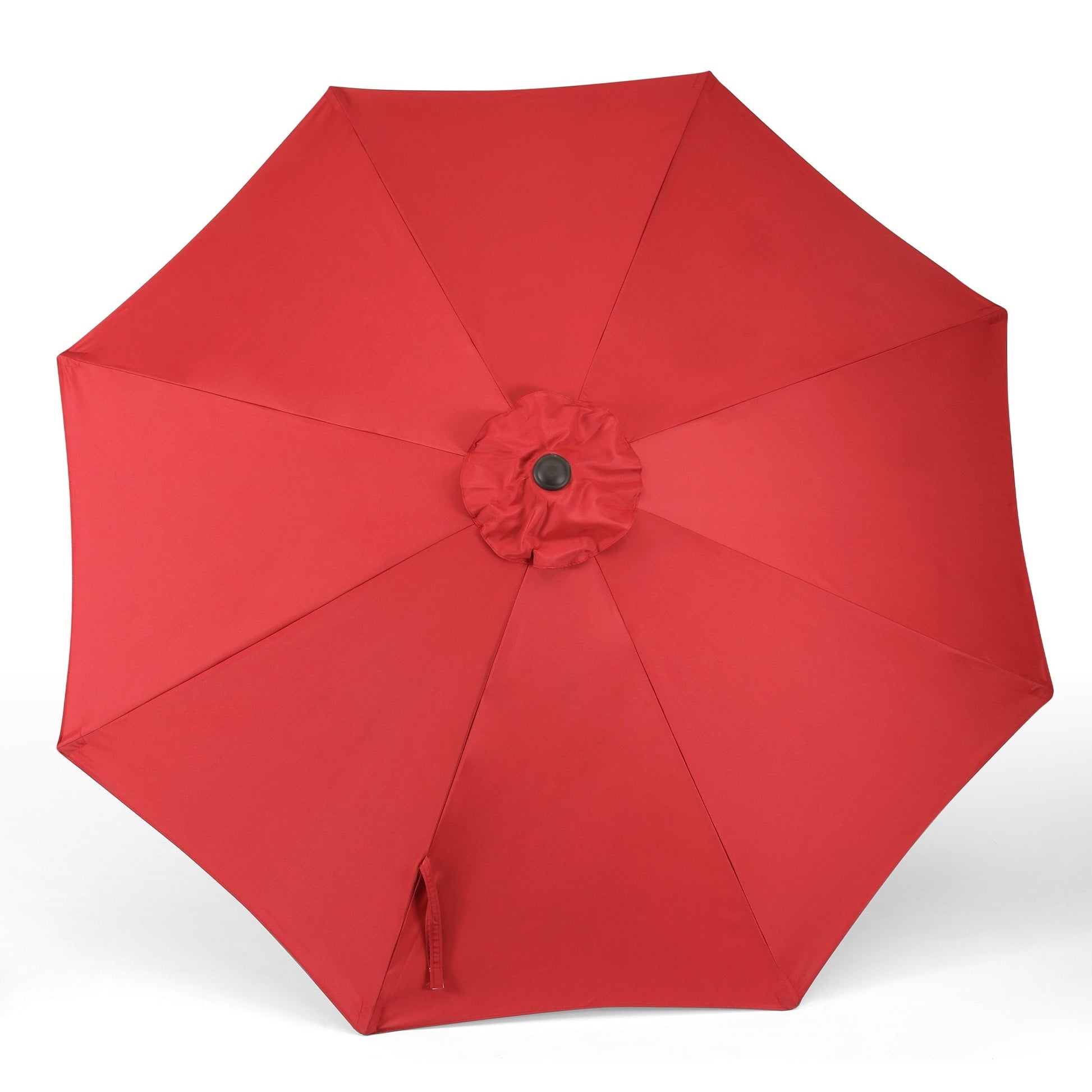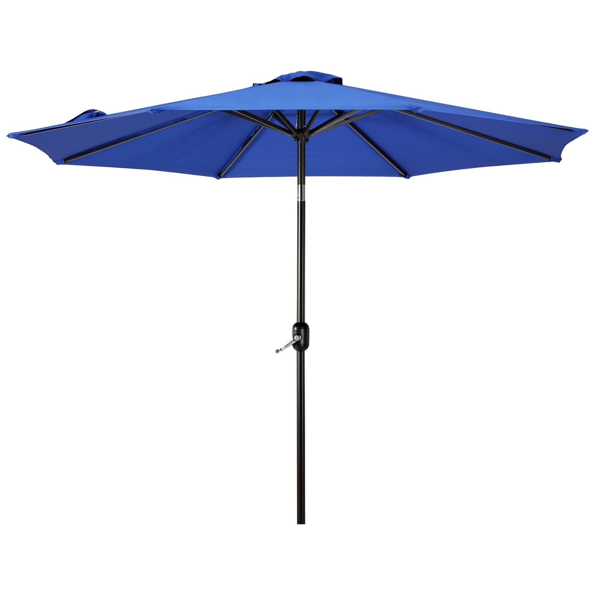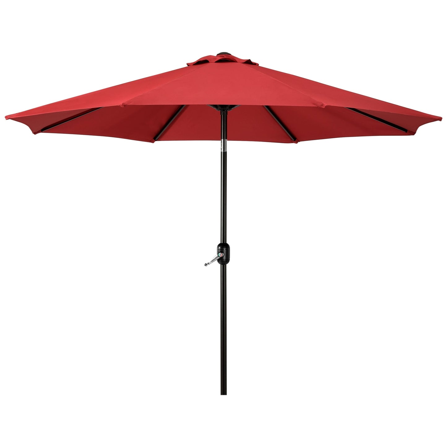Enjoy the sunshine and scenery while keeping cool under this 9-foot steel outdoor patio table umbrella. Designed with style and durability in mind, this piece is built with a rust- and water-resistant steel frame and polyester fabric that blocks up to 95% of UV rays. The easy-to-crank lift mechanism allows for a simple open and close system when not in use. This 9-foot umbrella is perfect for your patio, garden table, outdoor dining table, pool, or lounge area. Available in multiple colors to fit your décor needs.