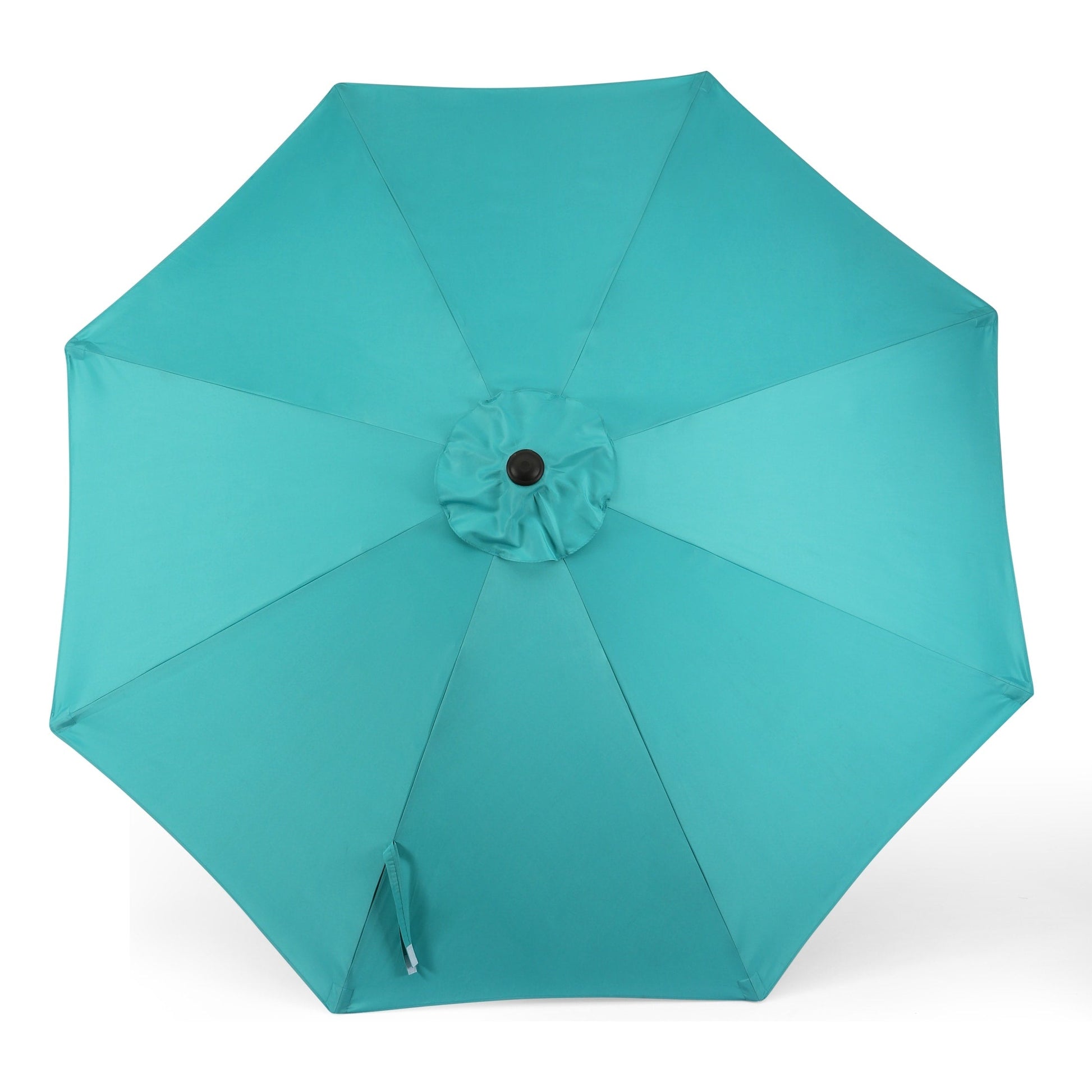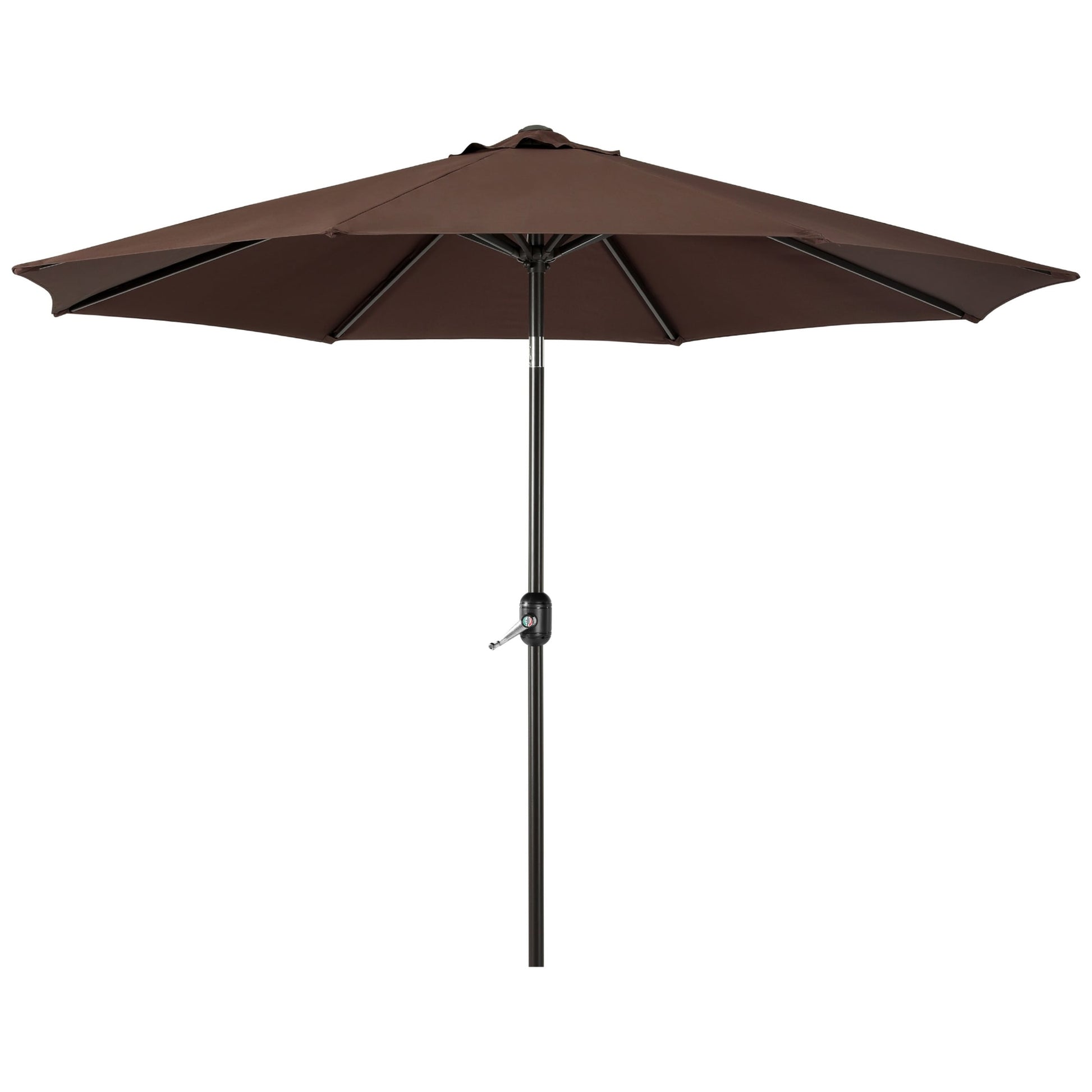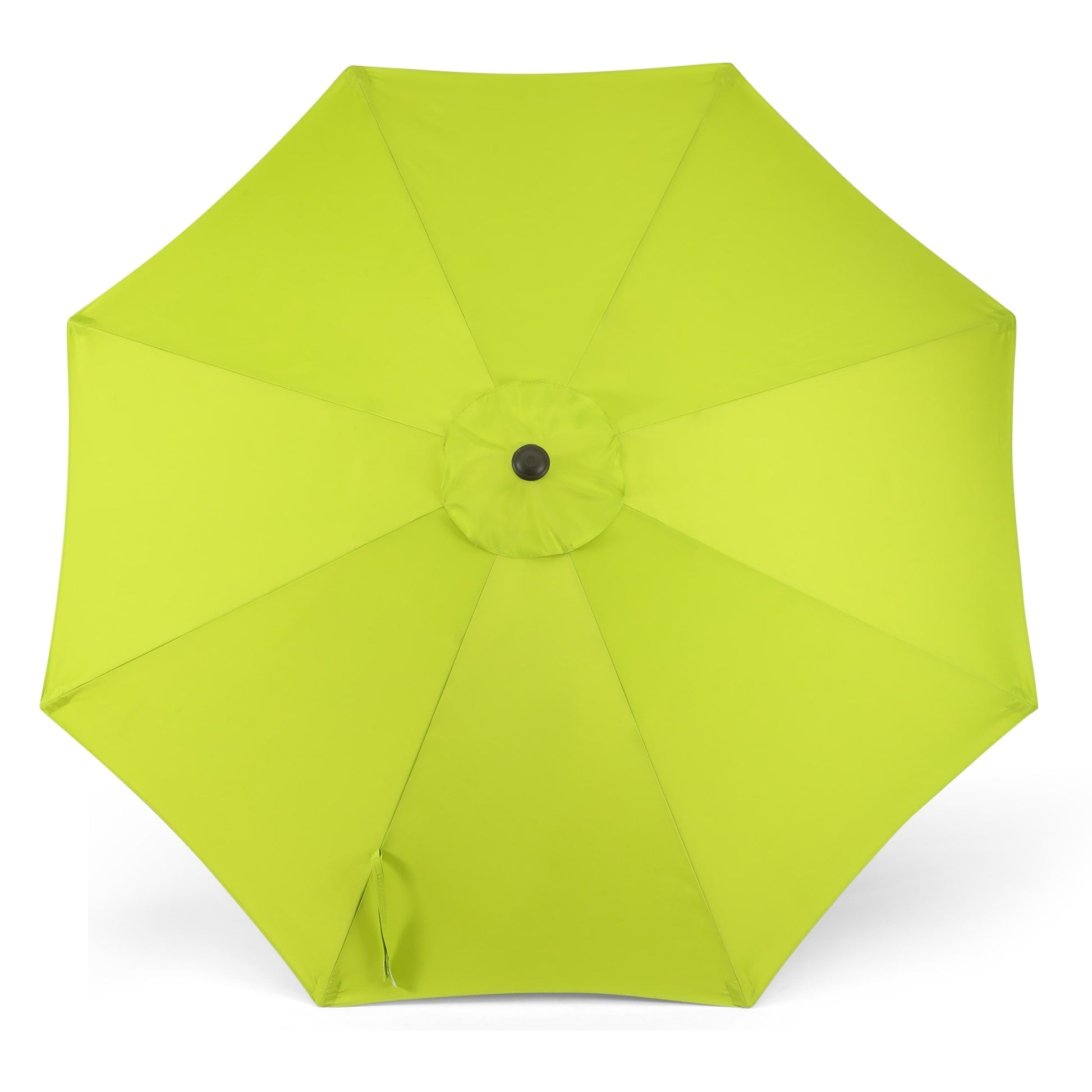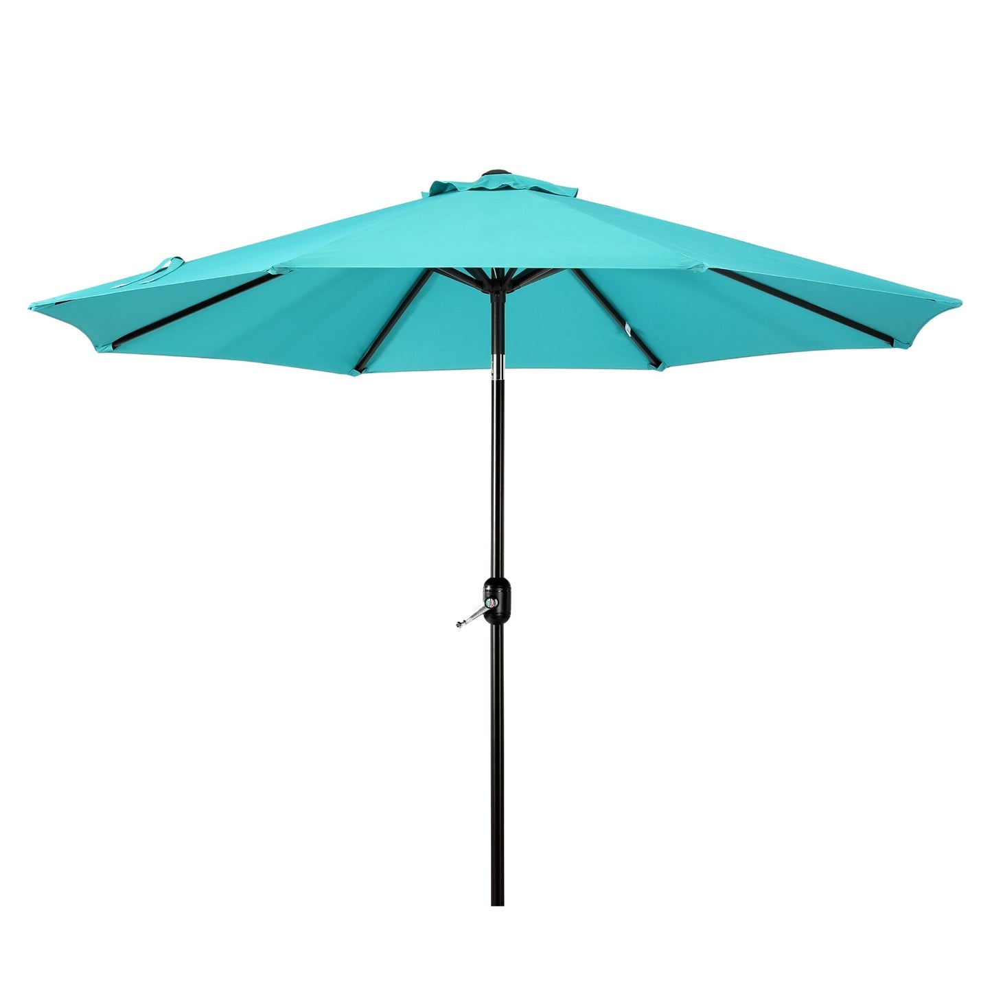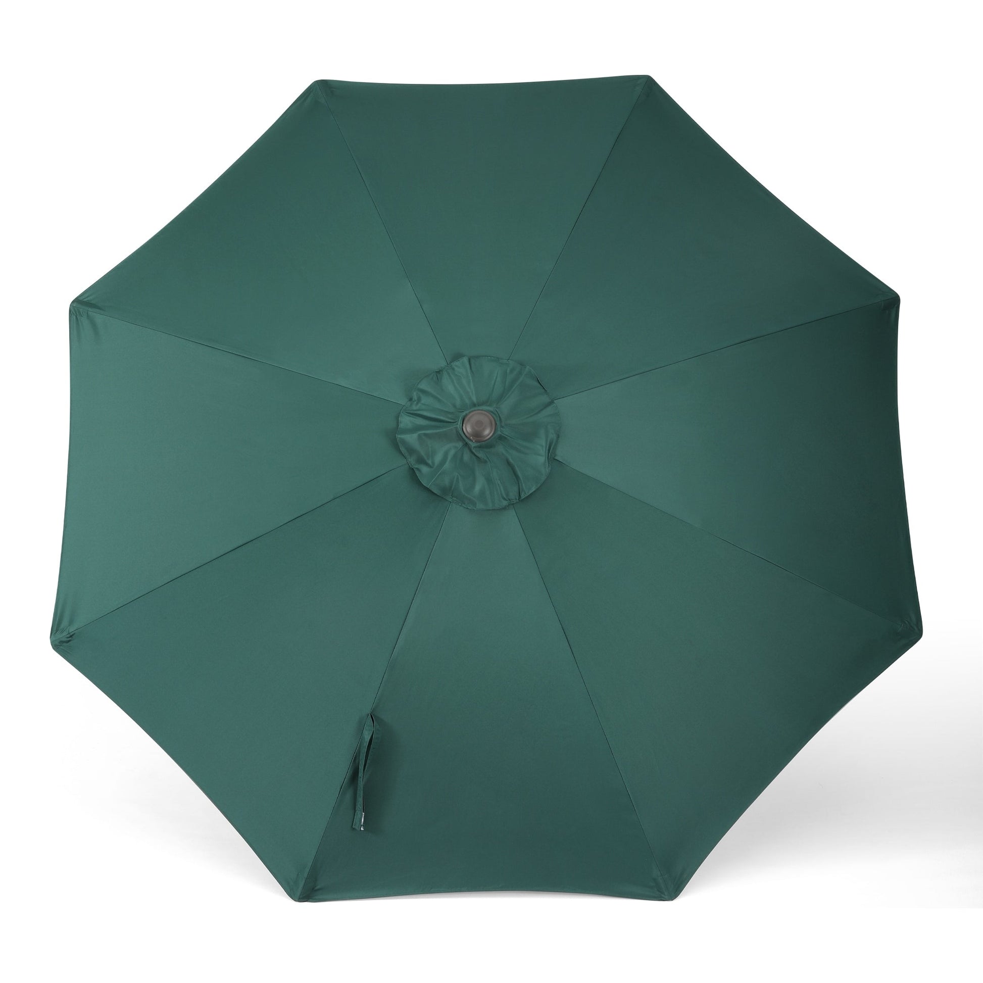 Enjoy the sunshine and scenery while keeping cool under this 9-foot steel outdoor patio table umbrella. Designed with style and durability in mind, this piece is built with a rust- and water-resistant steel frame and polyester fabric that blocks up to 95% of UV rays. The easy-to-crank lift mechanism allows for a simple open and close system when not in use. This 9-foot umbrella is perfect for your patio, garden table, outdoor dining table, pool, or lounge area. Available in multiple colors to fit your décor needs.