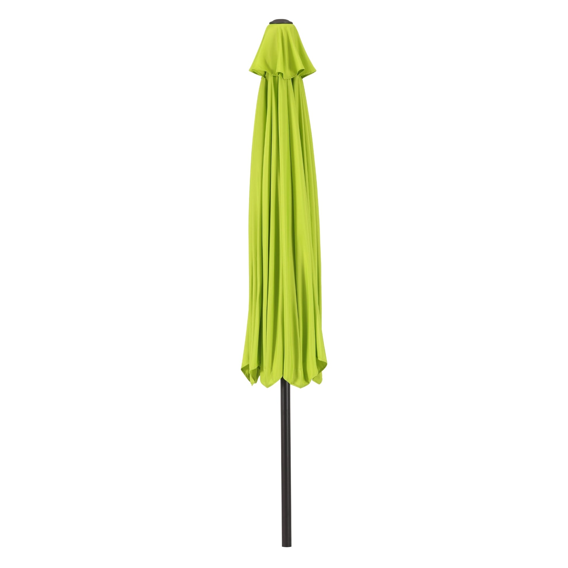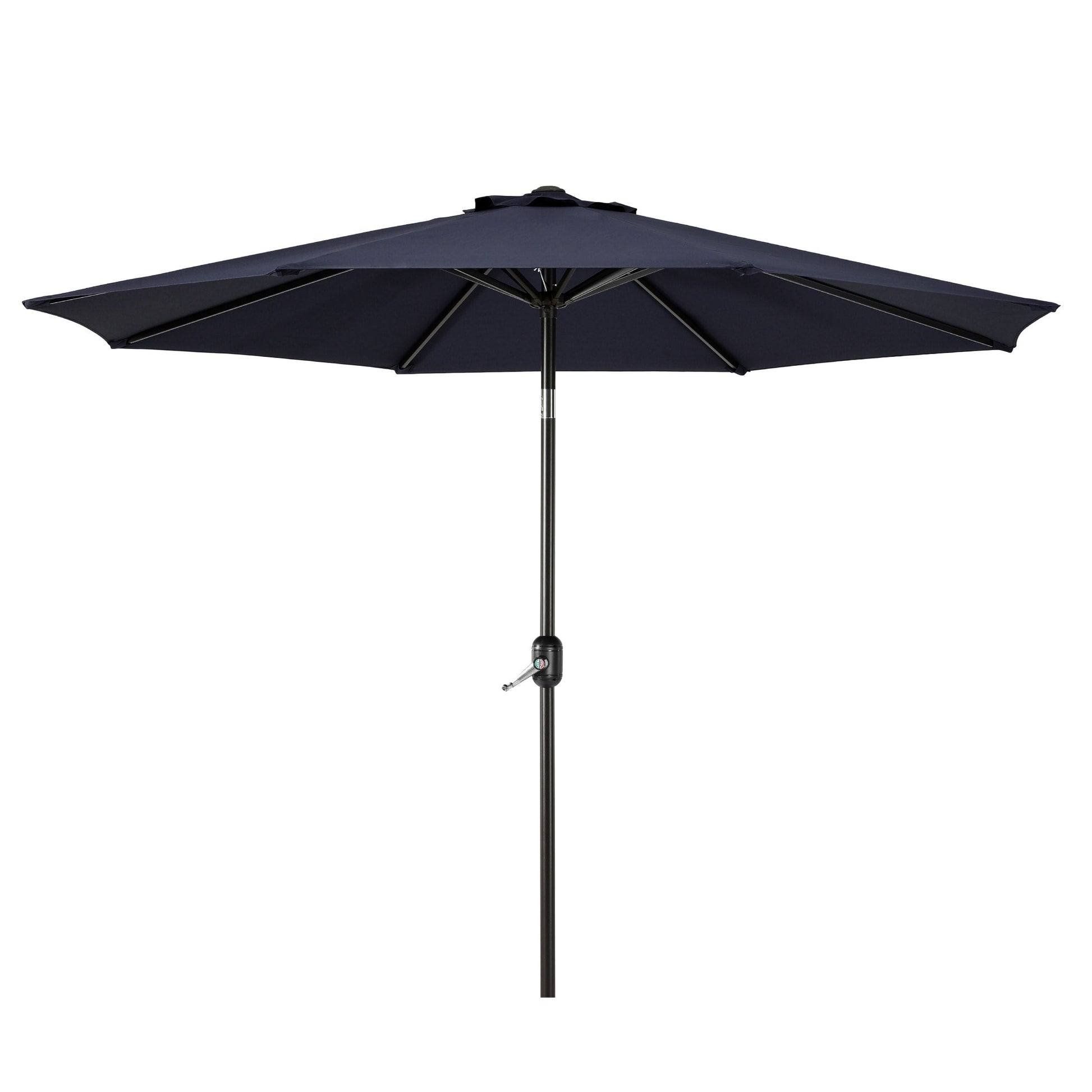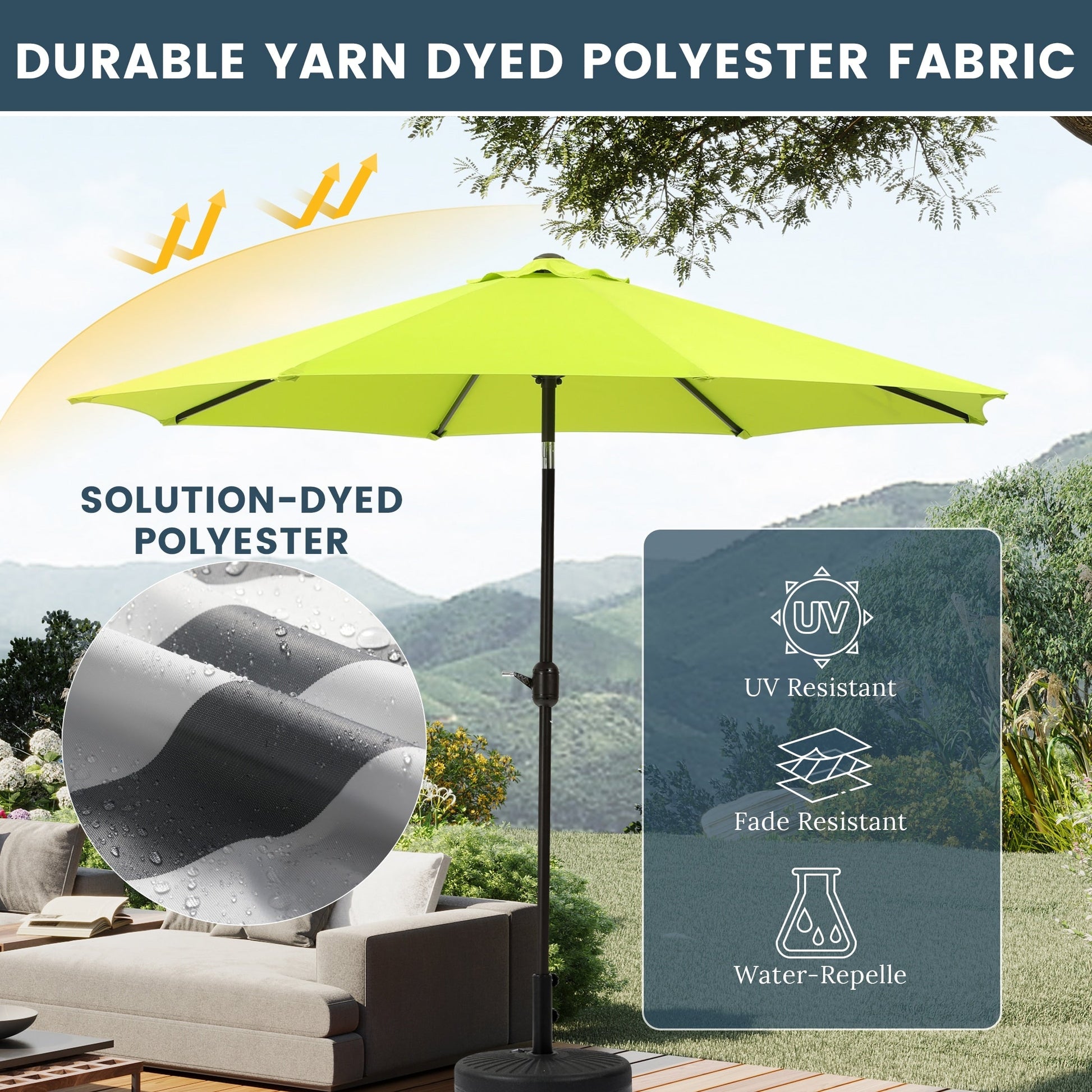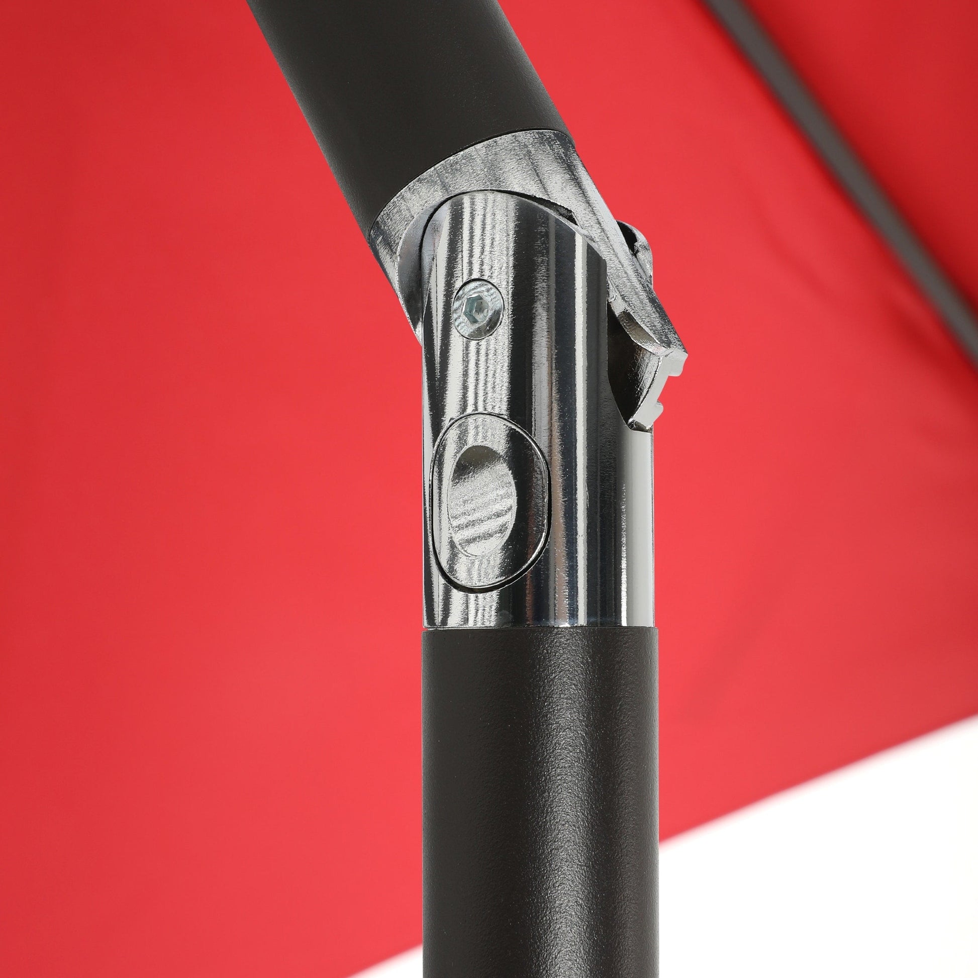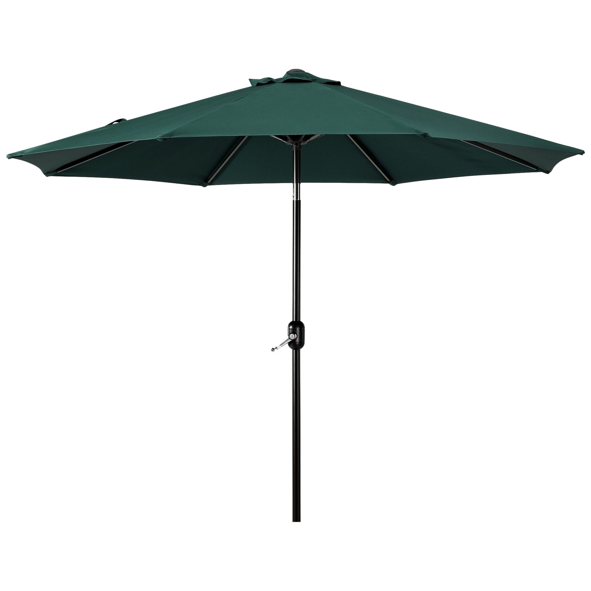 Enjoy the sunshine and scenery while keeping cool under this 9-foot steel outdoor patio table umbrella. Designed with style and durability in mind, this piece is built with a rust- and water-resistant steel frame and polyester fabric that blocks up to 95% of UV rays. The easy-to-crank lift mechanism allows for a simple open and close system when not in use. This 9-foot umbrella is perfect for your patio, garden table, outdoor dining table, pool, or lounge area. Available in multiple colors to fit your décor needs.