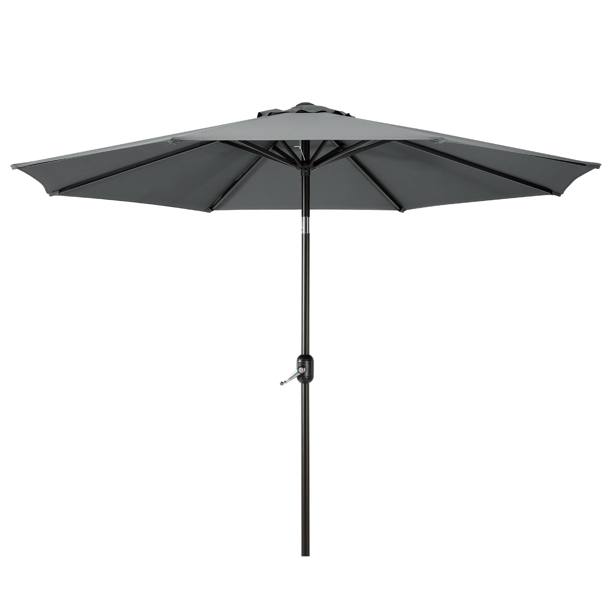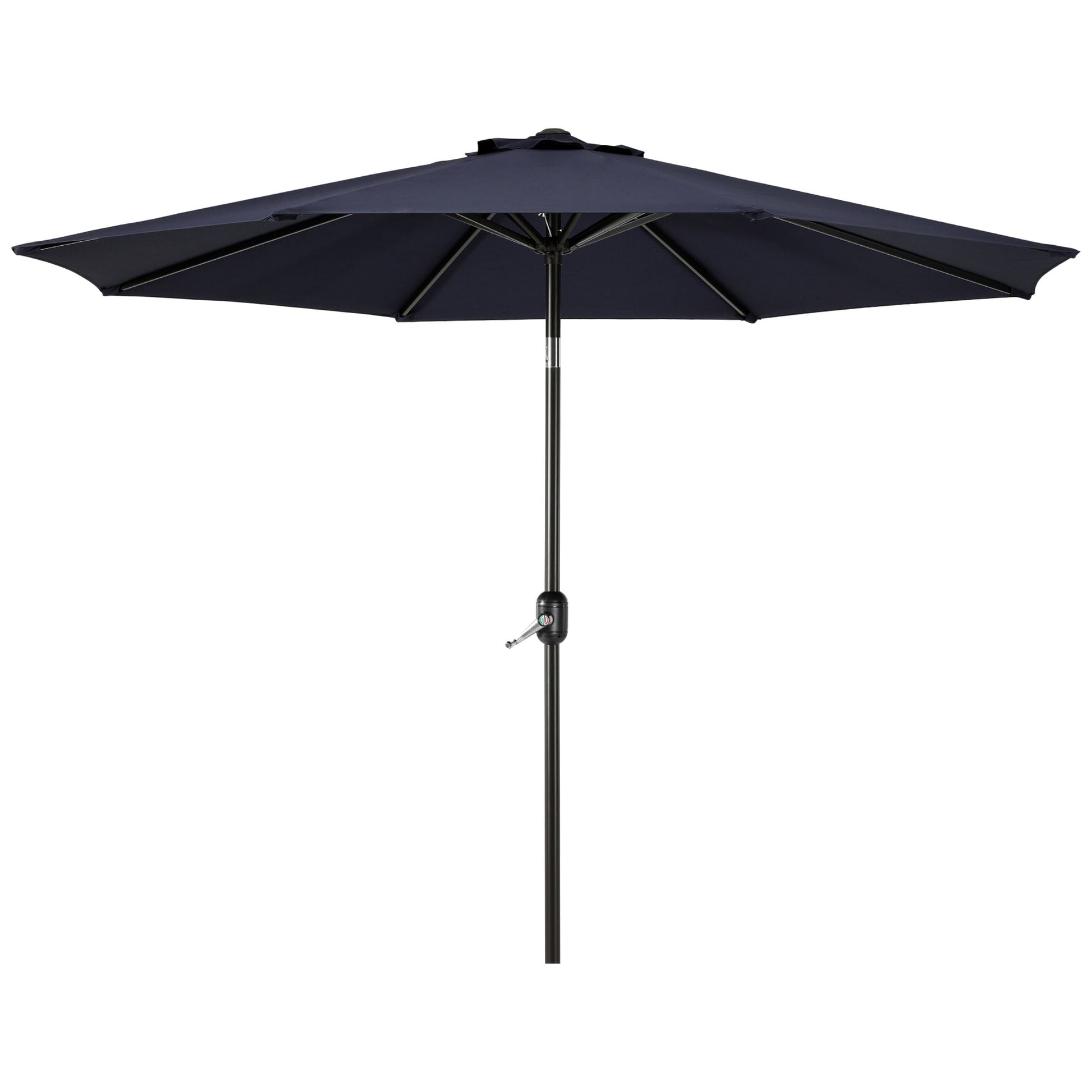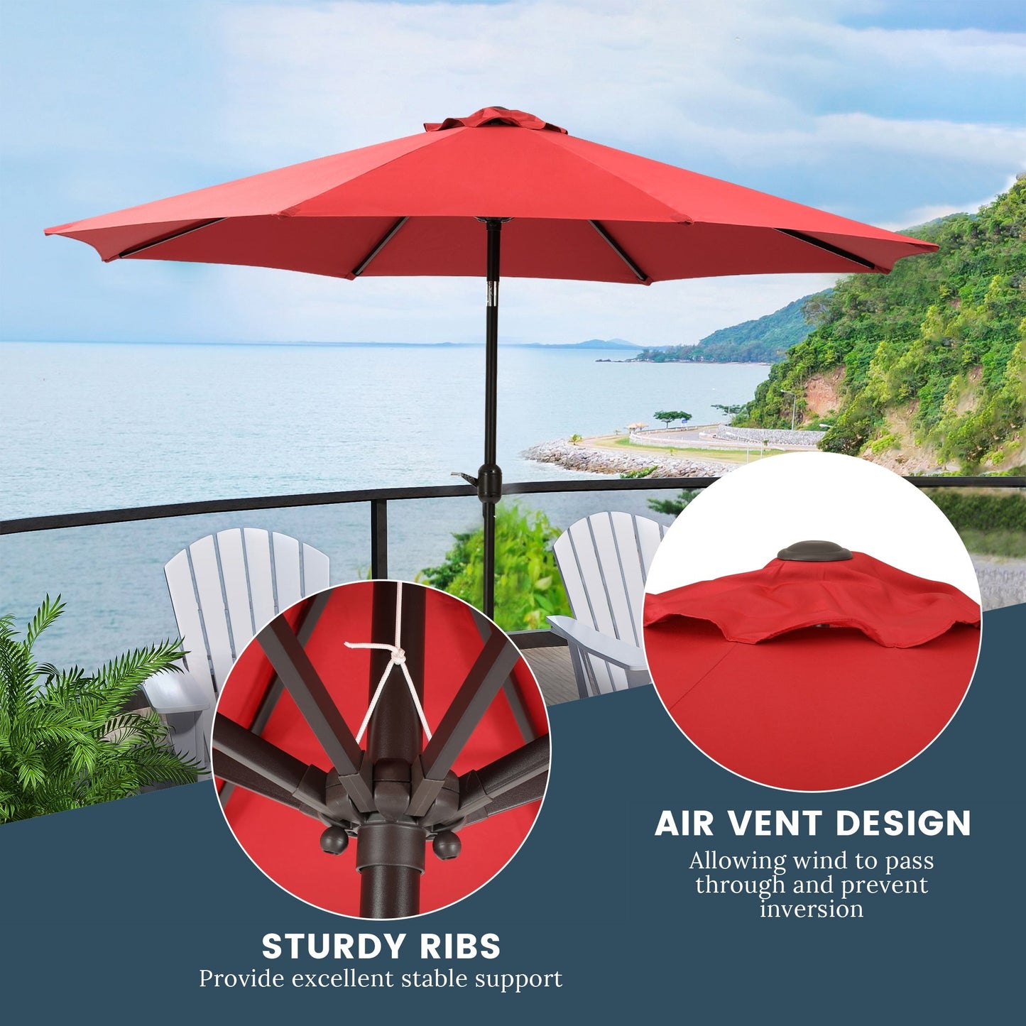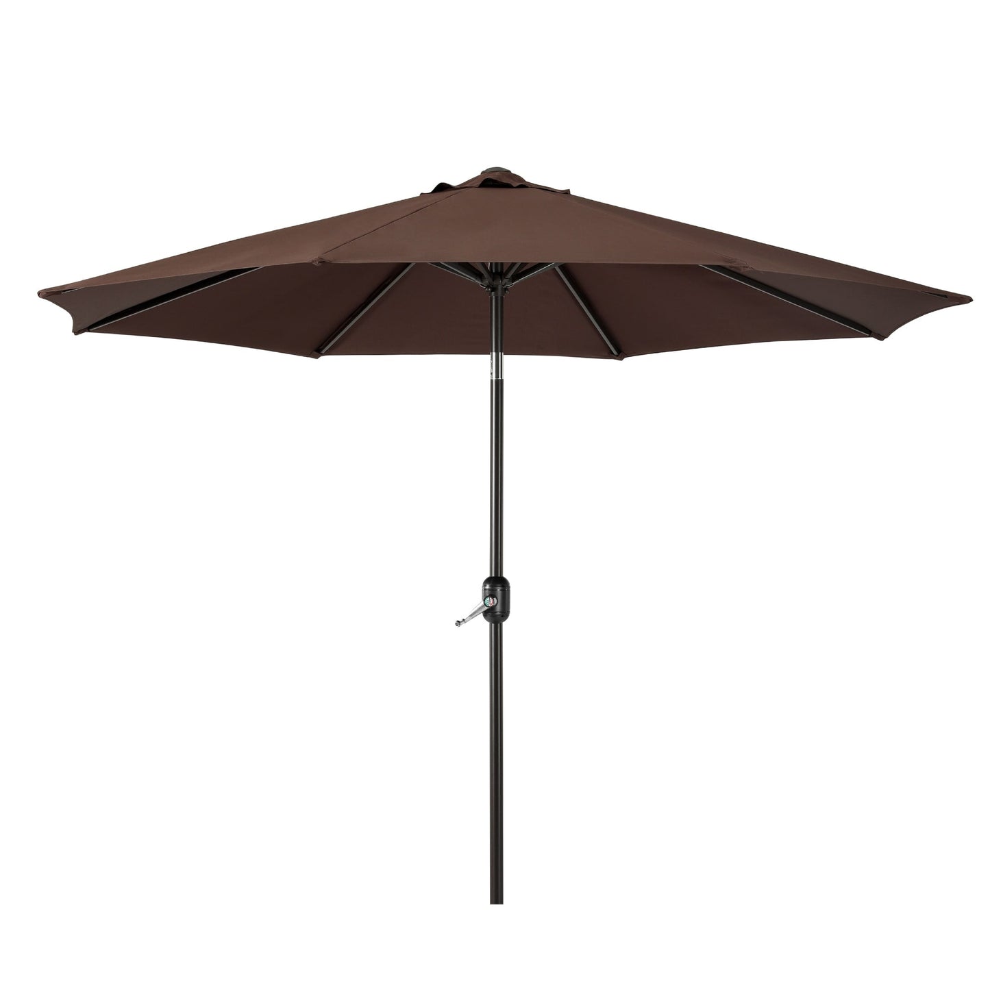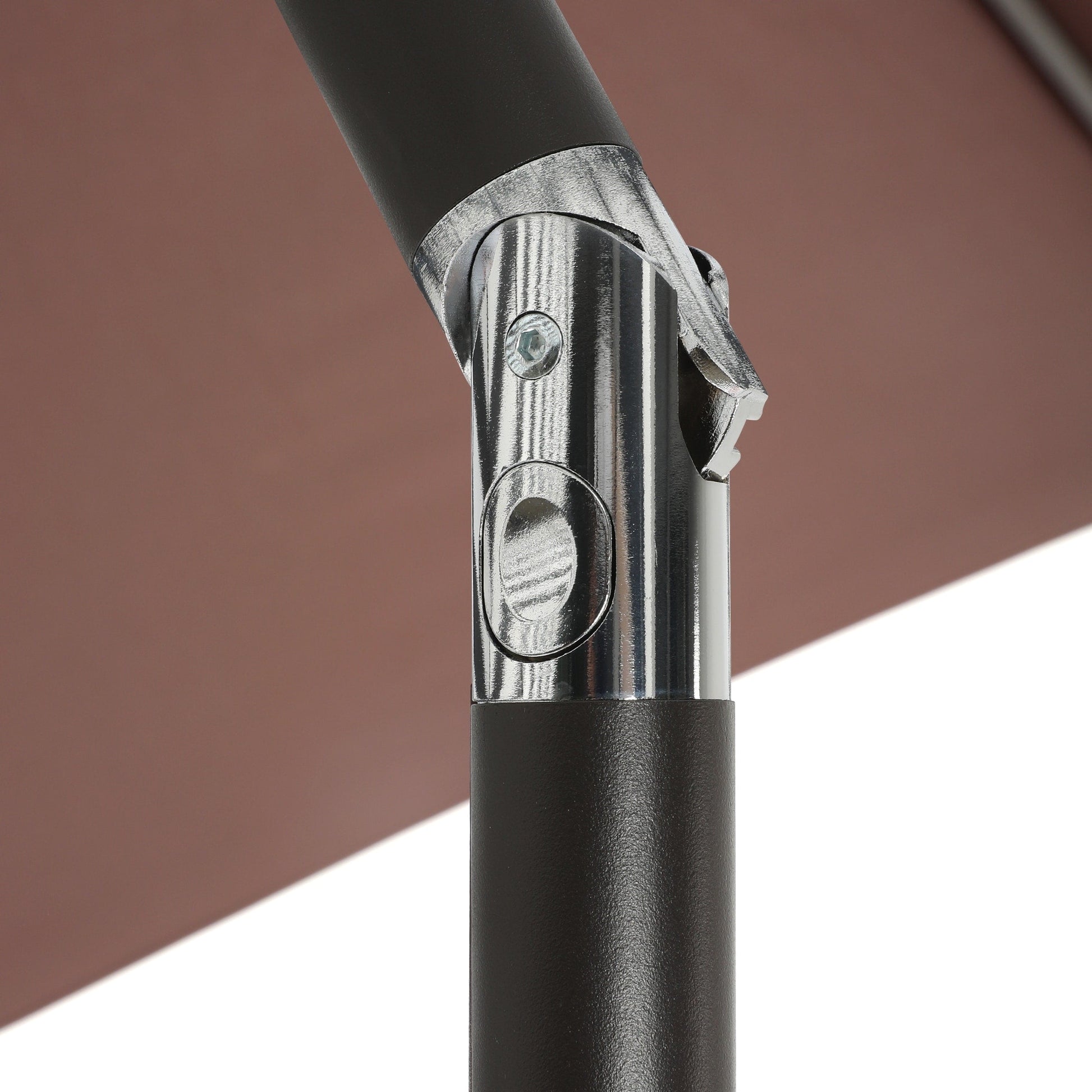 Enjoy the sunshine and scenery while keeping cool under this 9-foot steel outdoor patio table umbrella. Designed with style and durability in mind, this piece is built with a rust- and water-resistant steel frame and polyester fabric that blocks up to 95% of UV rays. The easy-to-crank lift mechanism allows for a simple open and close system when not in use. This 9-foot umbrella is perfect for your patio, garden table, outdoor dining table, pool, or lounge area. Available in multiple colors to fit your décor needs.