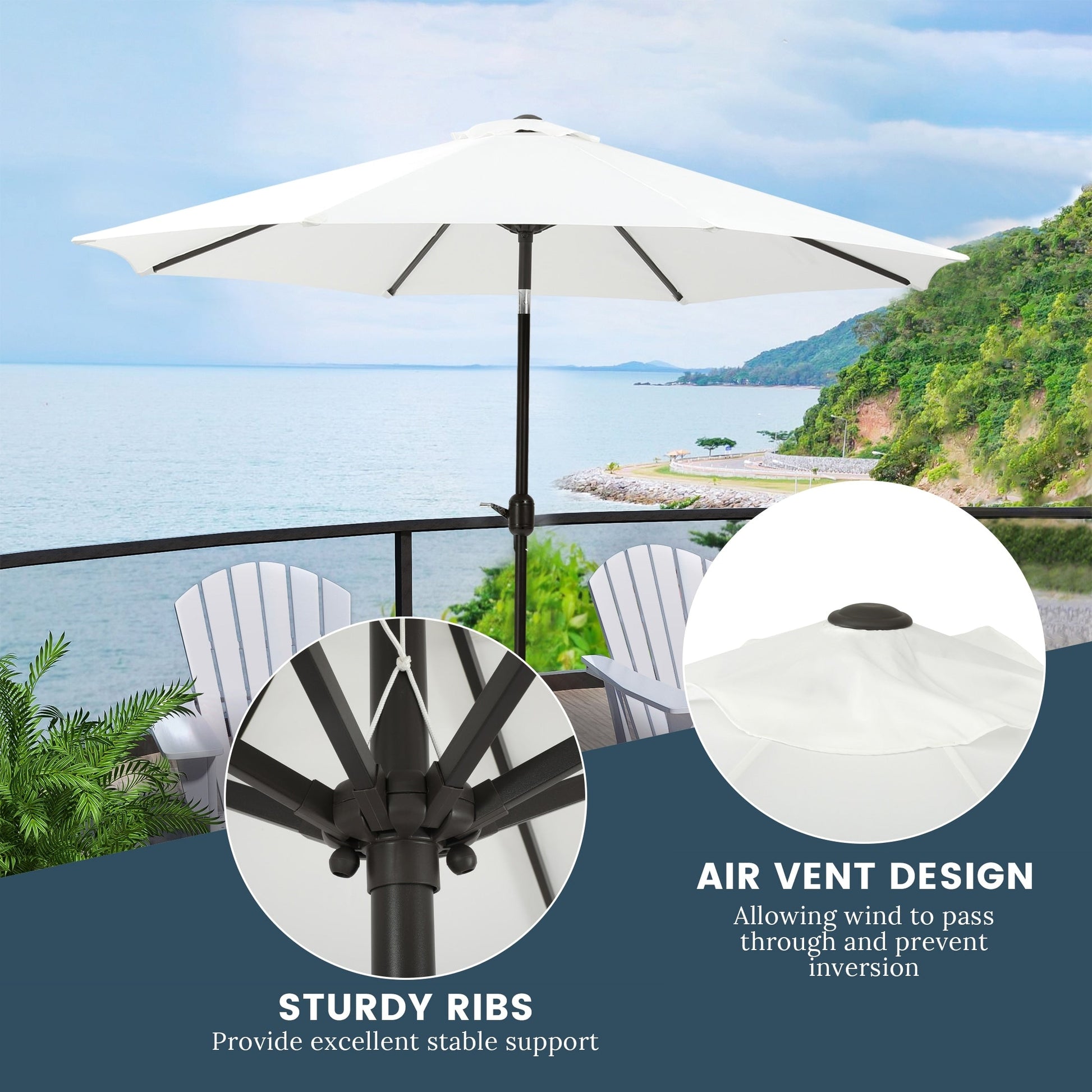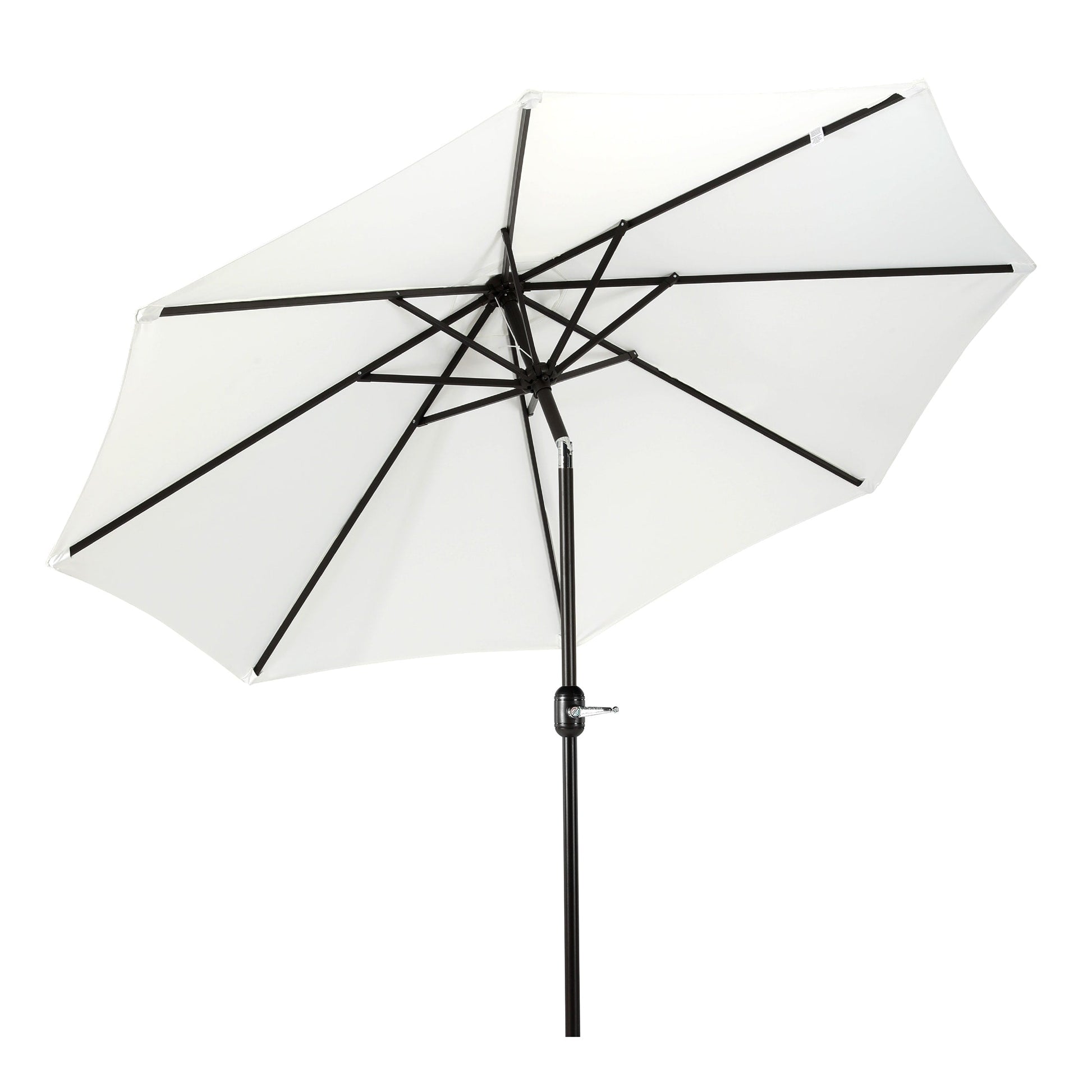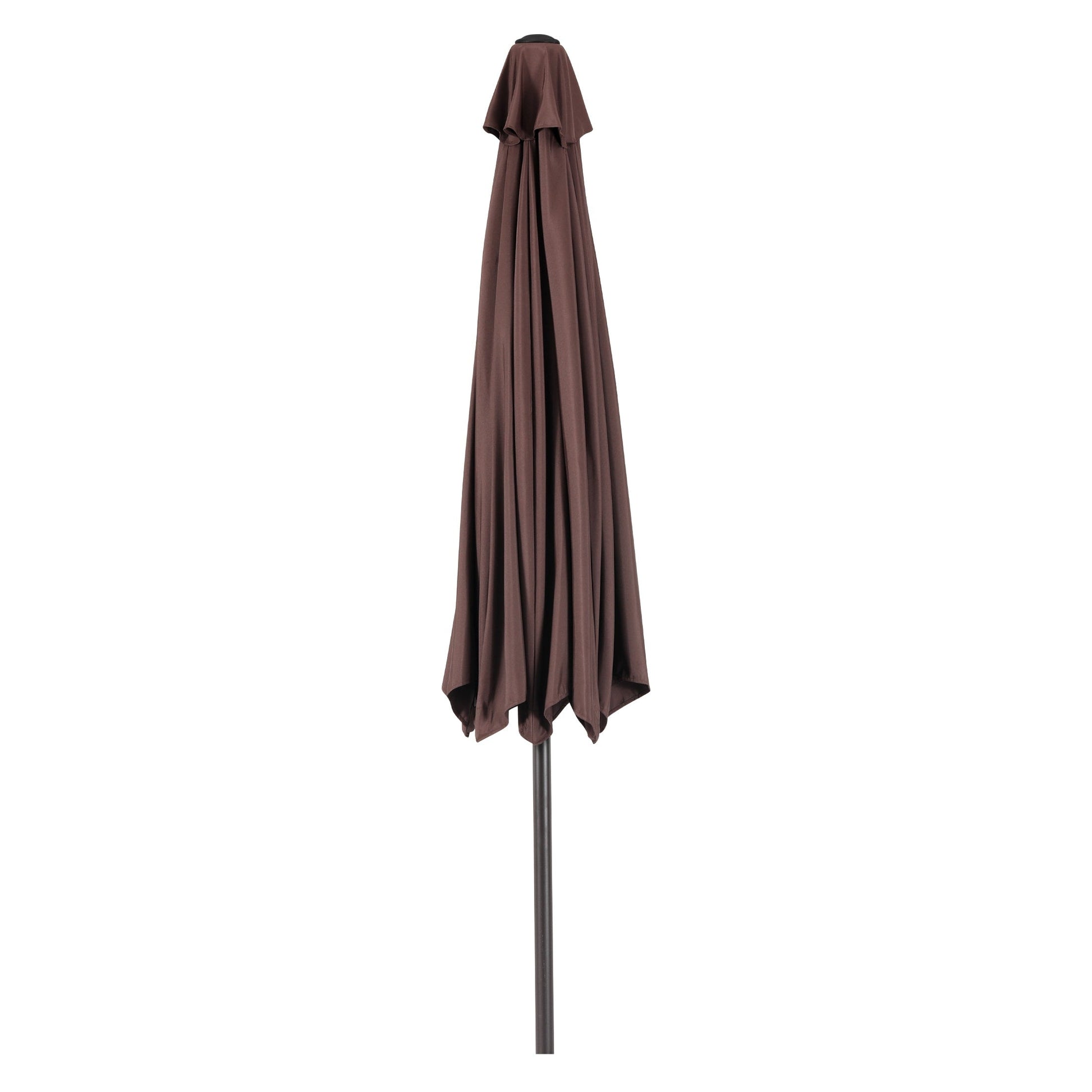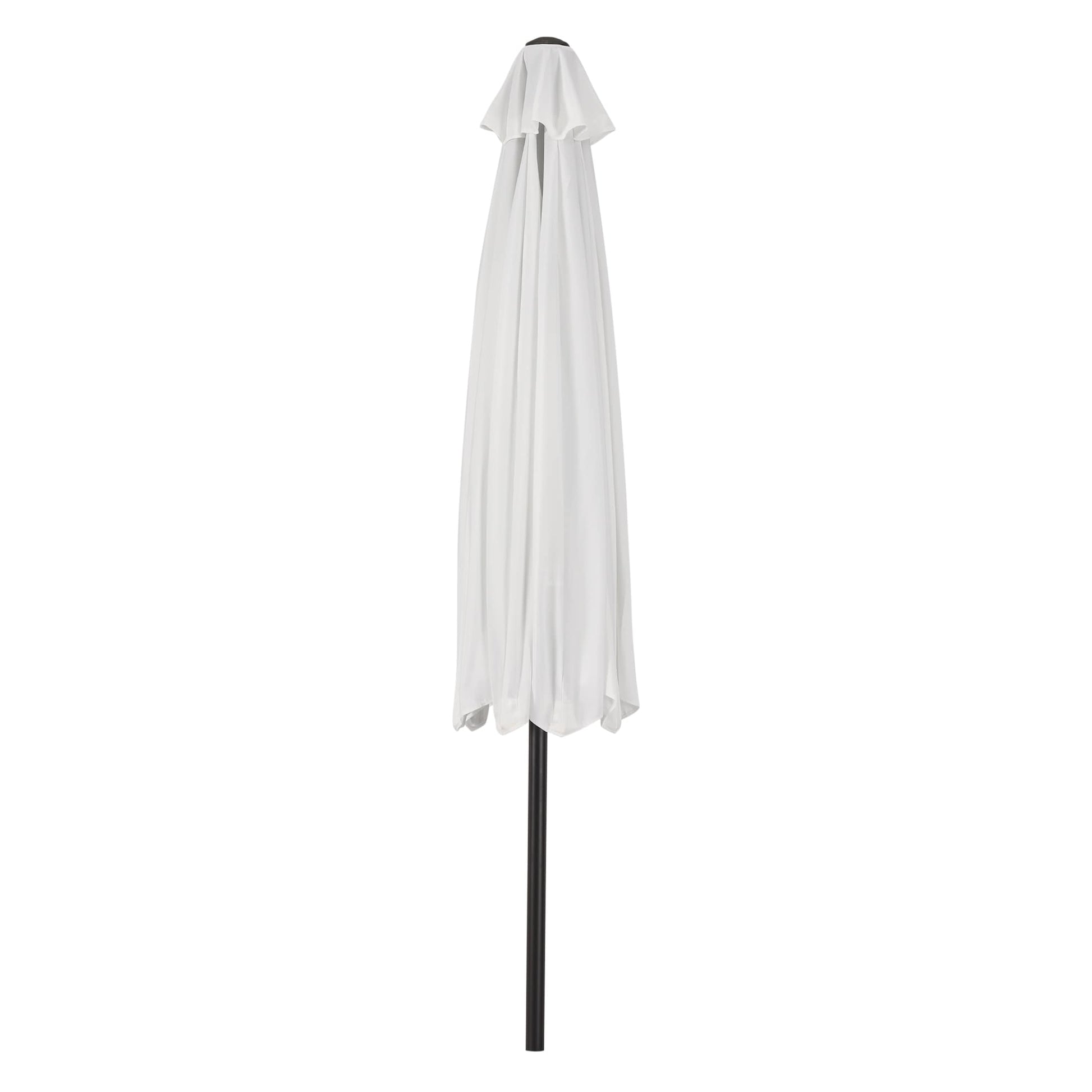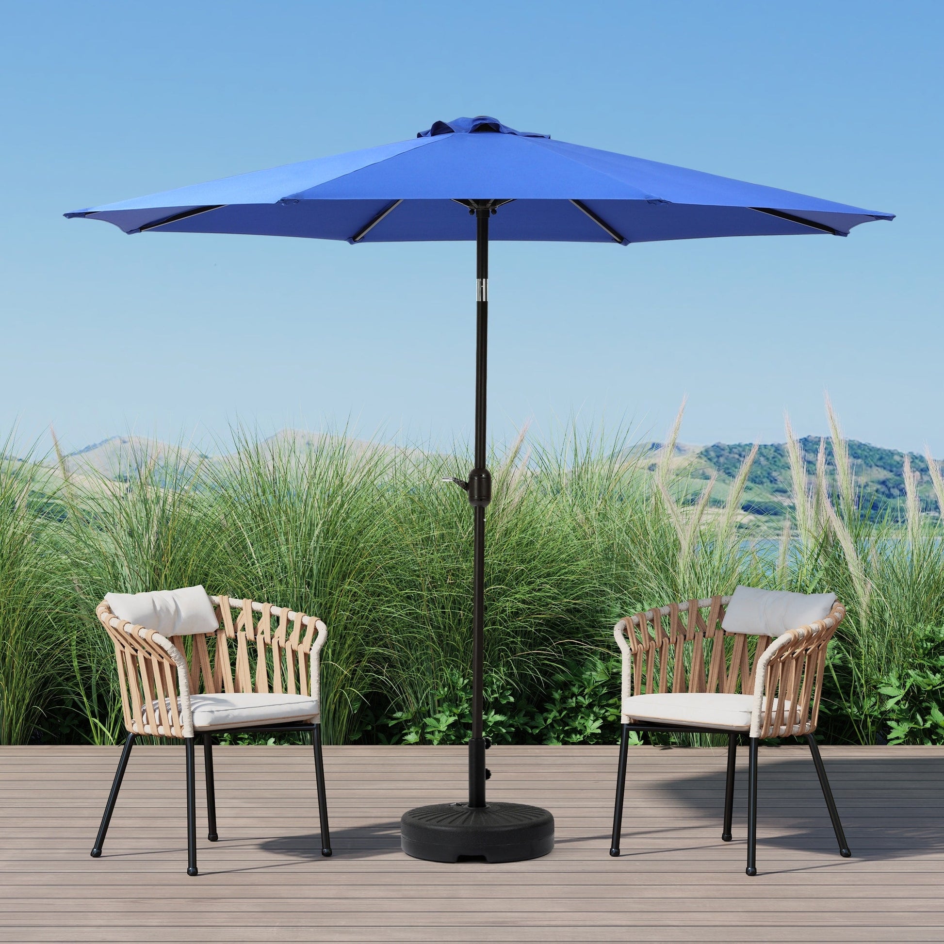 Enjoy the sunshine and scenery while keeping cool under this 9-foot steel outdoor patio table umbrella. Designed with style and durability in mind, this piece is built with a rust- and water-resistant steel frame and polyester fabric that blocks up to 95% of UV rays. The easy-to-crank lift mechanism allows for a simple open and close system when not in use. This 9-foot umbrella is perfect for your patio, garden table, outdoor dining table, pool, or lounge area. Available in multiple colors to fit your décor needs.