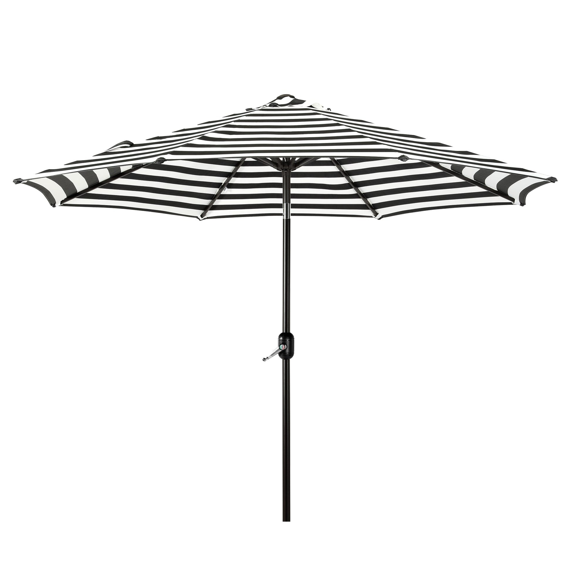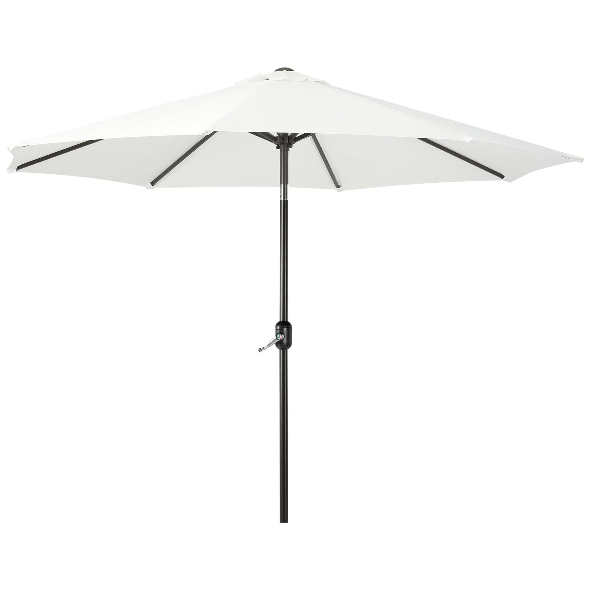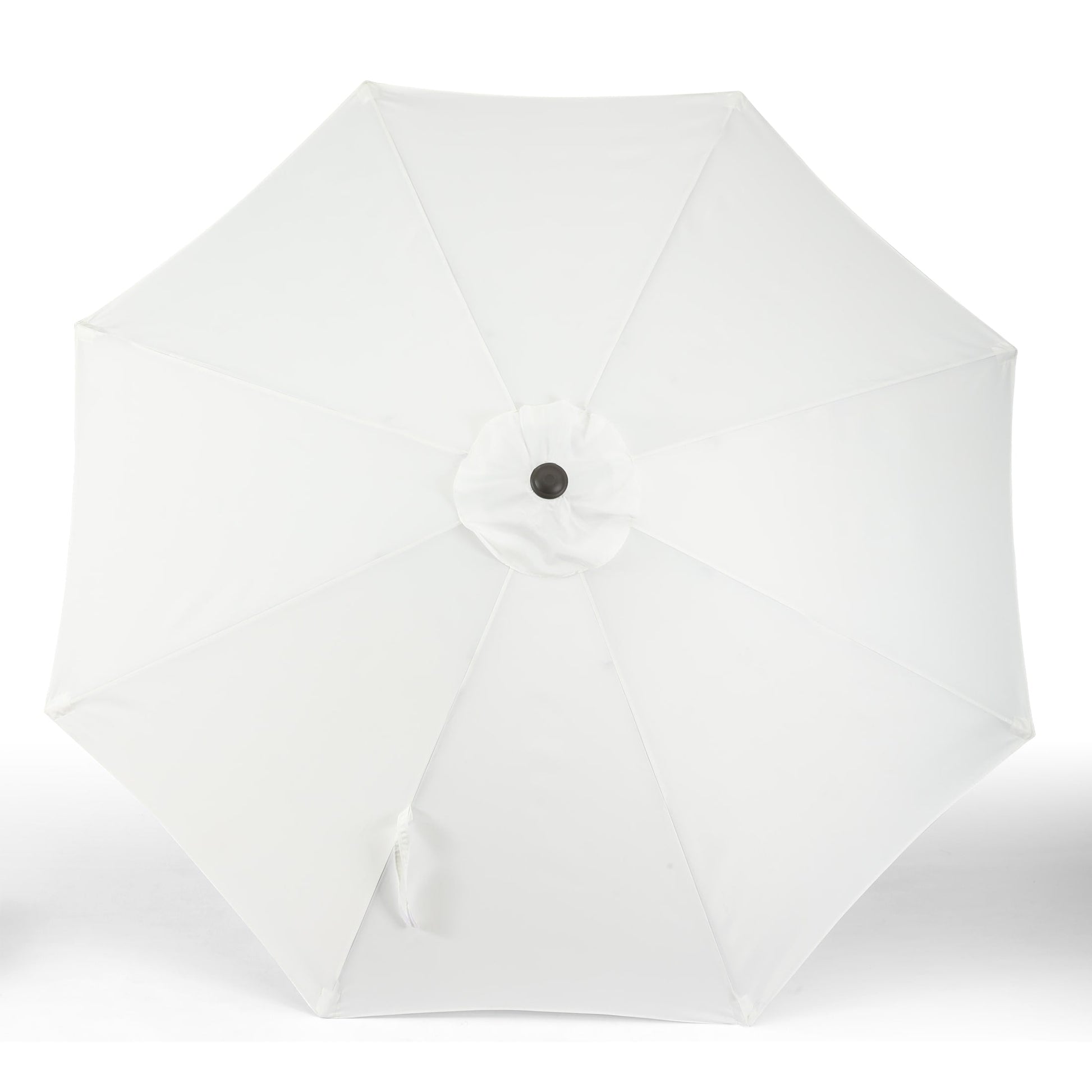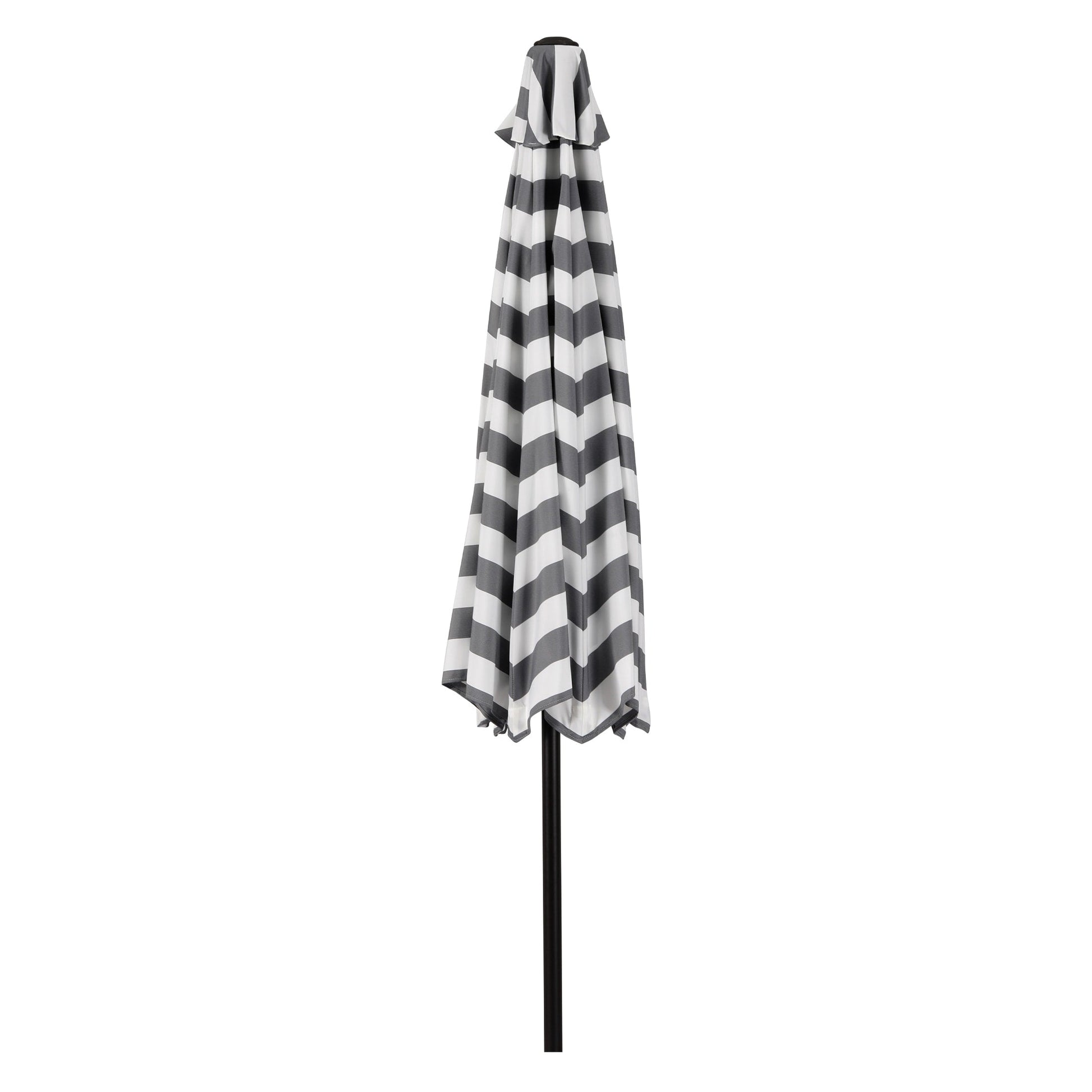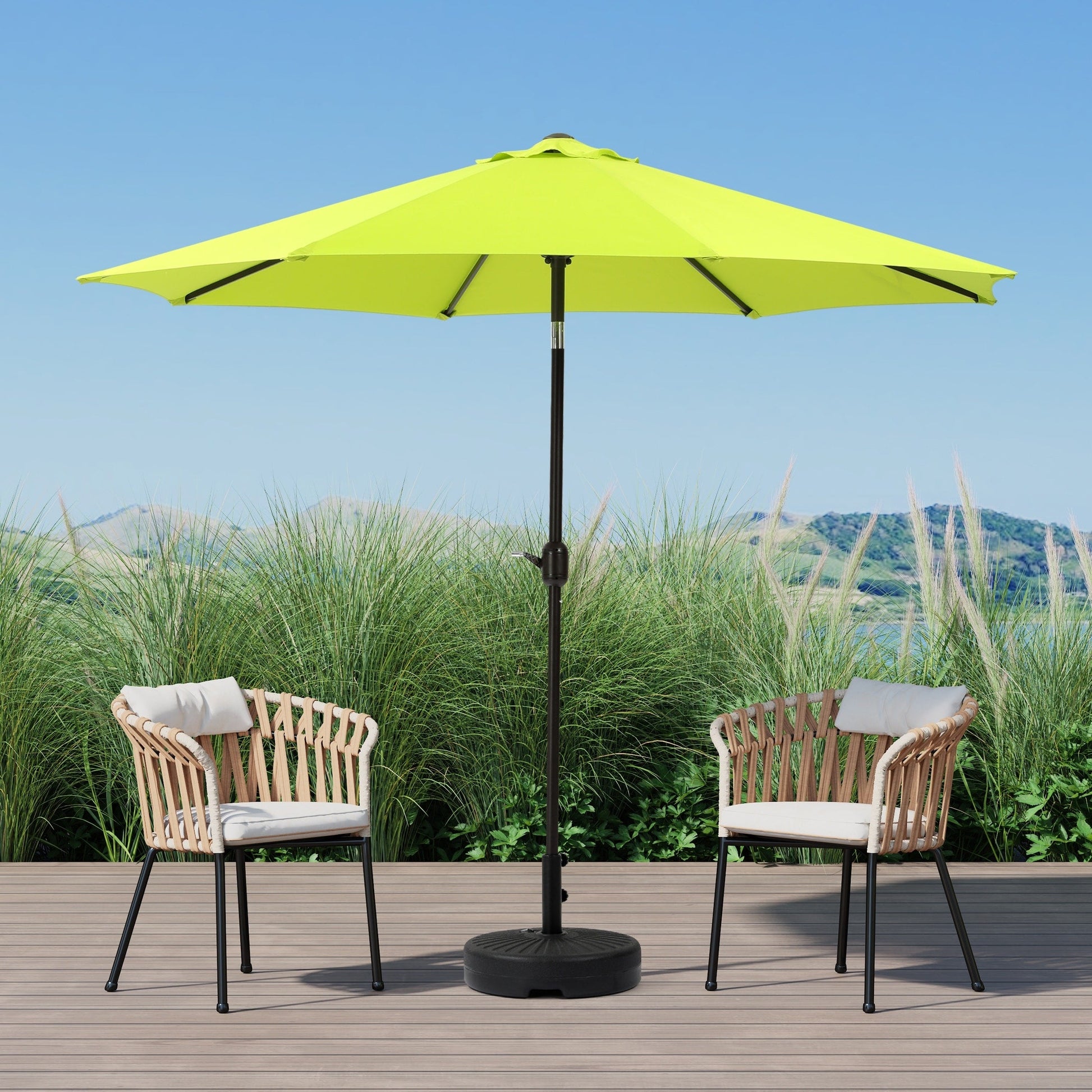 Enjoy the sunshine and scenery while keeping cool under this 9-foot steel outdoor patio table umbrella. Designed with style and durability in mind, this piece is built with a rust- and water-resistant steel frame and polyester fabric that blocks up to 95% of UV rays. The easy-to-crank lift mechanism allows for a simple open and close system when not in use. This 9-foot umbrella is perfect for your patio, garden table, outdoor dining table, pool, or lounge area. Available in multiple colors to fit your décor needs.